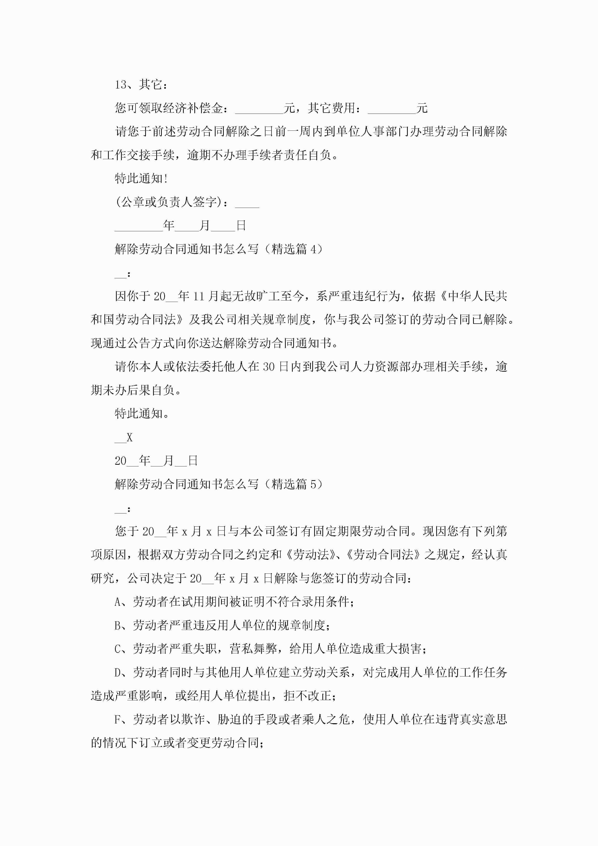 解除劳动合同通知书怎么写(通用7篇)jugei3月22日 16:25发布关注317 解除劳动合同通知书怎么写(通用7篇)此内容为付费资源,请付费后查看¥10.9 单篇文档限时特惠¥15个人会员开通企业会员开通立即下载无需登陆!可直接快捷下载单个模板付费资源© 版权声明THE ENDWord模板# 实用文档# 信函模板# 通知书# 解除劳动合同通知书怎么写 如有问题,可点击最底部“联系我们”联系客服 分享QQ空间微博QQ好友海报分享复制链接收藏