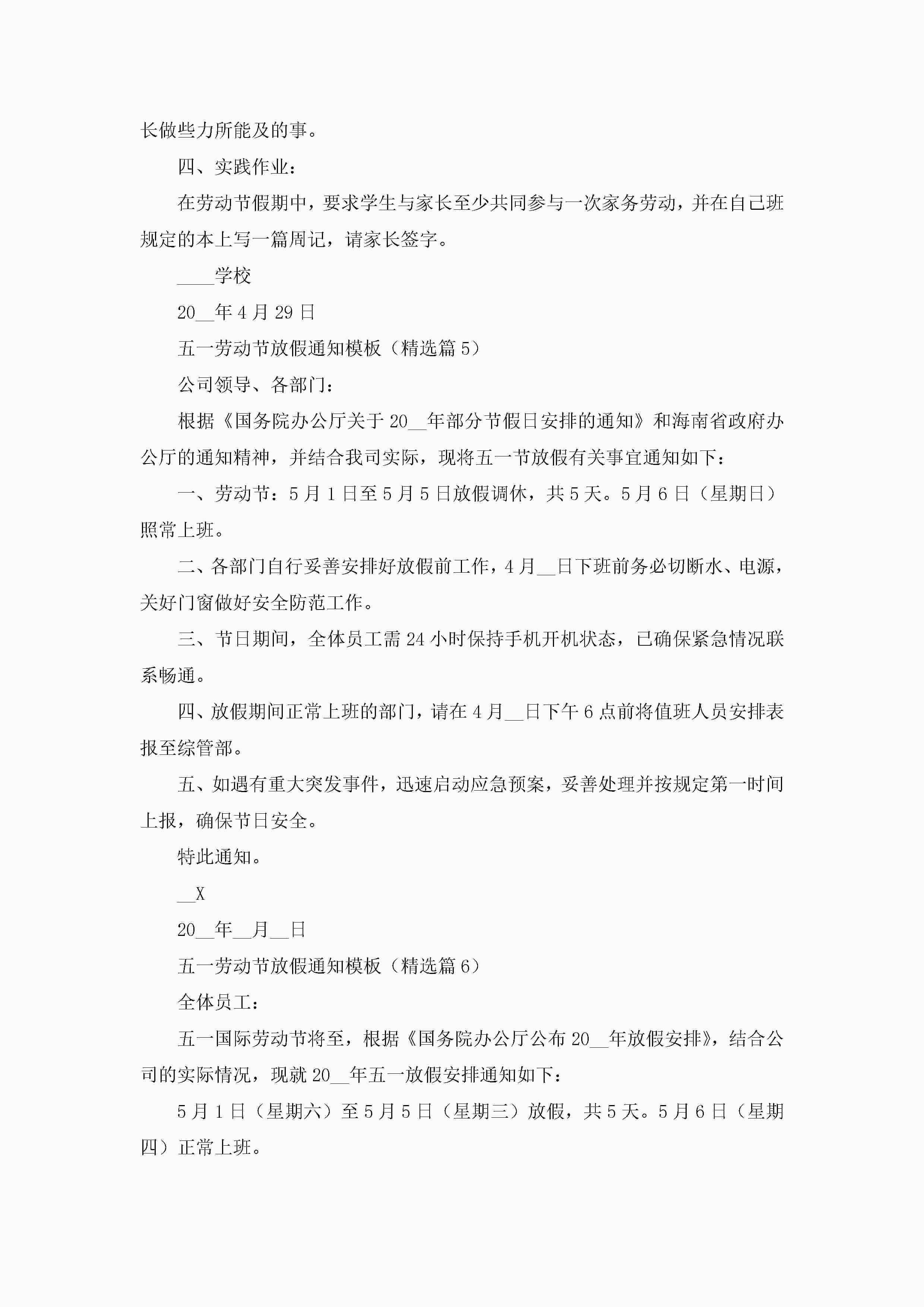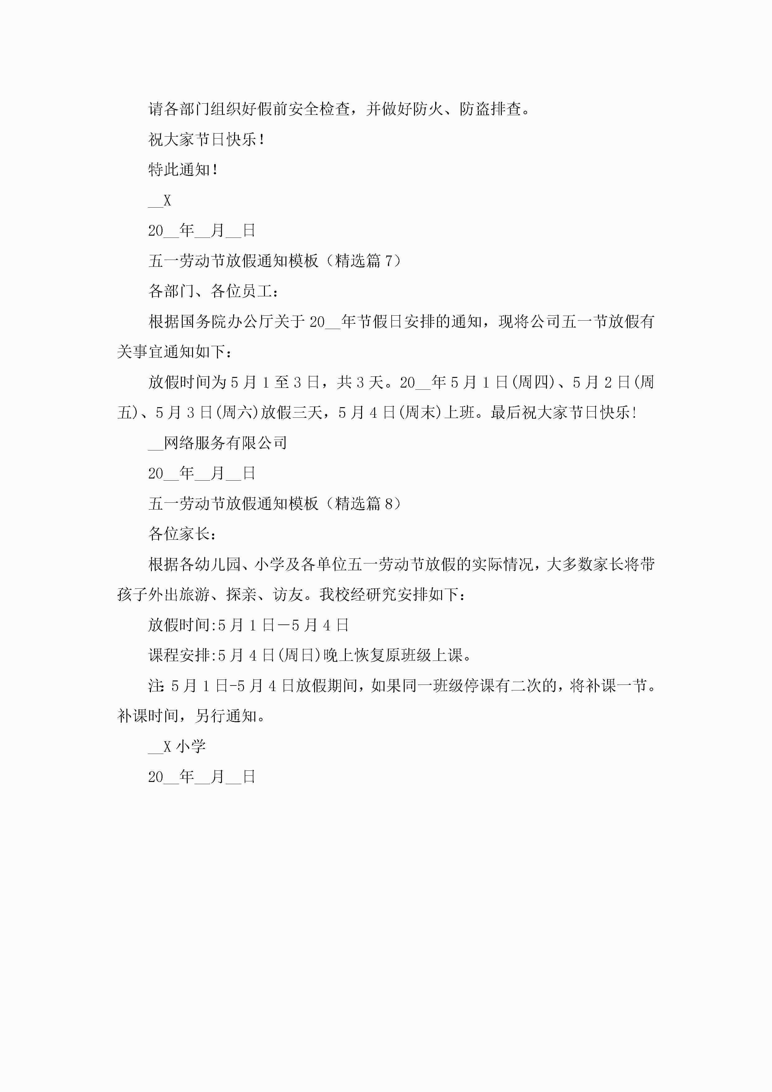 五一劳动节放假通知模板(精选8篇)jugei3月22日 16:25发布关注315 五一劳动节放假通知模板(精选8篇)此内容为付费资源,请付费后查看¥10.9 单篇文档限时特惠¥15个人会员开通企业会员开通立即下载无需登陆!可直接快捷下载单个模板付费资源© 版权声明THE ENDWord模板# 实用文档# 信函模板# 通知书# 五一劳动节放假通知模板 如有问题,可点击最底部“联系我们”联系客服 分享QQ空间微博QQ好友海报分享复制链接收藏