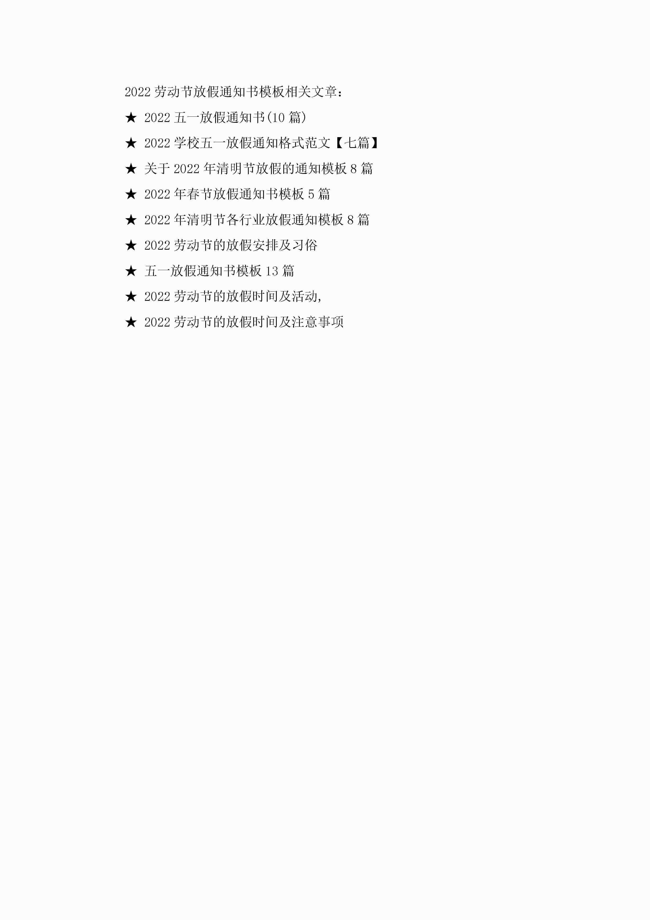 2023劳动节放假通知书模板10篇jugei3月22日 16:25发布关注274 2023劳动节放假通知书模板10篇此内容为付费资源,请付费后查看¥10.9 单篇文档限时特惠¥15个人会员开通企业会员开通立即下载无需登陆!可直接快捷下载单个模板付费资源© 版权声明THE ENDWord模板# 实用文档# 实用模板# 信函模板# 通知书 如有问题,可点击最底部“联系我们”联系客服 分享QQ空间微博QQ好友海报分享复制链接收藏