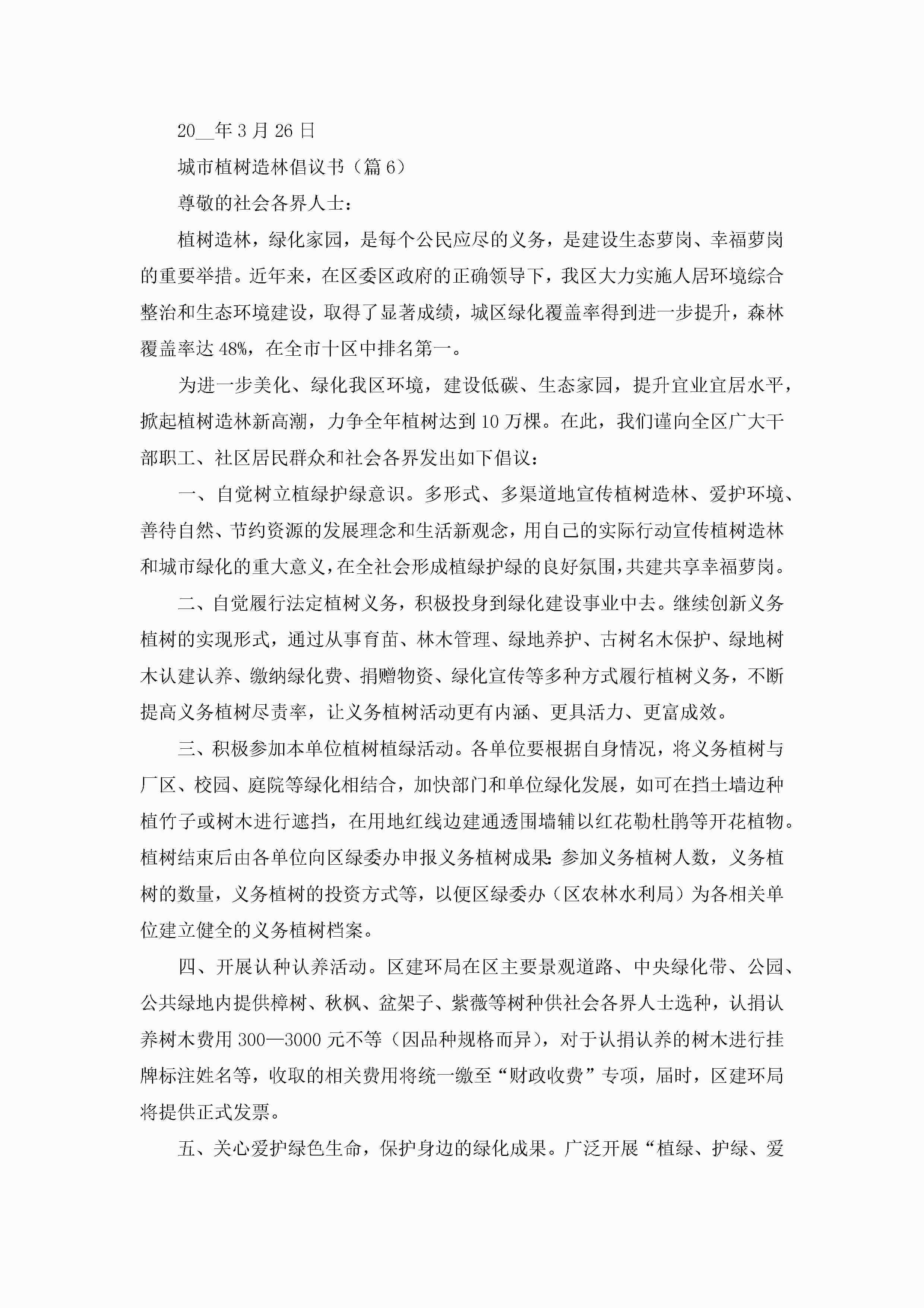 城市植树造林倡议书最新文本(7篇)jugei3月22日 16:25发布关注195 城市植树造林倡议书最新文本(7篇)此内容为付费资源,请付费后查看¥10.9 单篇文档限时特惠¥15个人会员开通企业会员开通立即下载无需登陆!可直接快捷下载单个模板付费资源© 版权声明THE ENDWord模板# 实用文档# 信函模板# 倡议书# 城市植树造林倡议书文本(7篇) 如有问题,可点击最底部“联系我们”联系客服 分享QQ空间微博QQ好友海报分享复制链接收藏