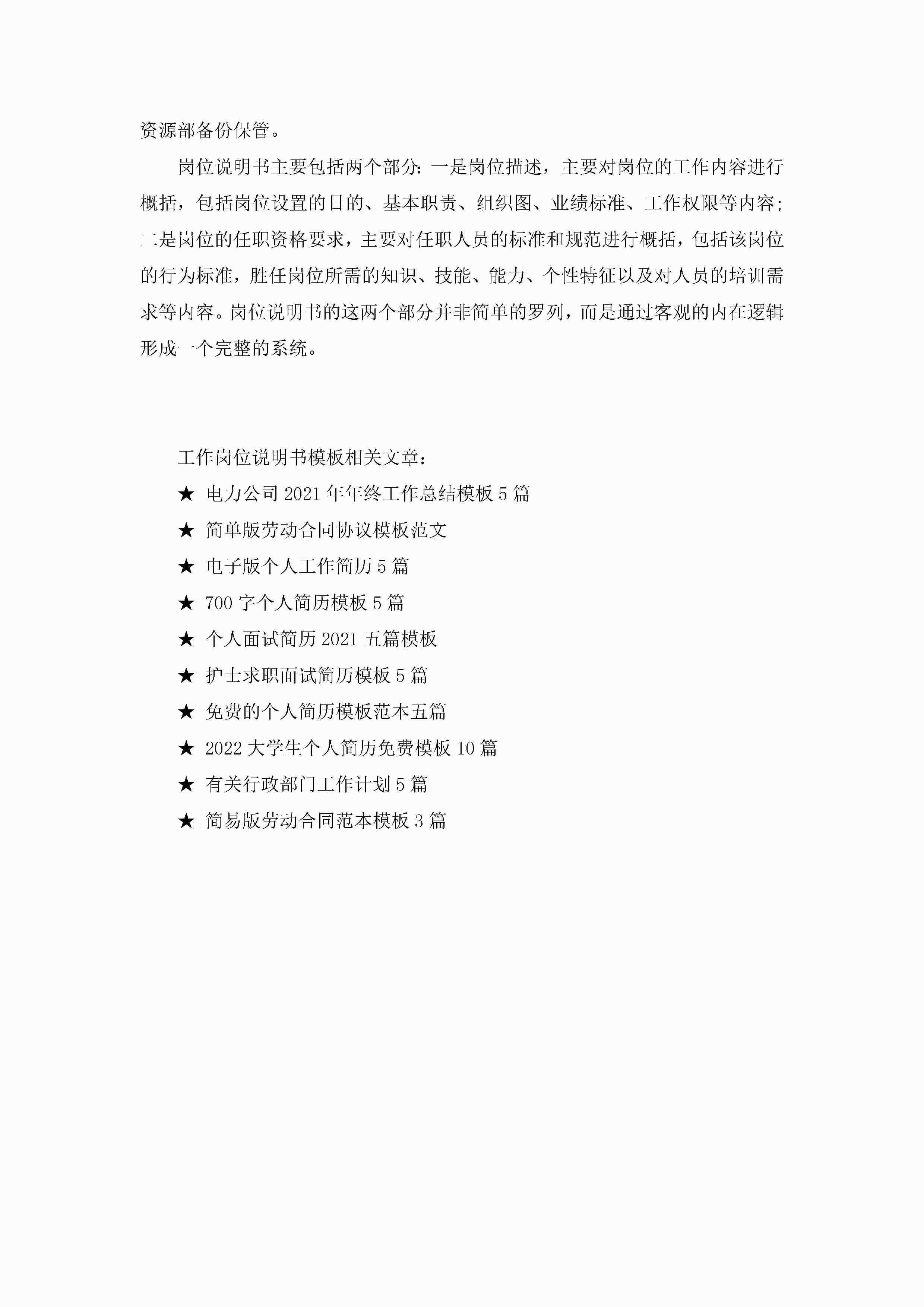 工作岗位说明书模板6篇jugei3月22日 16:25发布关注240 工作岗位说明书模板6篇此内容为付费资源,请付费后查看¥10.9 单篇文档限时特惠¥15个人会员开通企业会员开通立即下载无需登陆!可直接快捷下载单个模板付费资源© 版权声明THE ENDWord模板# 实用文档# 实用模板# 信函模板# 说明书 如有问题,可点击最底部“联系我们”联系客服 分享QQ空间微博QQ好友海报分享复制链接收藏