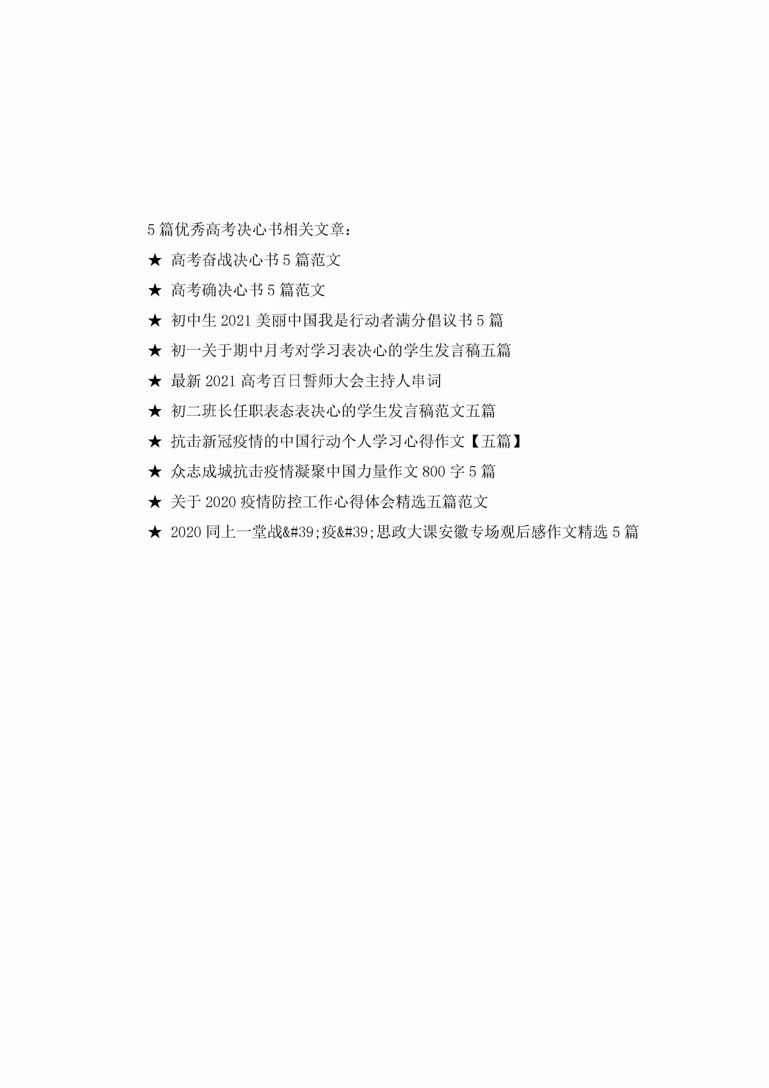 优秀高考决心书备考决心书jugei3月22日 16:25发布关注292 优秀高考决心书备考决心书此内容为付费资源,请付费后查看¥10.9 单篇文档限时特惠¥15个人会员开通企业会员开通立即下载无需登陆!可直接快捷下载单个模板付费资源© 版权声明THE ENDWord模板# 实用文档# 实用模板# 信函模板# 决心书 如有问题,可点击最底部“联系我们”联系客服 分享QQ空间微博QQ好友海报分享复制链接收藏