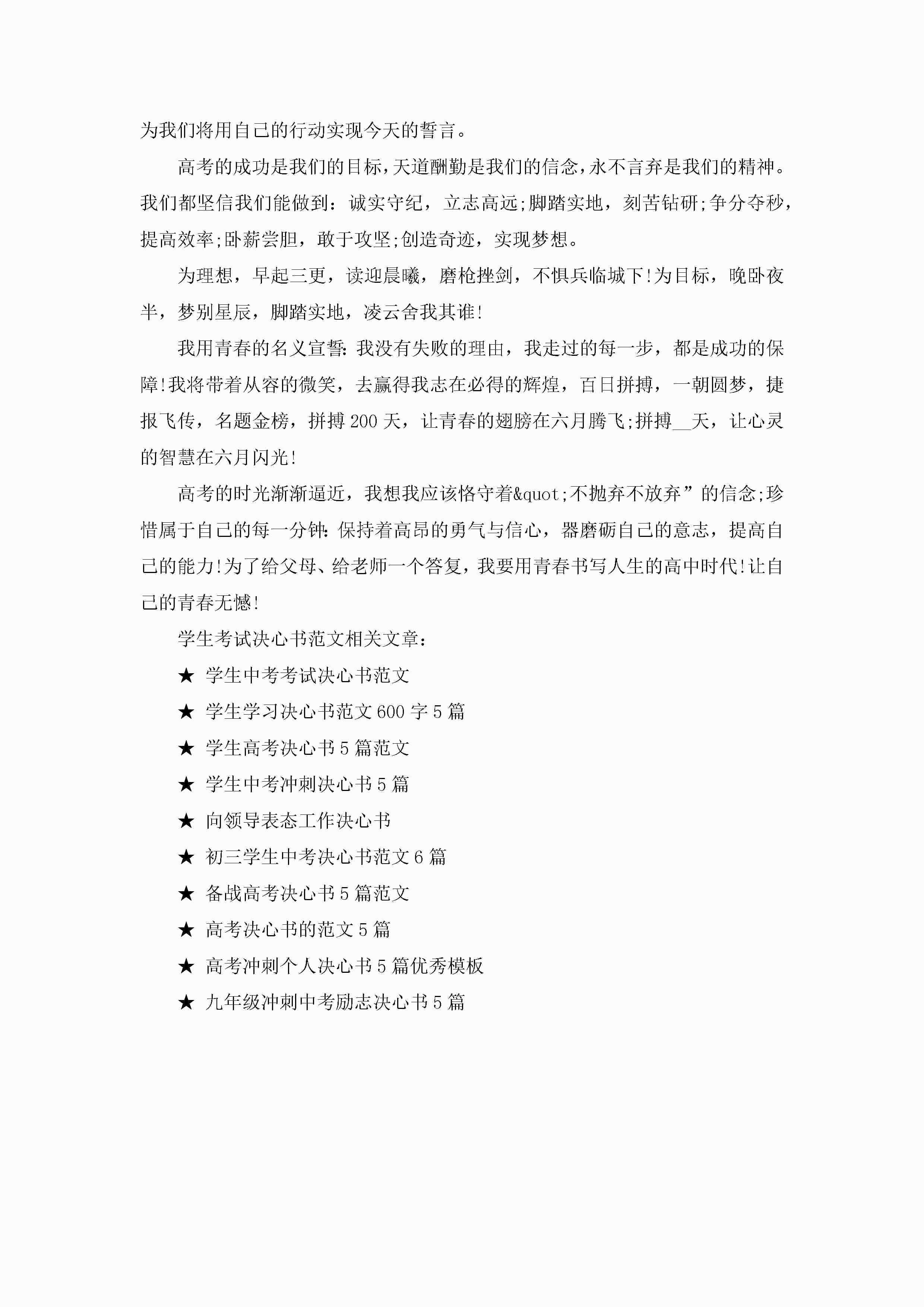 学生考试决心书范文5篇jugei3月22日 16:25发布关注226 学生考试决心书范文5篇此内容为付费资源,请付费后查看¥10.9 单篇文档限时特惠¥15个人会员开通企业会员开通立即下载无需登陆!可直接快捷下载单个模板付费资源© 版权声明THE ENDWord模板# 实用文档# 实用模板# 信函模板# 决心书 如有问题,可点击最底部“联系我们”联系客服 分享QQ空间微博QQ好友海报分享复制链接收藏