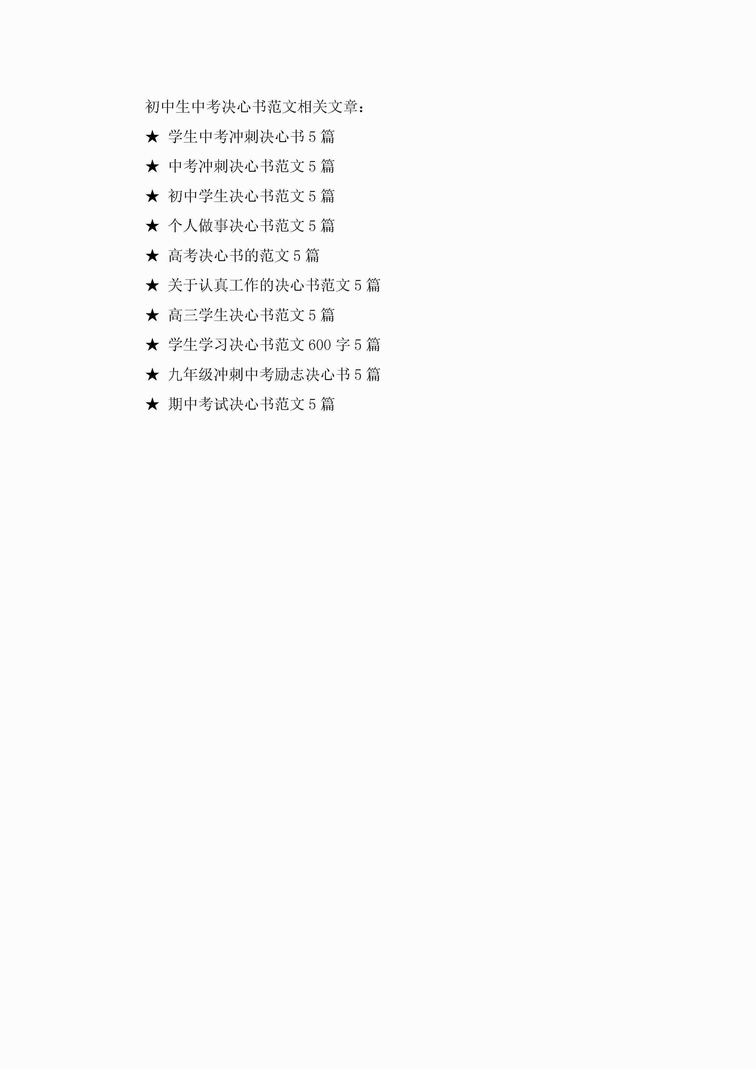 初中生中考决心书范文5篇jugei3月22日 16:25发布关注220 初中生中考决心书范文5篇此内容为付费资源,请付费后查看¥10.9 单篇文档限时特惠¥15个人会员开通企业会员开通立即下载无需登陆!可直接快捷下载单个模板付费资源© 版权声明THE ENDWord模板# 实用文档# 实用模板# 信函模板# 决心书 如有问题,可点击最底部“联系我们”联系客服 分享QQ空间微博QQ好友海报分享复制链接收藏