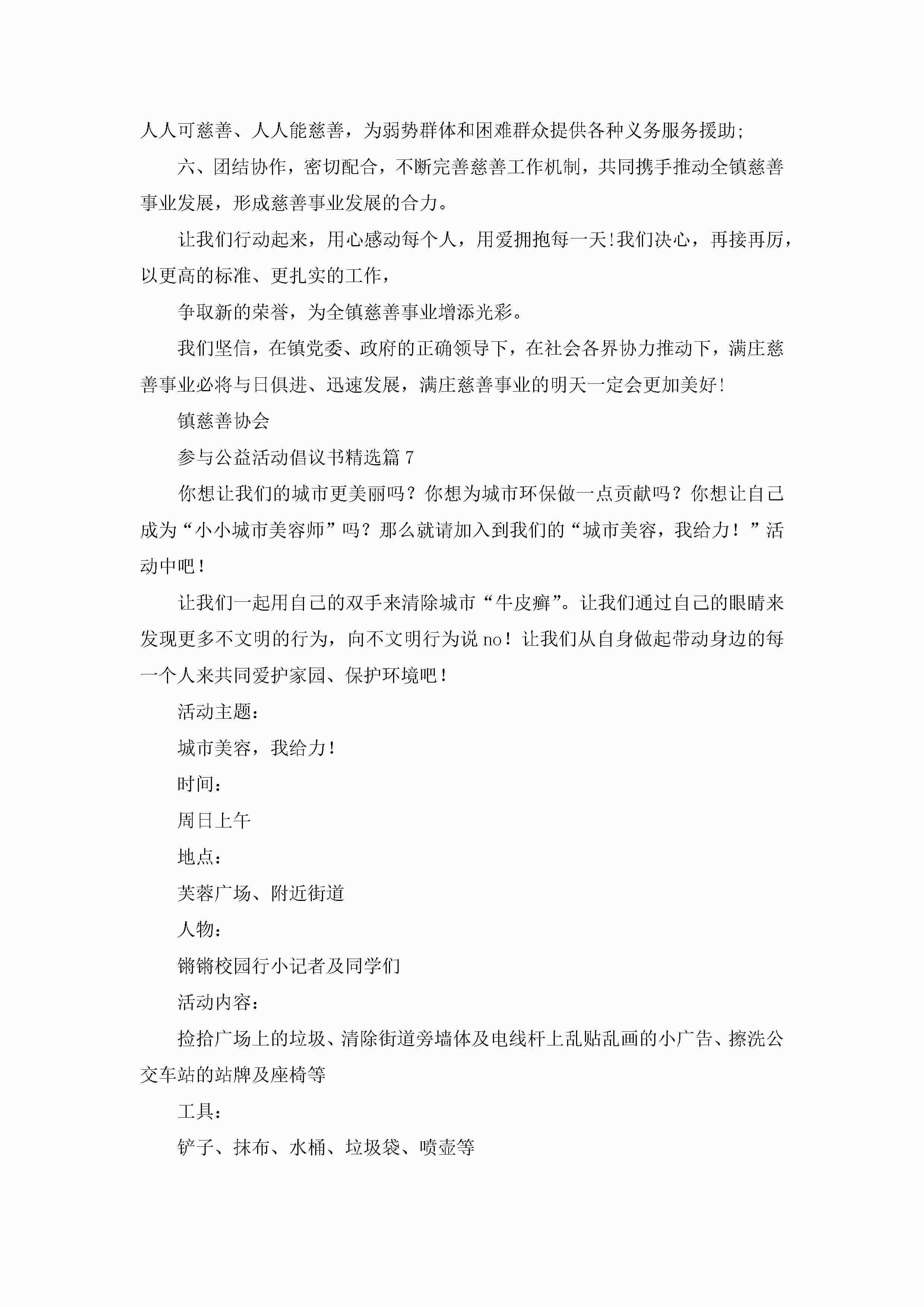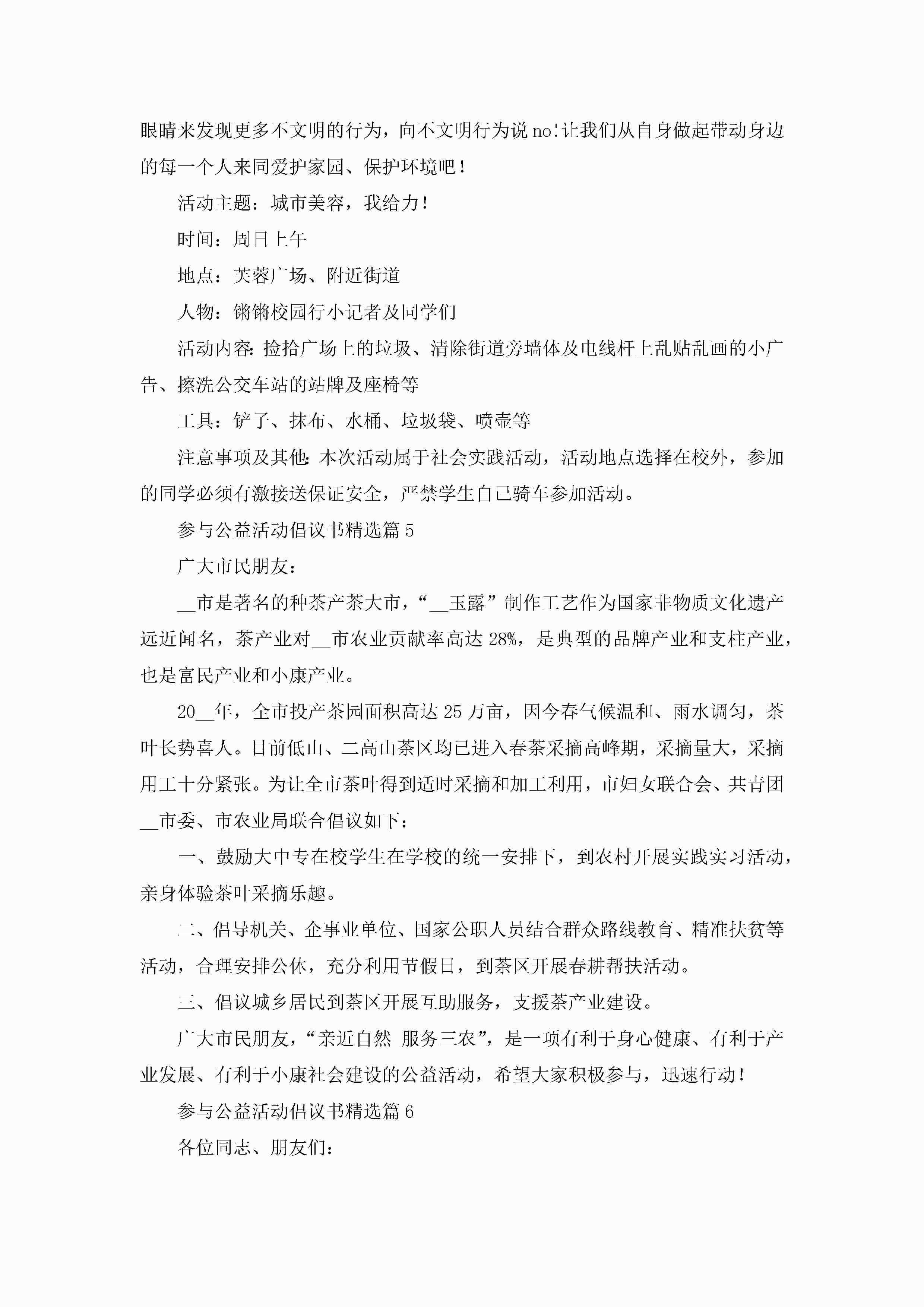 参与公益活动倡议书最新内容7篇jugei3月22日 16:26发布关注248 参与公益活动倡议书最新内容7篇此内容为付费资源,请付费后查看¥10.9 单篇文档限时特惠¥15个人会员开通企业会员开通立即下载无需登陆!可直接快捷下载单个模板付费资源© 版权声明THE ENDWord模板# 实用文档# 信函模板# 倡议书# 参与公益活动倡议书内容7篇 如有问题,可点击最底部“联系我们”联系客服 分享QQ空间微博QQ好友海报分享复制链接收藏
