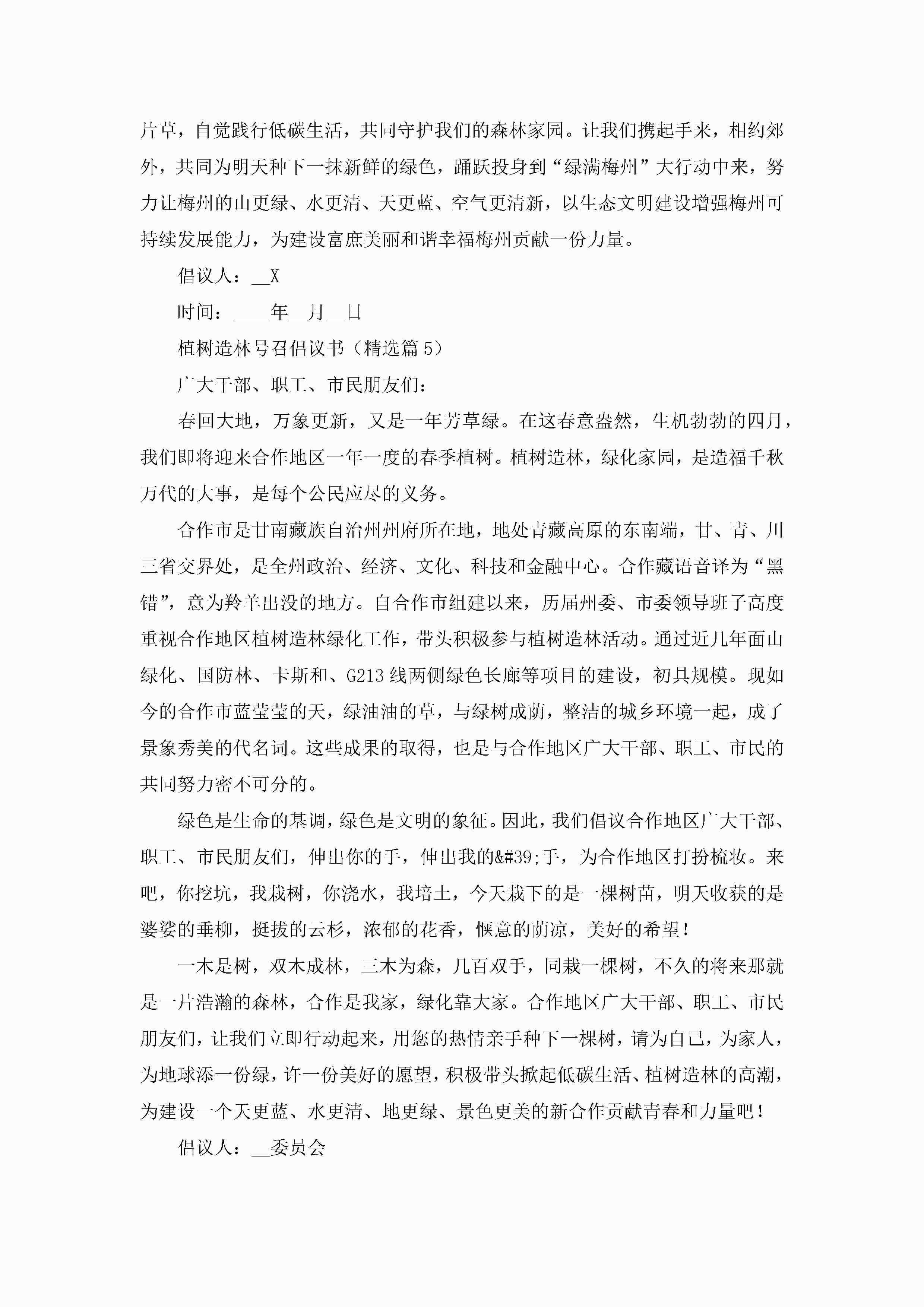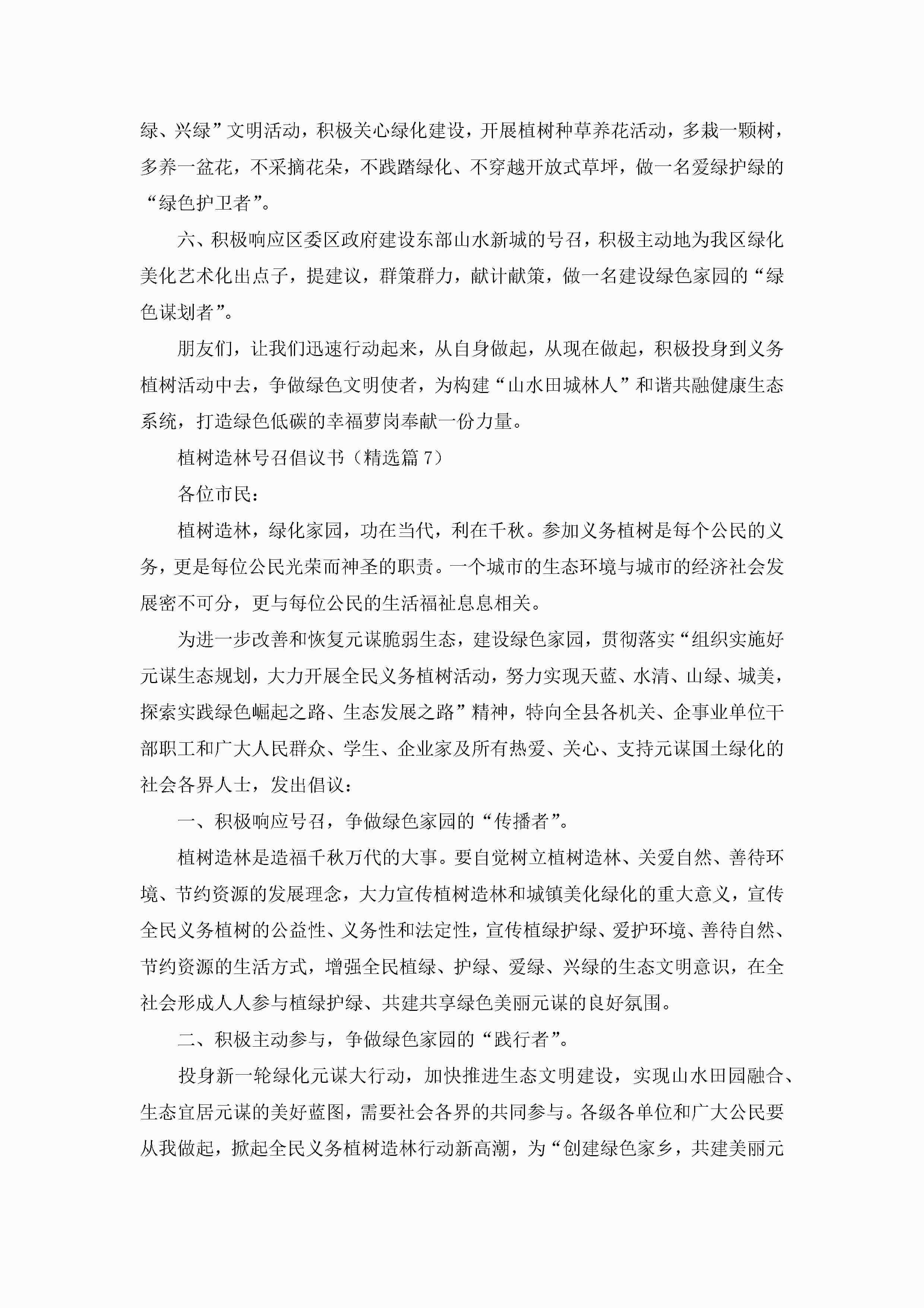 2023年度植树造林号召倡议书最新(模板)jugei3月22日 16:26发布关注193 2023年度植树造林号召倡议书最新(模板)此内容为付费资源,请付费后查看¥10.9 单篇文档限时特惠¥15个人会员开通企业会员开通立即下载无需登陆!可直接快捷下载单个模板付费资源© 版权声明THE ENDWord模板# 实用文档# 信函模板# 倡议书# 2023年度植树造林号召倡议书(模板) 如有问题,可点击最底部“联系我们”联系客服 分享QQ空间微博QQ好友海报分享复制链接收藏