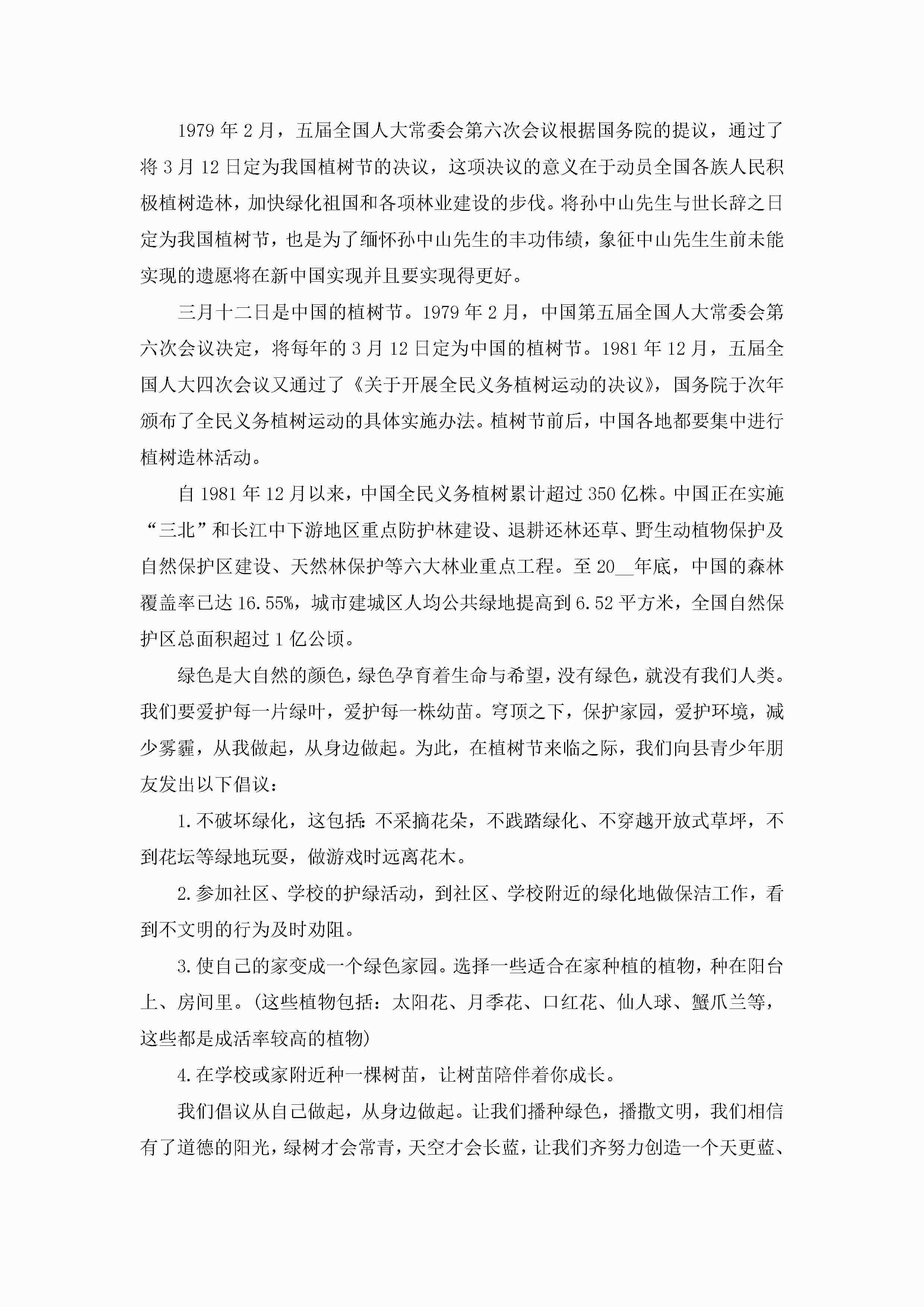 2023植树造林书面倡议书最新格式jugei3月22日 16:26发布关注220 2023植树造林书面倡议书最新格式此内容为付费资源,请付费后查看¥10.9 单篇文档限时特惠¥15个人会员开通企业会员开通立即下载无需登陆!可直接快捷下载单个模板付费资源© 版权声明THE ENDWord模板# 实用文档# 信函模板# 倡议书# 植树造林书面倡议书最新格式 如有问题,可点击最底部“联系我们”联系客服 分享QQ空间微博QQ好友海报分享复制链接收藏