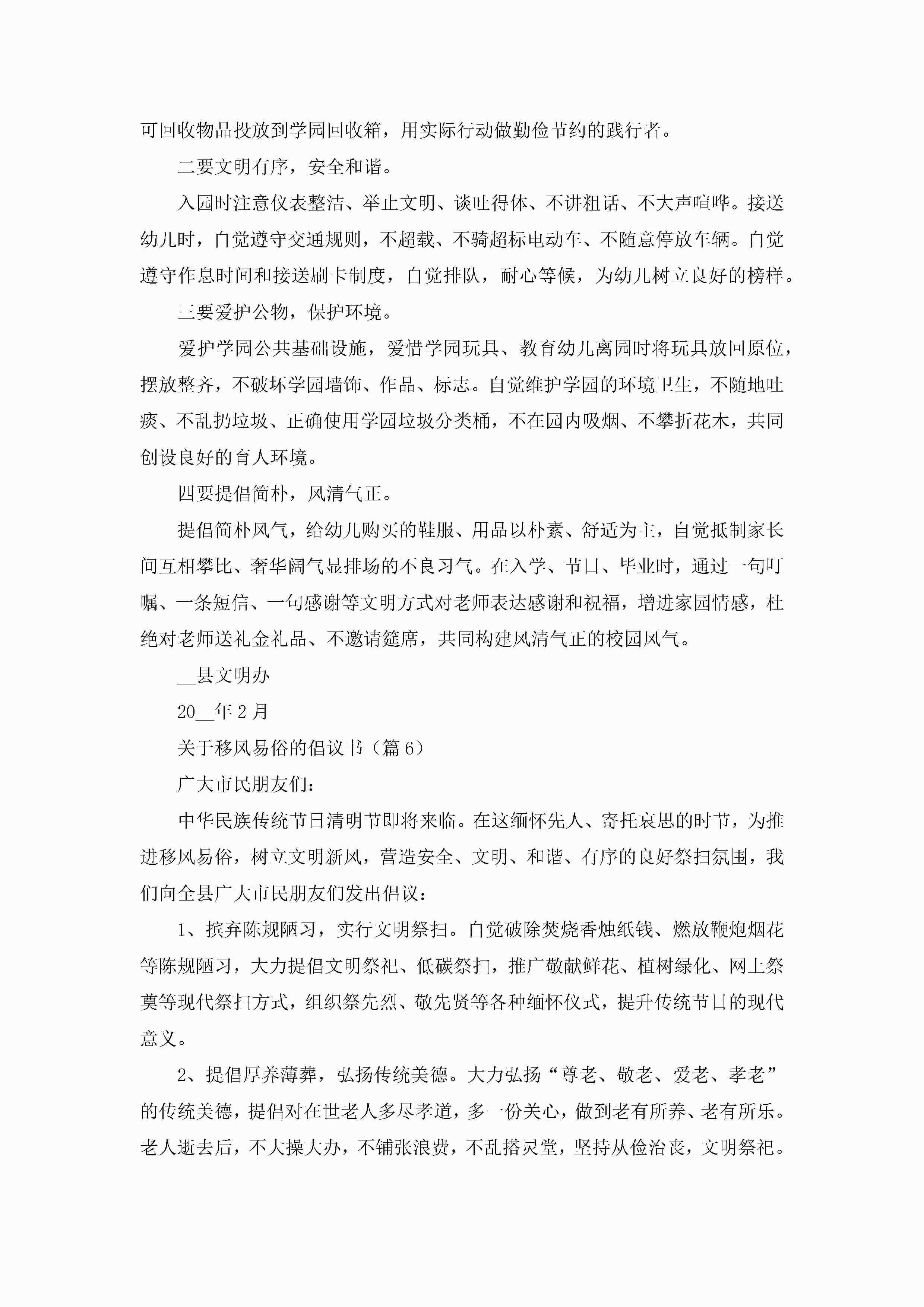 关于移风易俗的倡议书【通用7篇】jugei3月22日 16:26发布关注199 关于移风易俗的倡议书【通用7篇】此内容为付费资源,请付费后查看¥10.9 单篇文档限时特惠¥15个人会员开通企业会员开通立即下载无需登陆!可直接快捷下载单个模板付费资源© 版权声明THE ENDWord模板# 实用文档# 信函模板# 倡议书# 关于移风易俗的倡议书 如有问题,可点击最底部“联系我们”联系客服 分享QQ空间微博QQ好友海报分享复制链接收藏