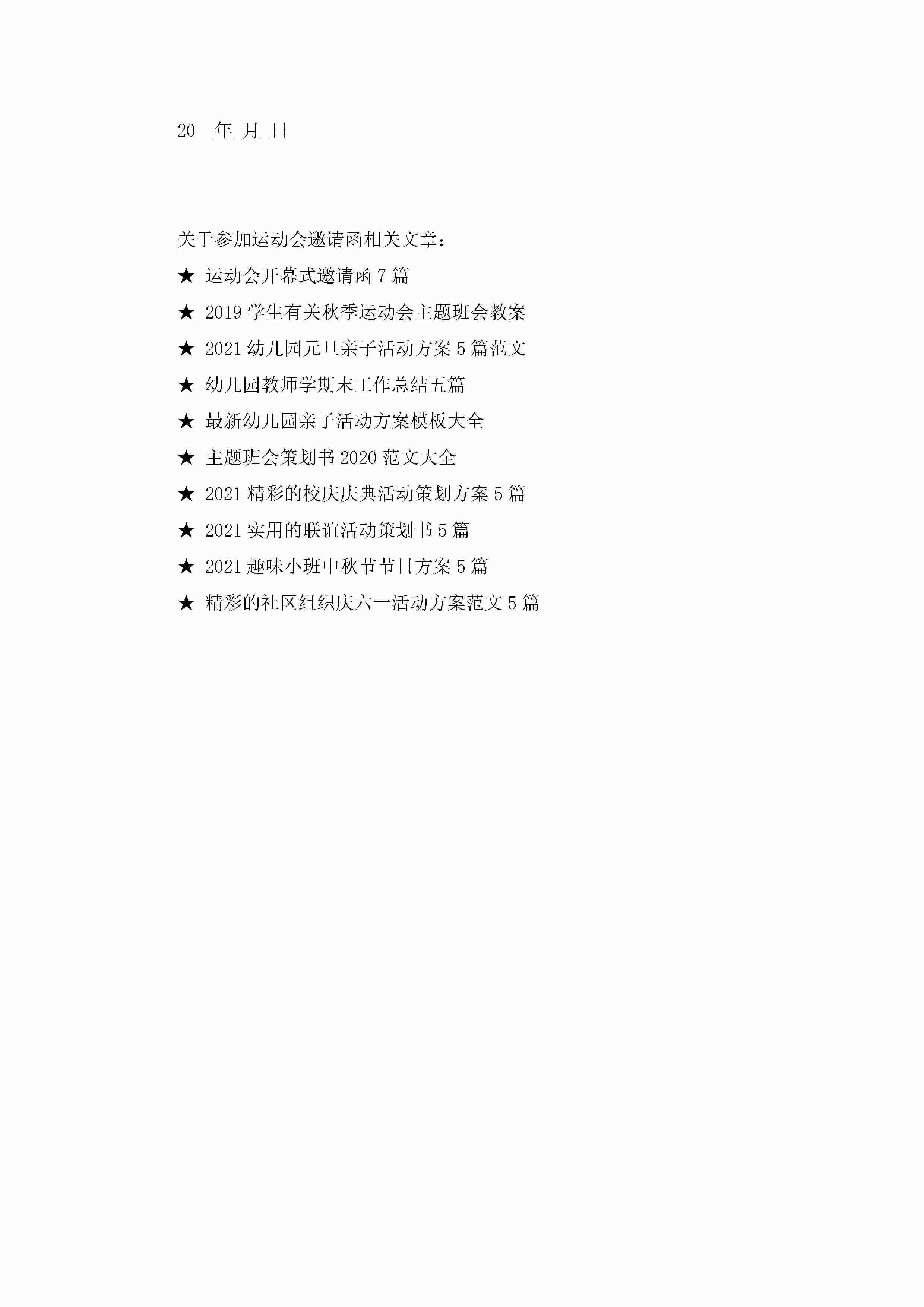 关于参加运动会邀请函5篇jugei3月22日 16:26发布关注388 关于参加运动会邀请函5篇此内容为付费资源,请付费后查看¥10.9 单篇文档限时特惠¥15个人会员开通企业会员开通立即下载无需登陆!可直接快捷下载单个模板付费资源© 版权声明THE ENDWord模板# 实用文档# 实用模板# 信函模板# 邀请函 如有问题,可点击最底部“联系我们”联系客服 分享QQ空间微博QQ好友海报分享复制链接收藏
