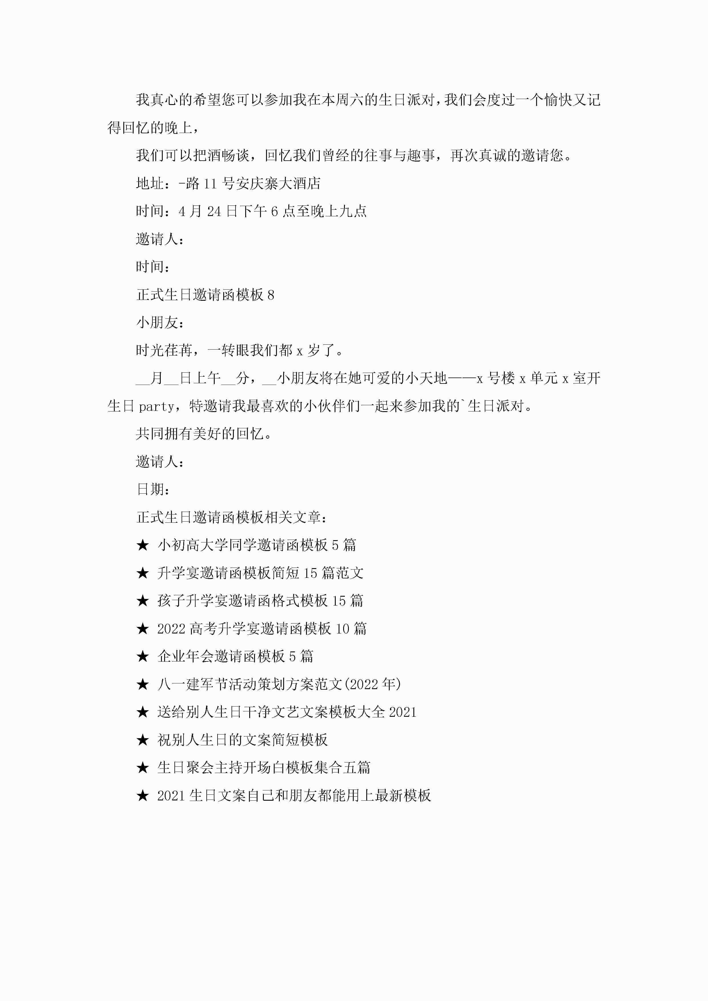 正式生日邀请函模板8篇jugei3月22日 16:26发布关注304 正式生日邀请函模板8篇此内容为付费资源,请付费后查看¥10.9 单篇文档限时特惠¥15个人会员开通企业会员开通立即下载无需登陆!可直接快捷下载单个模板付费资源© 版权声明THE ENDWord模板# 实用文档# 实用模板# 信函模板# 邀请函 如有问题,可点击最底部“联系我们”联系客服 分享QQ空间微博QQ好友海报分享复制链接收藏