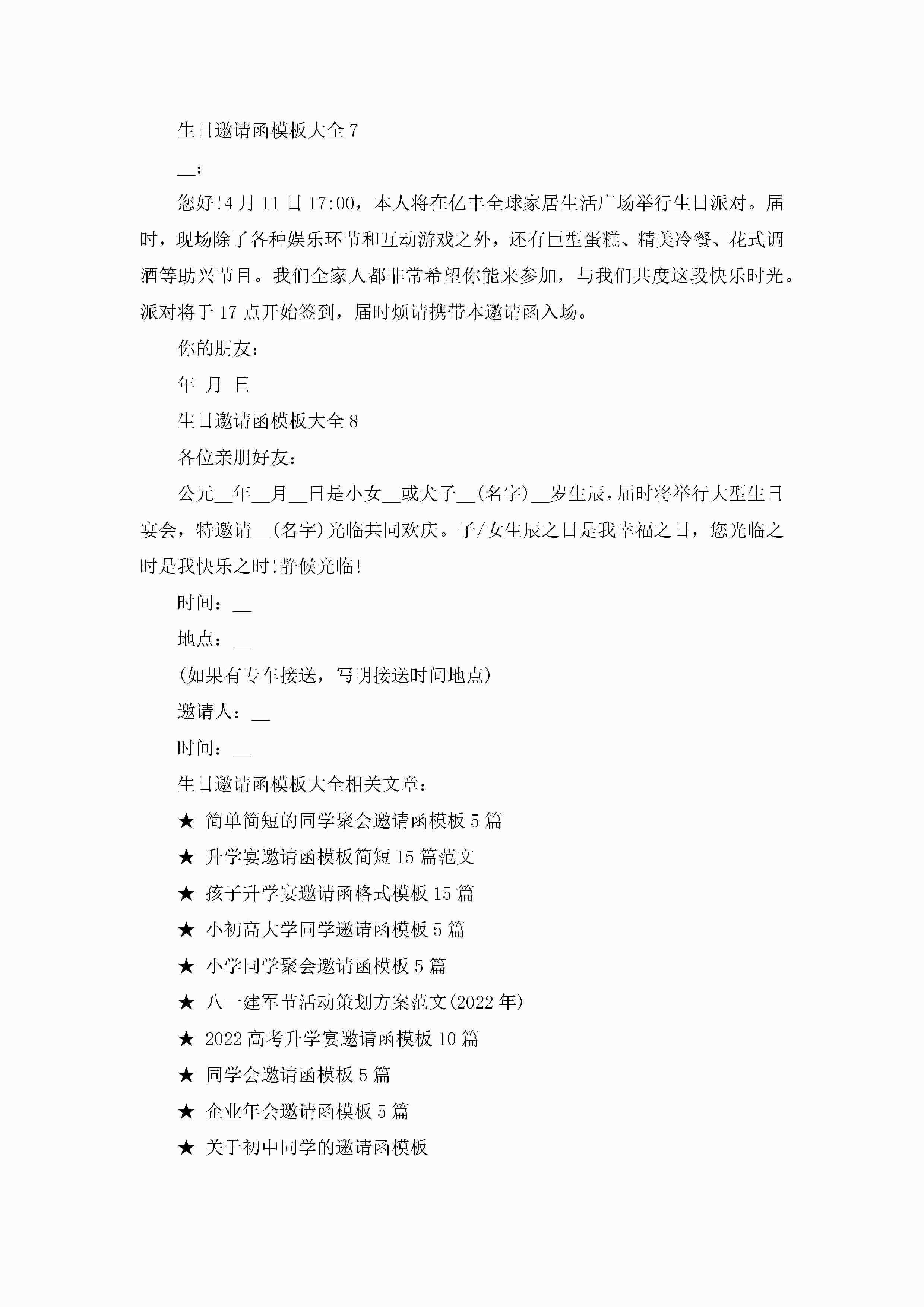 生日邀请函模板大全8篇jugei3月22日 16:26发布关注252 生日邀请函模板大全8篇此内容为付费资源,请付费后查看¥10.9 单篇文档限时特惠¥15个人会员开通企业会员开通立即下载无需登陆!可直接快捷下载单个模板付费资源© 版权声明THE ENDWord模板# 实用文档# 实用模板# 信函模板# 邀请函 如有问题,可点击最底部“联系我们”联系客服 分享QQ空间微博QQ好友海报分享复制链接收藏