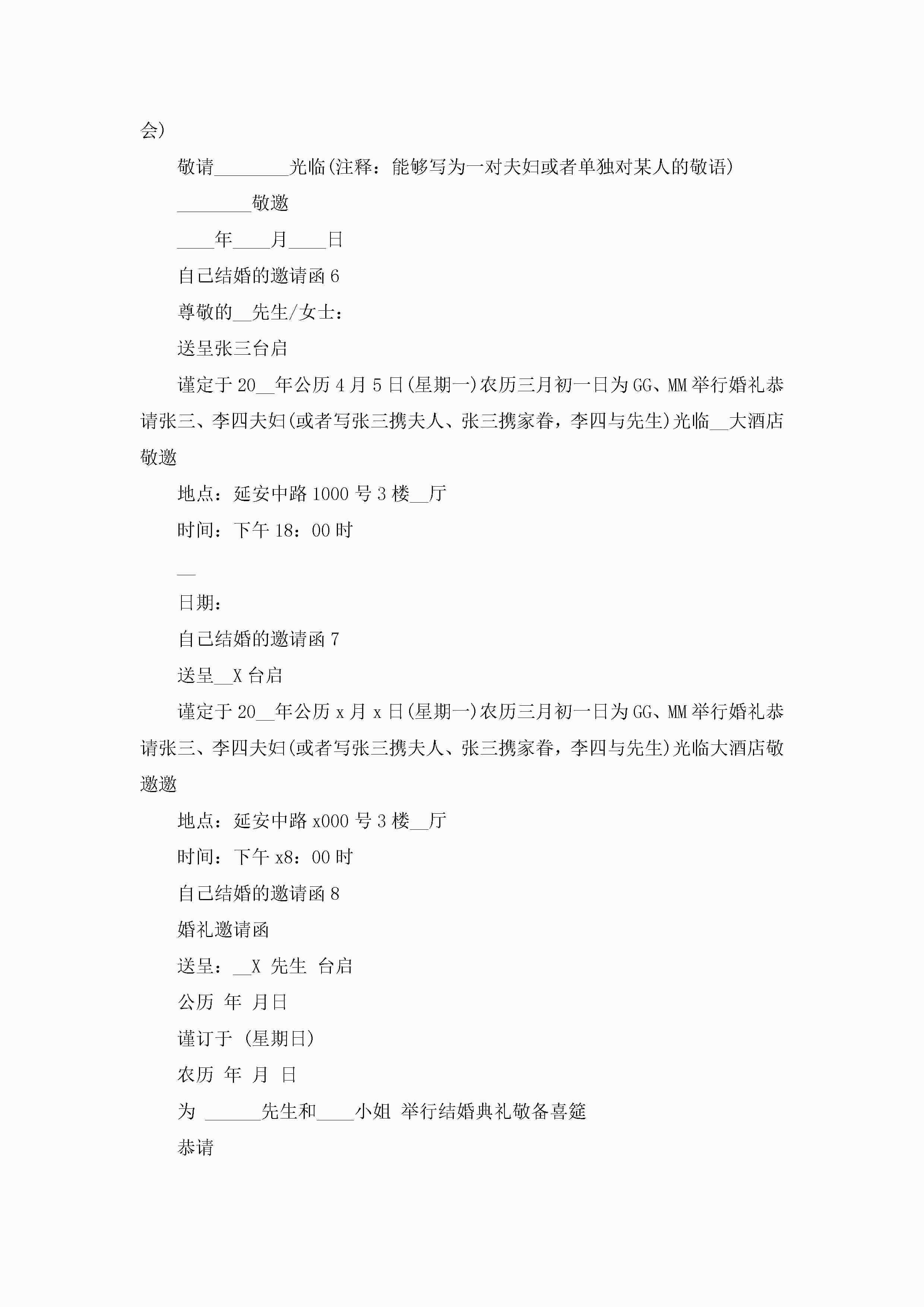 自己结婚的邀请函大全10篇jugei3月22日 16:26发布关注364 自己结婚的邀请函大全10篇此内容为付费资源,请付费后查看¥10.9 单篇文档限时特惠¥15个人会员开通企业会员开通立即下载无需登陆!可直接快捷下载单个模板付费资源© 版权声明THE ENDWord模板# 实用文档# 实用模板# 信函模板# 邀请函 如有问题,可点击最底部“联系我们”联系客服 分享QQ空间微博QQ好友海报分享复制链接收藏