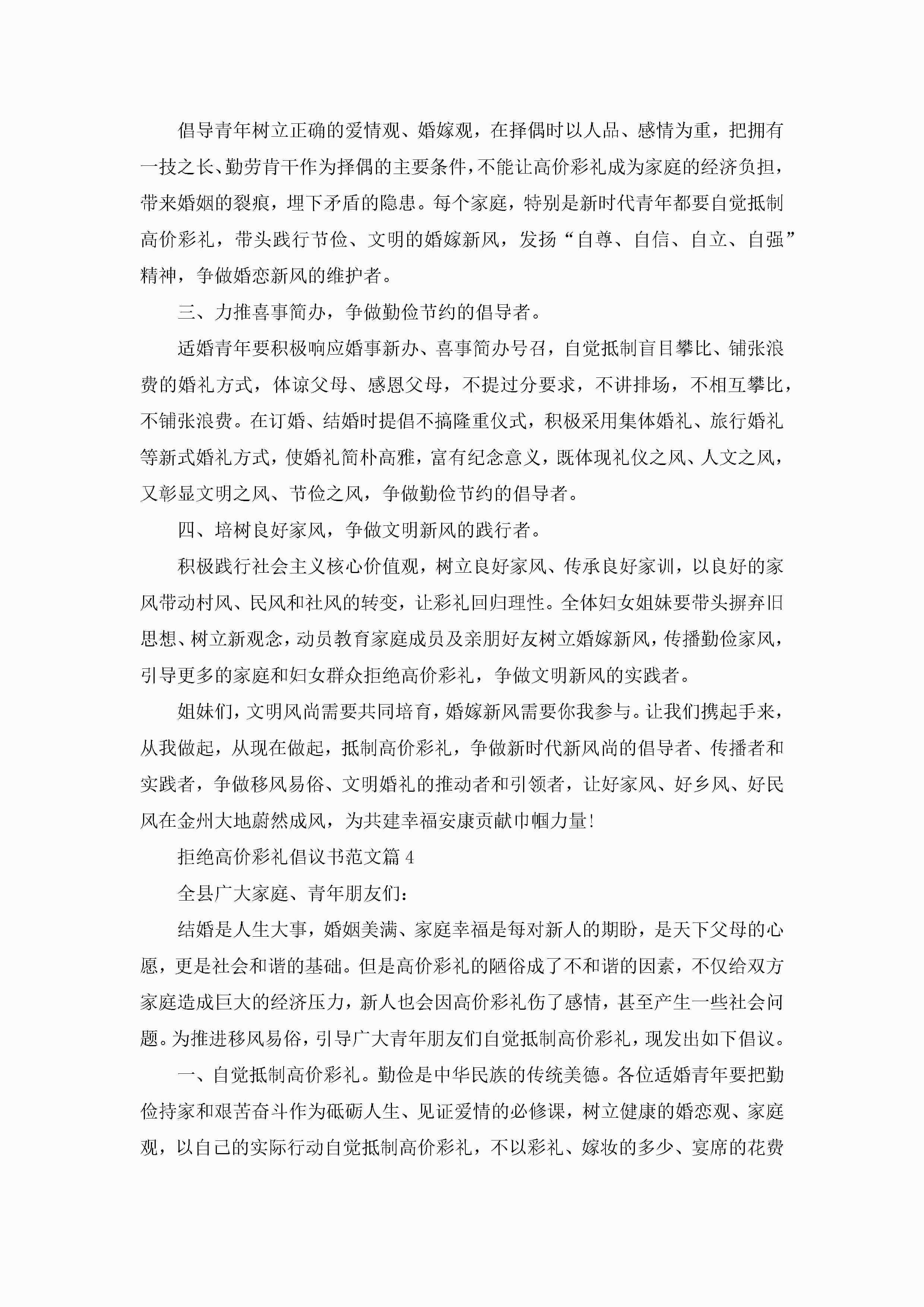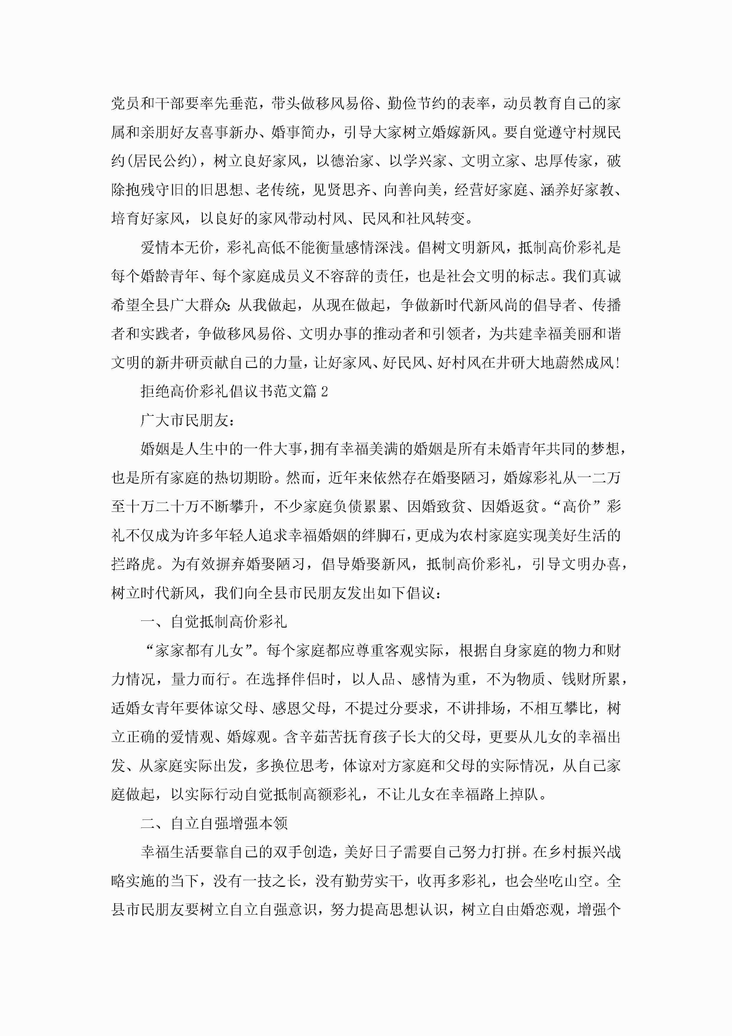 拒绝高价彩礼倡议书范文(5篇)jugei3月22日 16:26发布关注188 拒绝高价彩礼倡议书范文(5篇)此内容为付费资源,请付费后查看¥10.9 单篇文档限时特惠¥15个人会员开通企业会员开通立即下载无需登陆!可直接快捷下载单个模板付费资源© 版权声明THE ENDWord模板# 实用文档# 实用模板# 信函模板# 倡议书# 拒绝高价彩礼倡议书范文 如有问题,可点击最底部“联系我们”联系客服 分享QQ空间微博QQ好友海报分享复制链接收藏