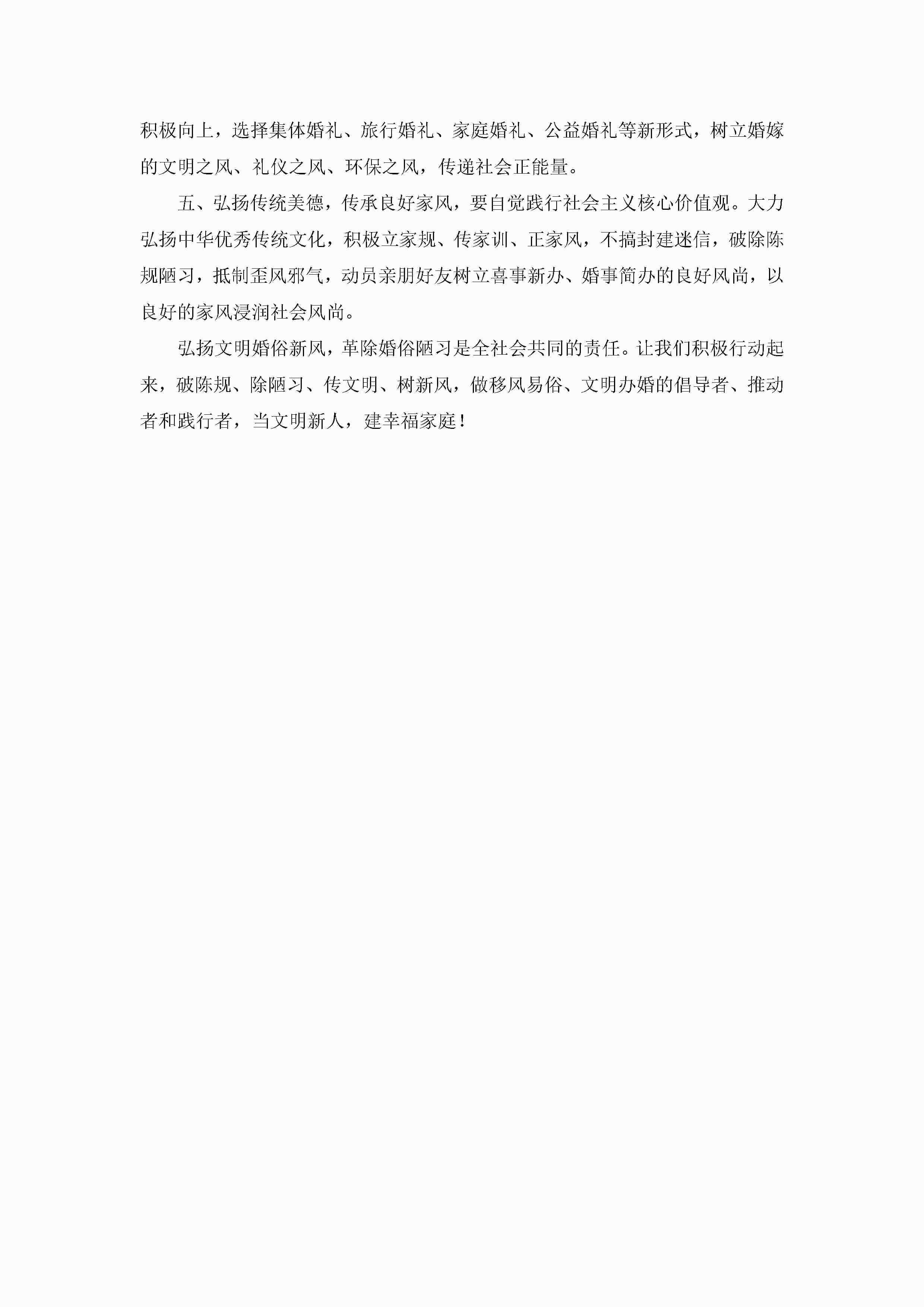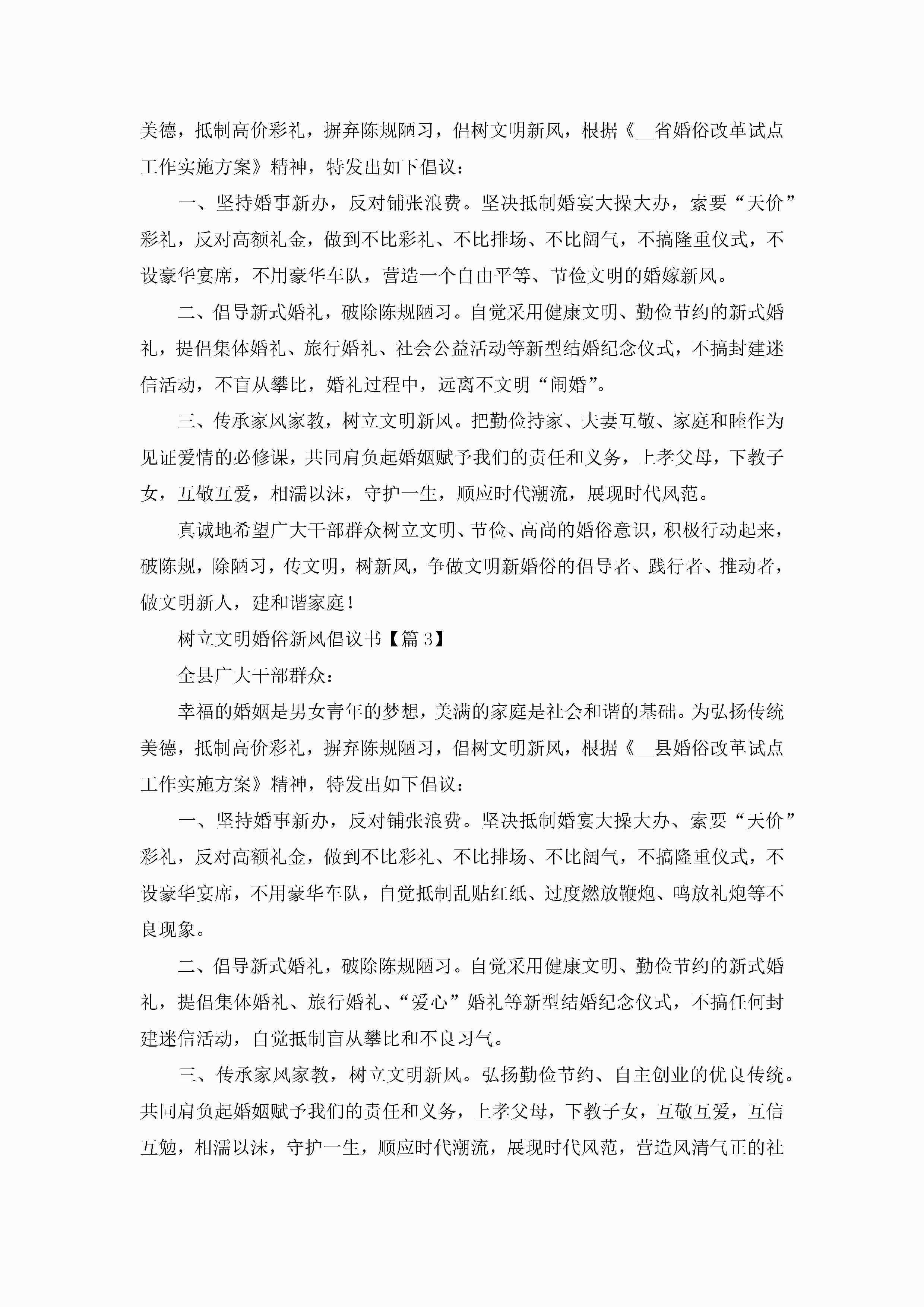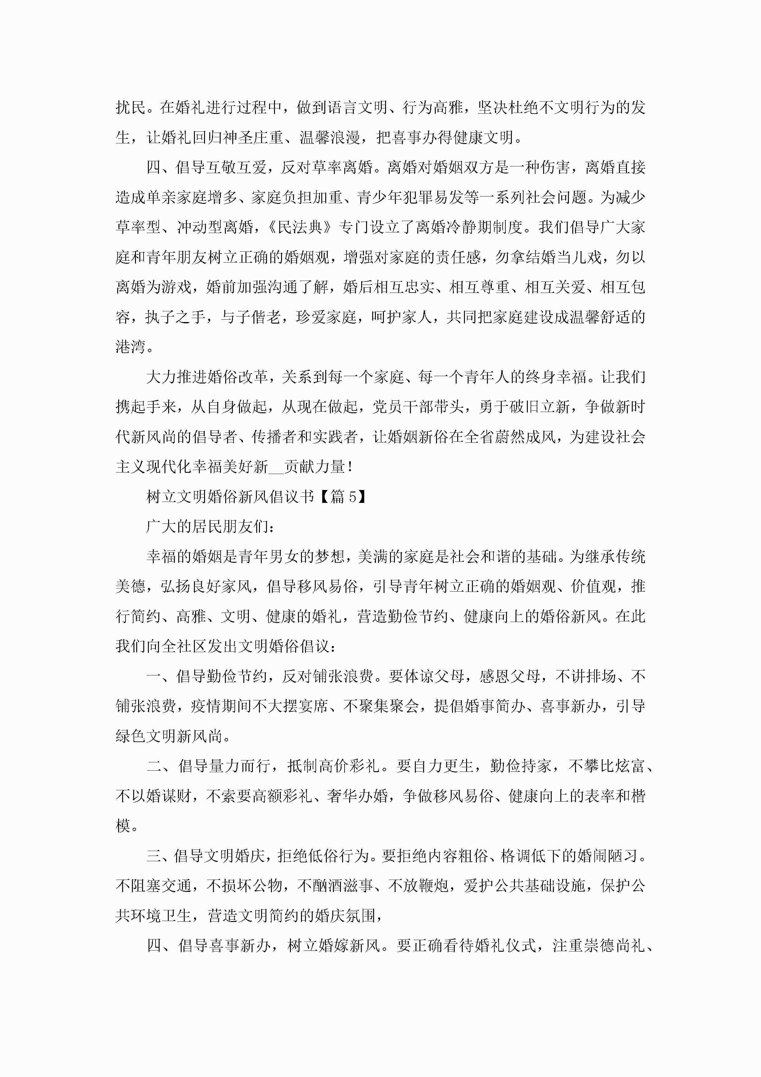 树立文明婚俗新风倡议书【5篇】jugei3月22日 16:26发布关注192 树立文明婚俗新风倡议书【5篇】此内容为付费资源,请付费后查看¥10.9 单篇文档限时特惠¥15个人会员开通企业会员开通立即下载无需登陆!可直接快捷下载单个模板付费资源© 版权声明THE ENDWord模板# 实用文档# 实用模板# 信函模板# 倡议书# 树立文明婚俗新风倡议书 如有问题,可点击最底部“联系我们”联系客服 分享QQ空间微博QQ好友海报分享复制链接收藏