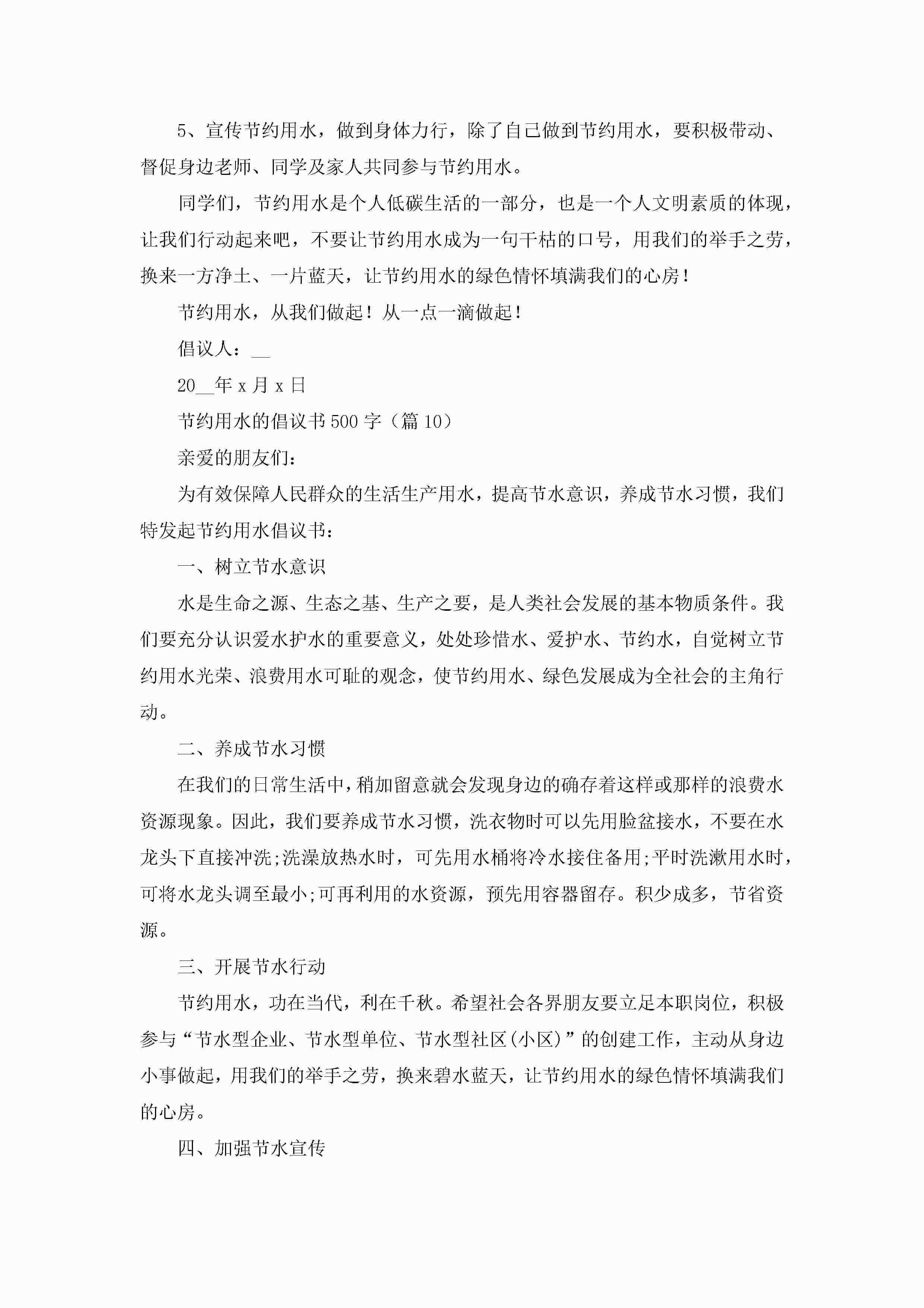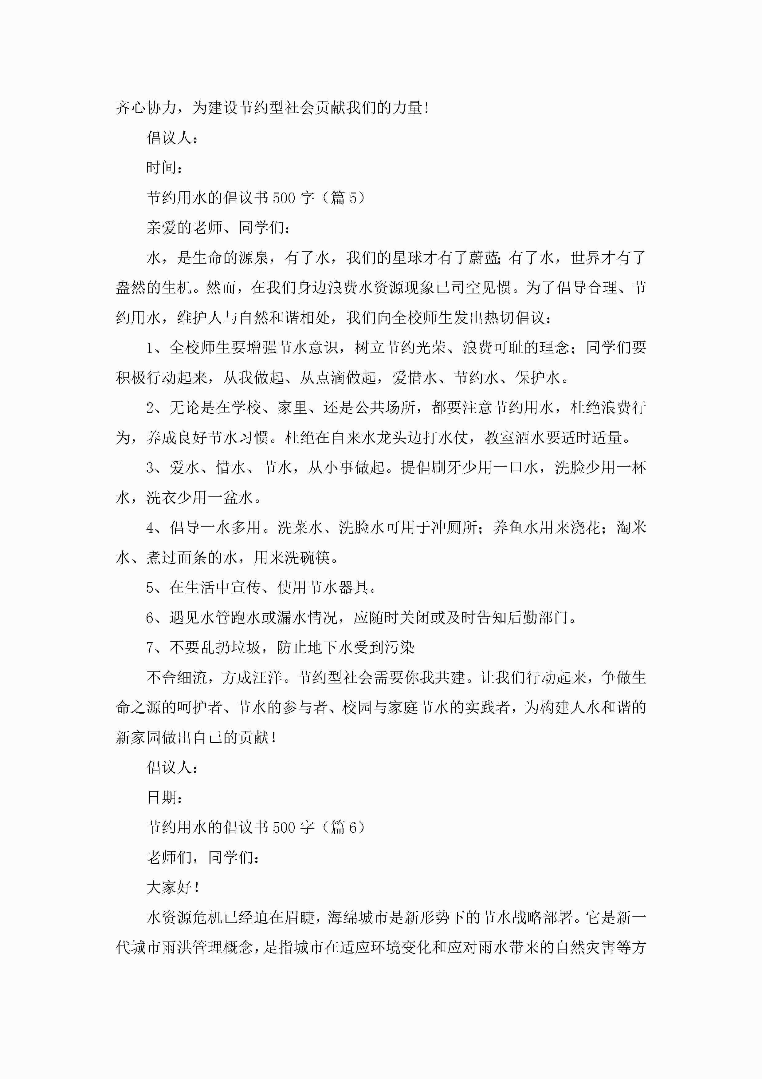 节约用水的倡议书500字范文(10篇)jugei3月22日 16:26发布关注915 节约用水的倡议书500字范文(10篇)此内容为付费资源,请付费后查看¥10.9 单篇文档限时特惠¥15个人会员开通企业会员开通立即下载无需登陆!可直接快捷下载单个模板付费资源© 版权声明THE ENDWord模板# 实用文档# 实用模板# 信函模板# 倡议书# 节约用水的倡议书500字10篇 如有问题,可点击最底部“联系我们”联系客服 分享QQ空间微博QQ好友海报分享复制链接收藏