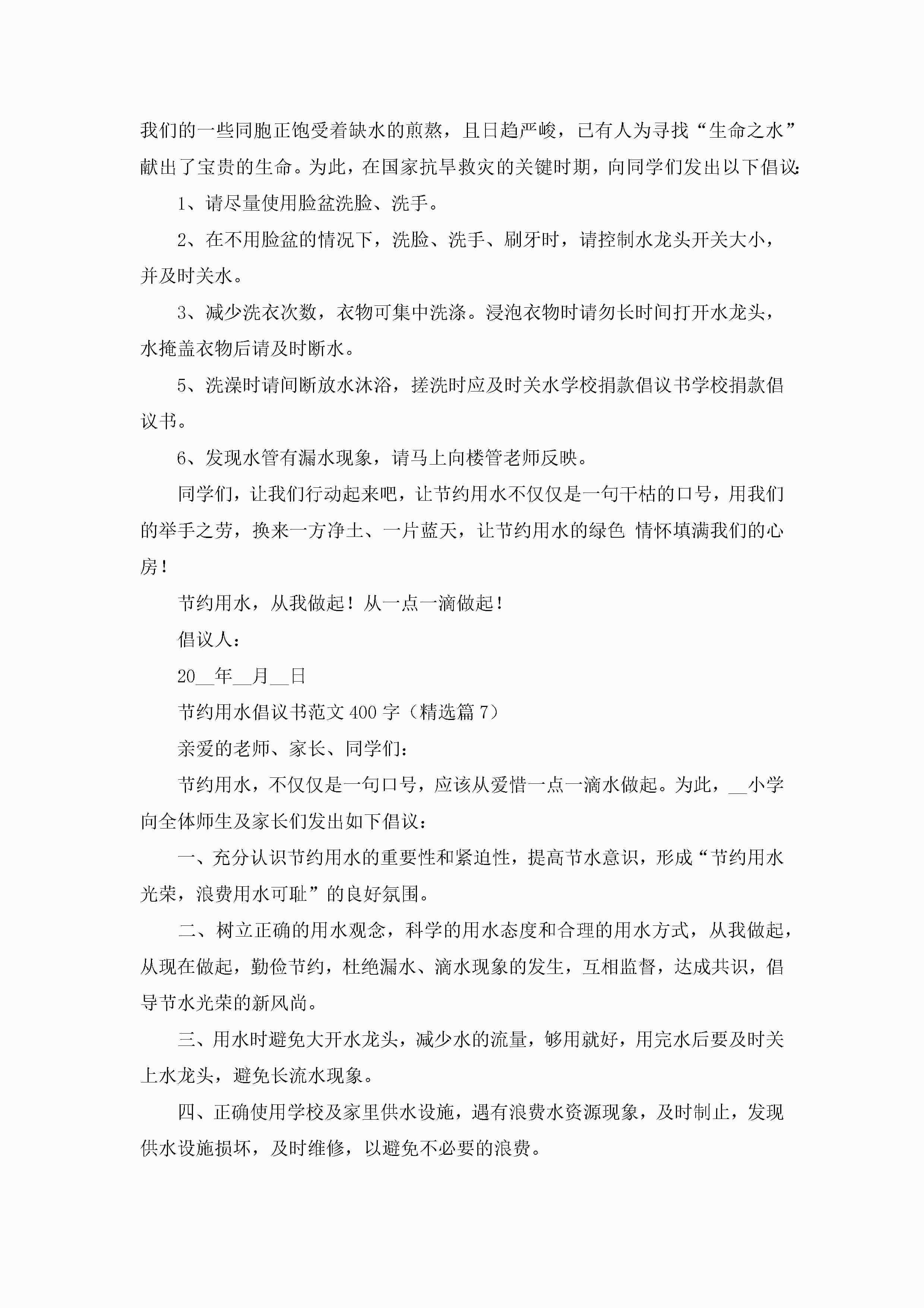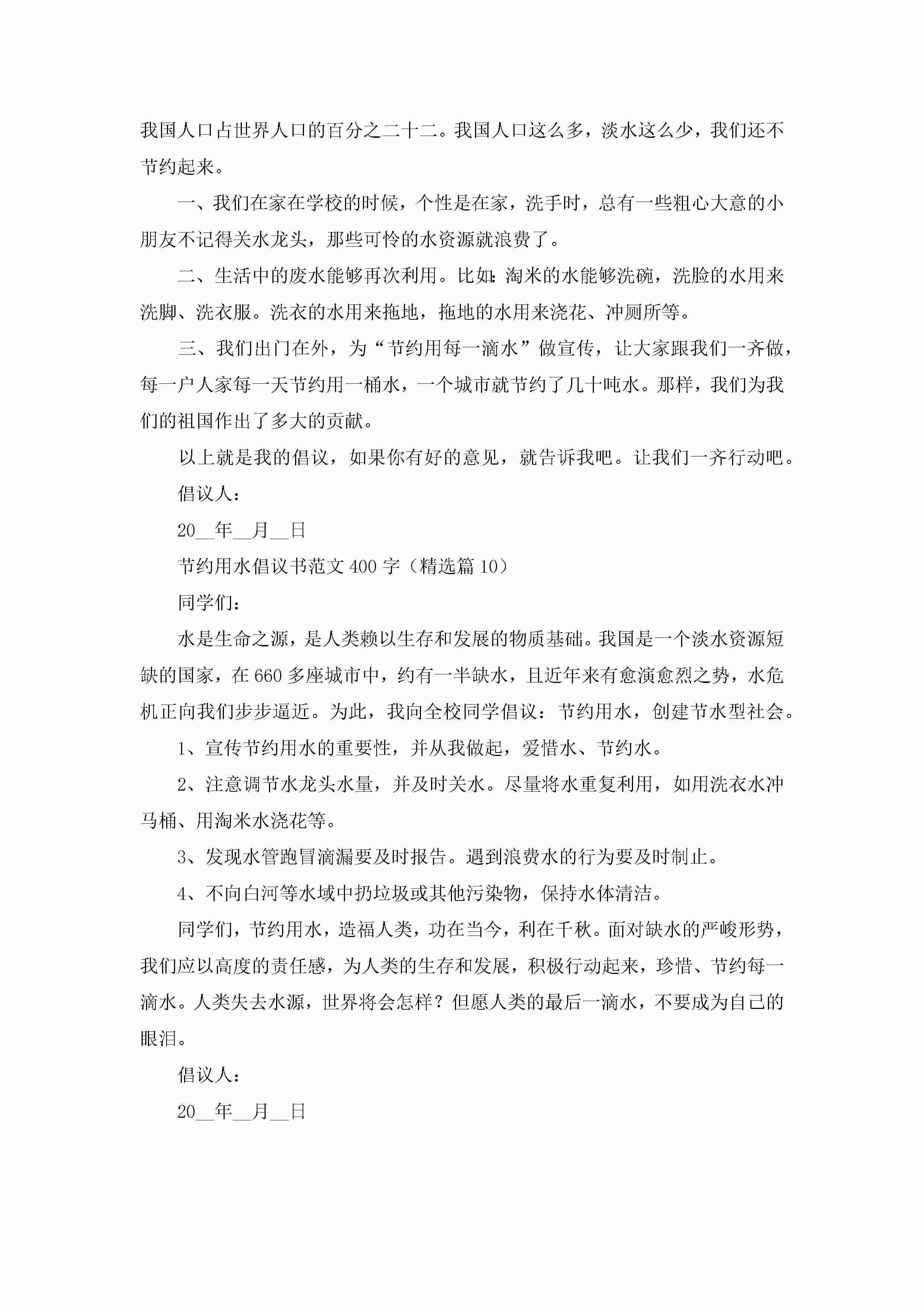 节约用水倡议书范文400字(精选十篇)jugei3月22日 16:26发布关注193 节约用水倡议书范文400字(精选十篇)此内容为付费资源,请付费后查看¥10.9 单篇文档限时特惠¥15个人会员开通企业会员开通立即下载无需登陆!可直接快捷下载单个模板付费资源© 版权声明THE ENDWord模板# 实用文档# 实用模板# 信函模板# 倡议书# 节约用水倡议书范文400字十篇 如有问题,可点击最底部“联系我们”联系客服 分享QQ空间微博QQ好友海报分享复制链接收藏