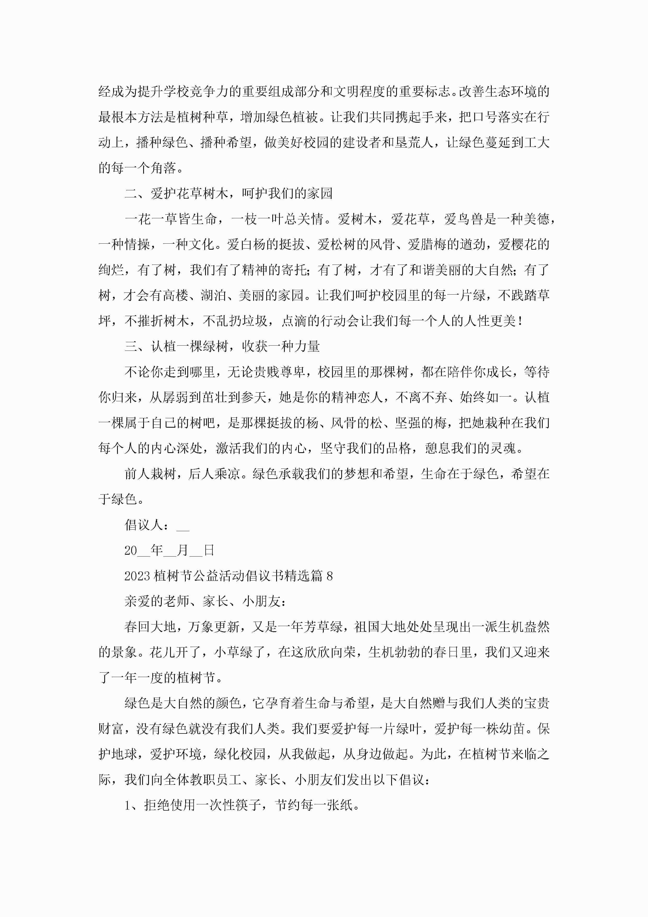 2023植树节公益活动倡议书(12篇精选)jugei3月22日 16:26发布关注196 2023植树节公益活动倡议书(12篇精选)此内容为付费资源,请付费后查看¥10.9 单篇文档限时特惠¥15个人会员开通企业会员开通立即下载无需登陆!可直接快捷下载单个模板付费资源© 版权声明THE ENDWord模板# 实用文档# 实用模板# 信函模板# 倡议书# 2023植树节公益活动倡议书12篇 如有问题,可点击最底部“联系我们”联系客服 分享QQ空间微博QQ好友海报分享复制链接收藏