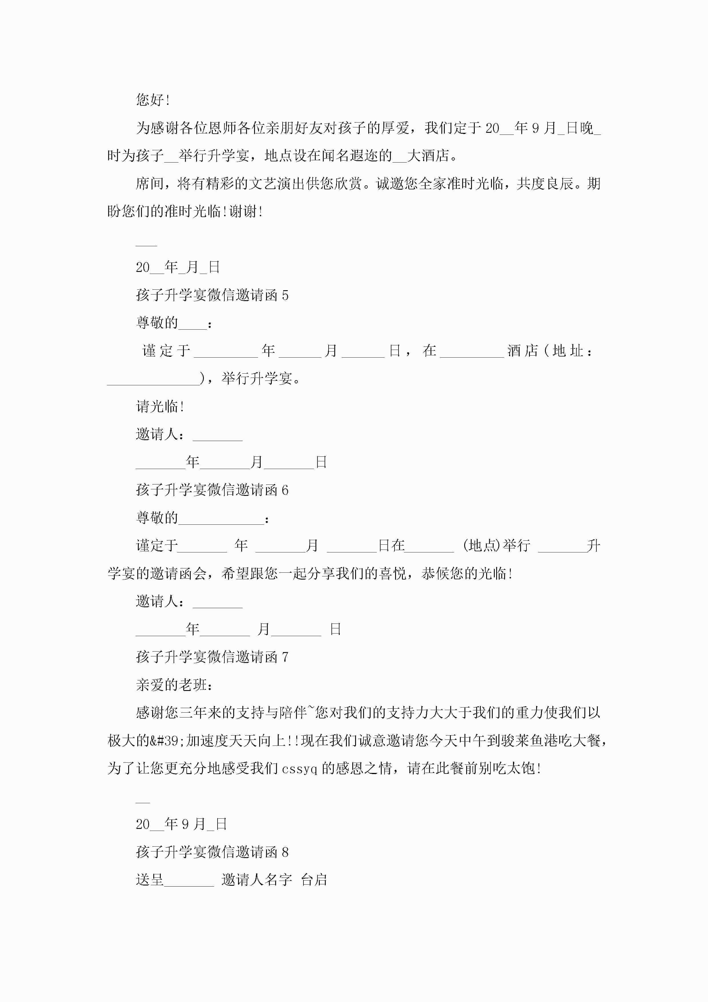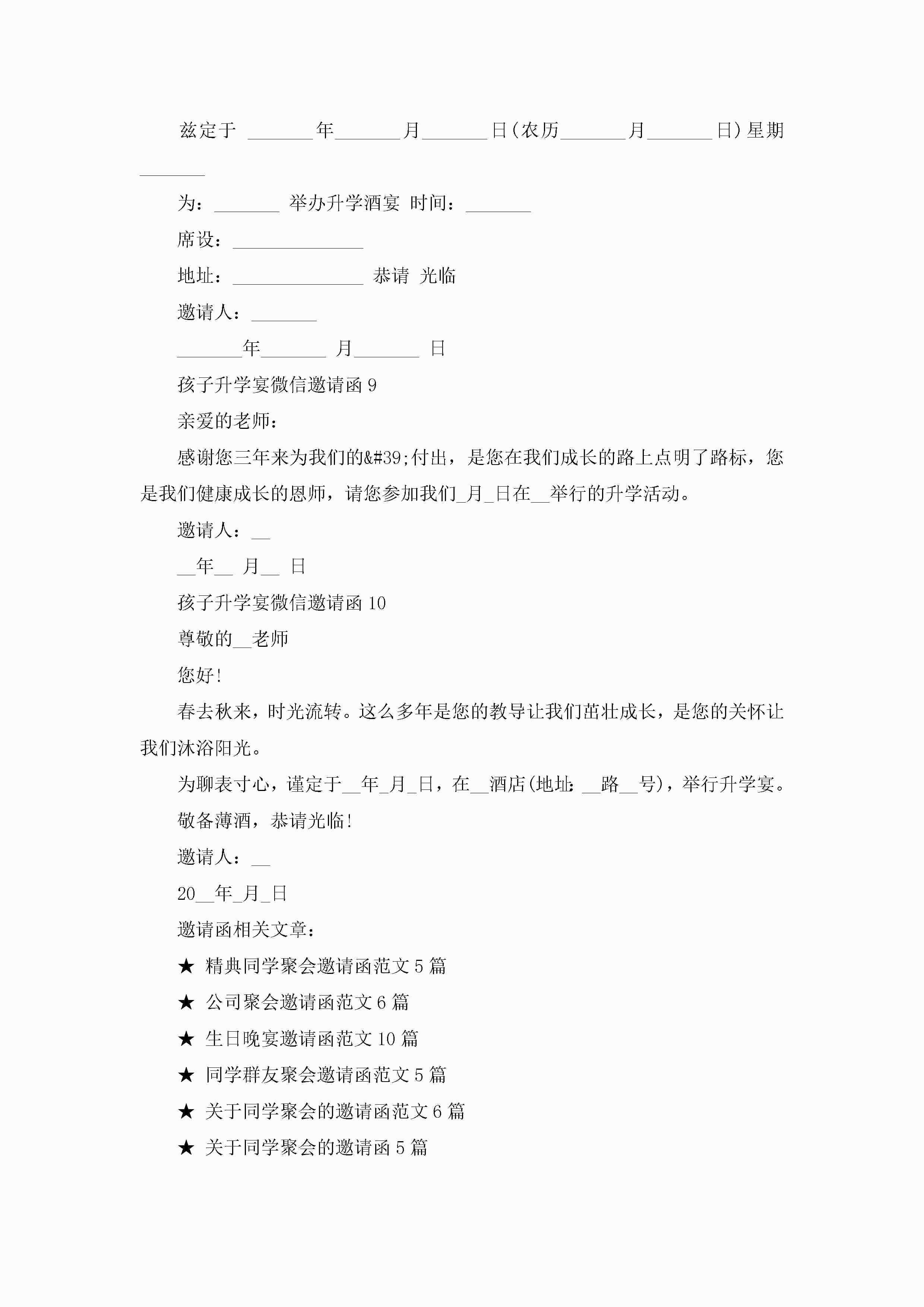 孩子升学宴微信邀请函(10篇)jugei3月22日 16:26发布关注281 孩子升学宴微信邀请函(10篇)此内容为付费资源,请付费后查看¥10.9 单篇文档限时特惠¥15个人会员开通企业会员开通立即下载无需登陆!可直接快捷下载单个模板付费资源© 版权声明THE ENDWord模板# 实用文档# 实用模板# 信函模板# 邀请函 如有问题,可点击最底部“联系我们”联系客服 分享QQ空间微博QQ好友海报分享复制链接收藏