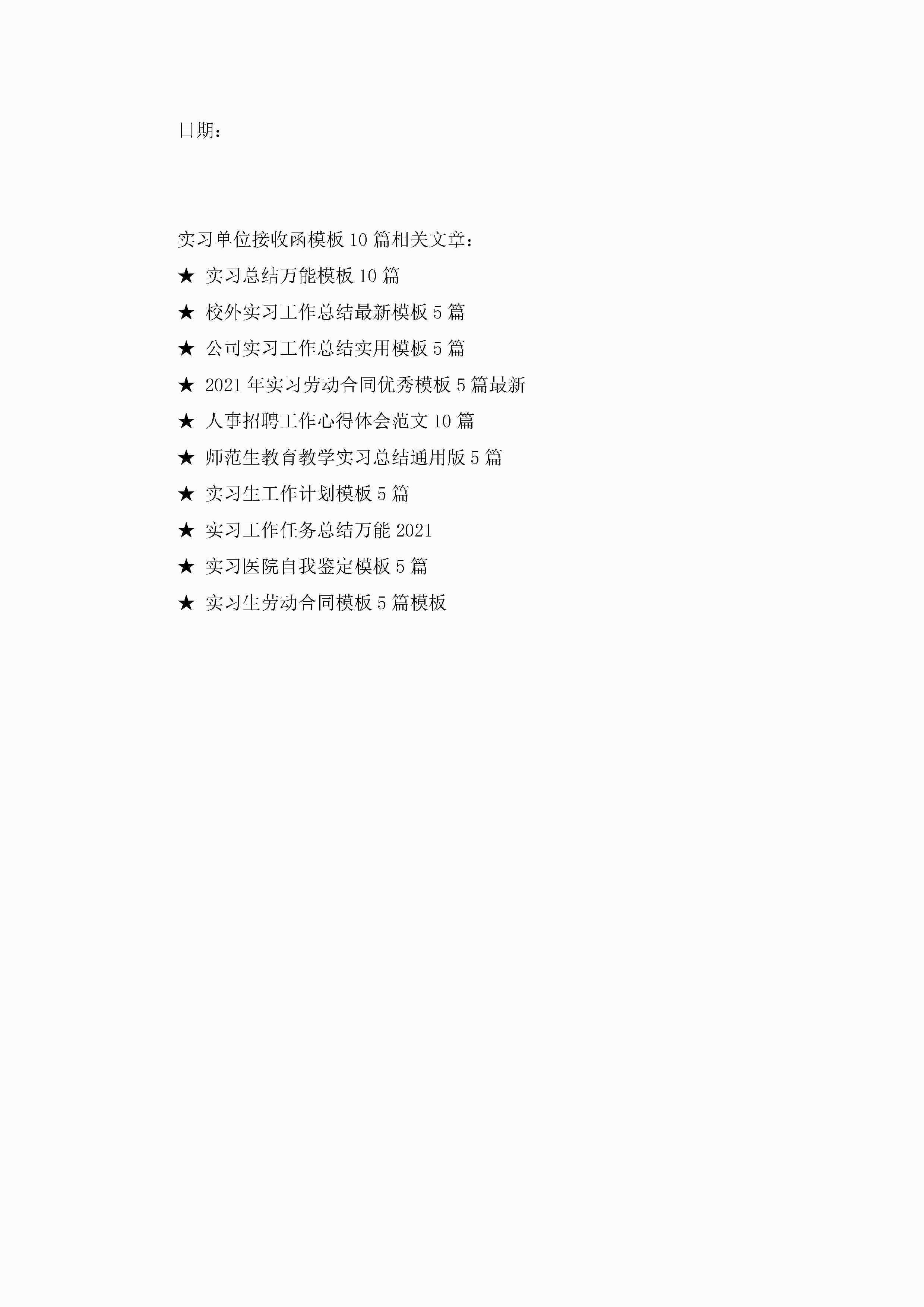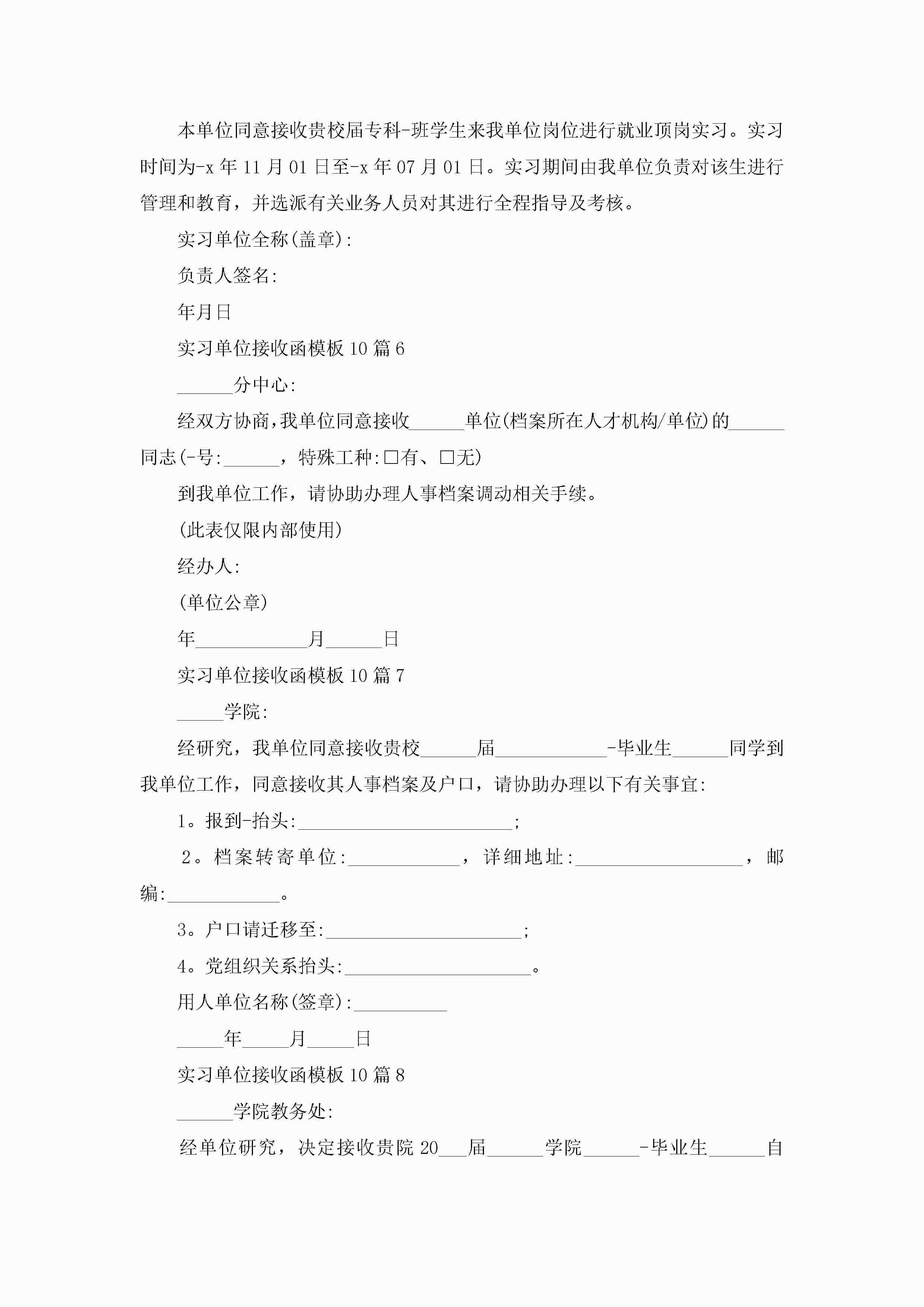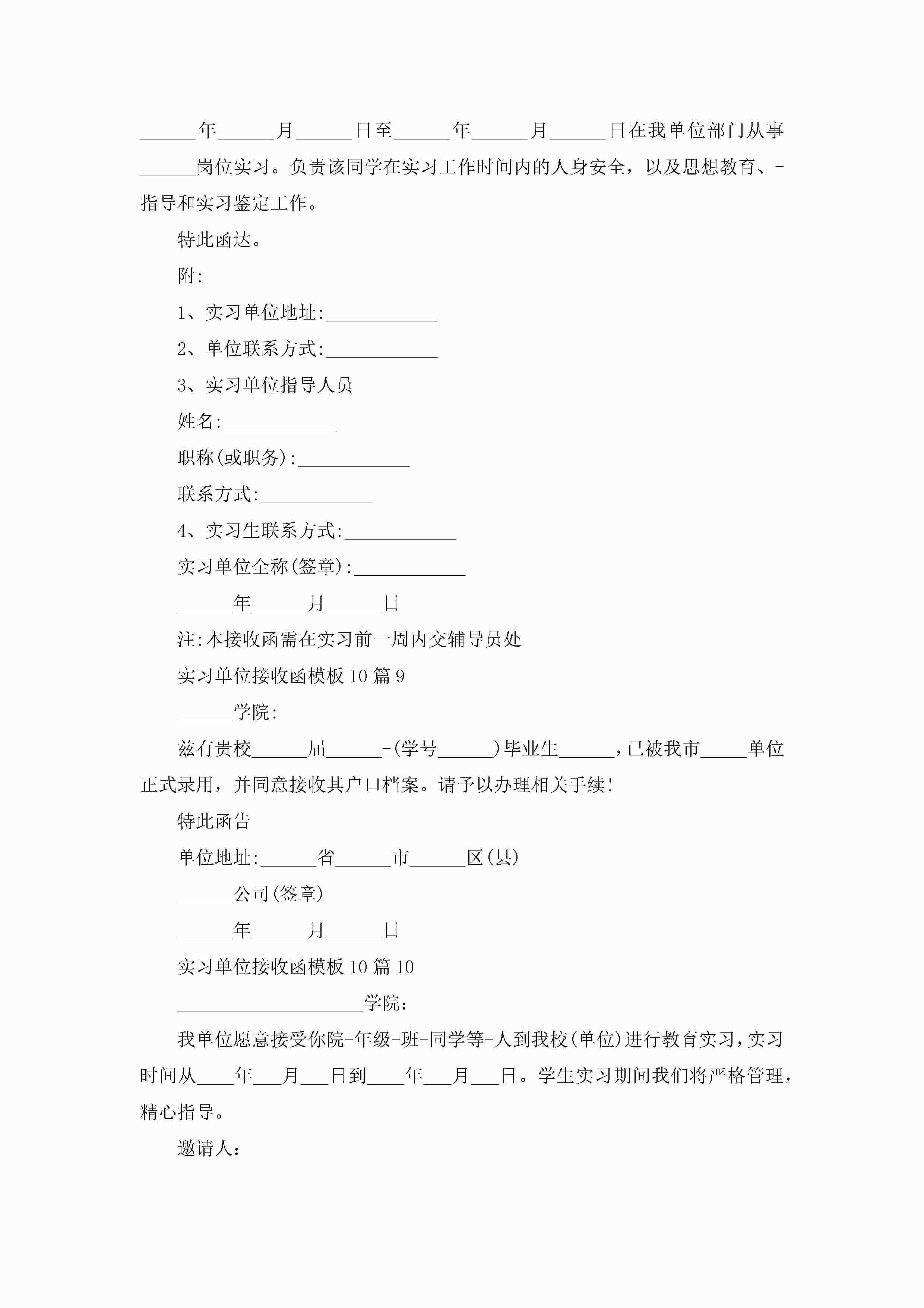 实习单位接收函模板大全10篇jugei3月22日 16:26发布关注205 实习单位接收函模板大全10篇此内容为付费资源,请付费后查看¥10.9 单篇文档限时特惠¥15个人会员开通企业会员开通立即下载无需登陆!可直接快捷下载单个模板付费资源© 版权声明THE ENDWord模板# 实用文档# 实用模板# 信函模板# 接收函 如有问题,可点击最底部“联系我们”联系客服 分享QQ空间微博QQ好友海报分享复制链接收藏