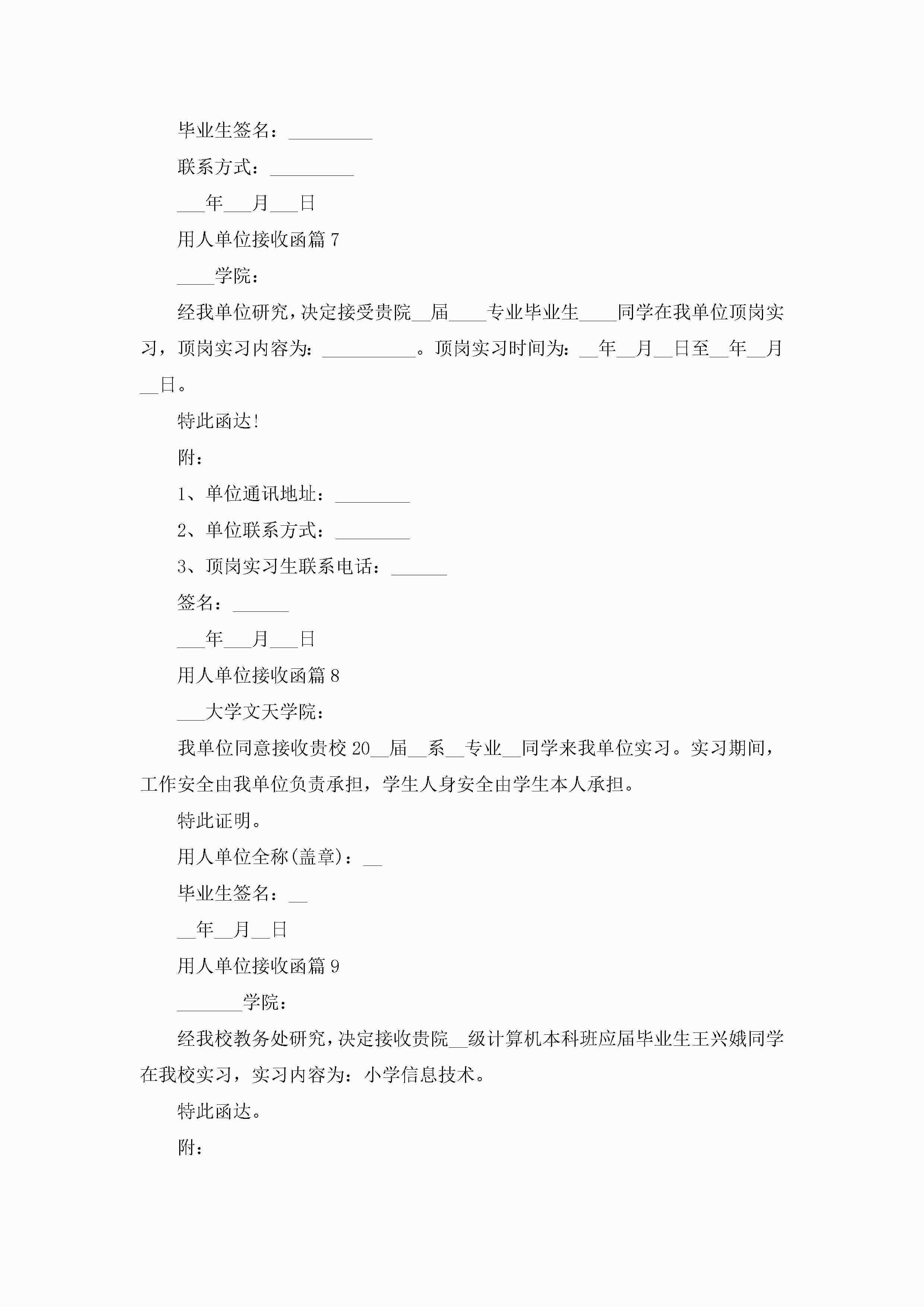 用人单位接收函10篇(精选)jugei3月22日 16:26发布关注237 用人单位接收函10篇(精选)此内容为付费资源,请付费后查看¥10.9 单篇文档限时特惠¥15个人会员开通企业会员开通立即下载无需登陆!可直接快捷下载单个模板付费资源© 版权声明THE ENDWord模板# 实用文档# 实用模板# 信函模板# 接收函 如有问题,可点击最底部“联系我们”联系客服 分享QQ空间微博QQ好友海报分享复制链接收藏
