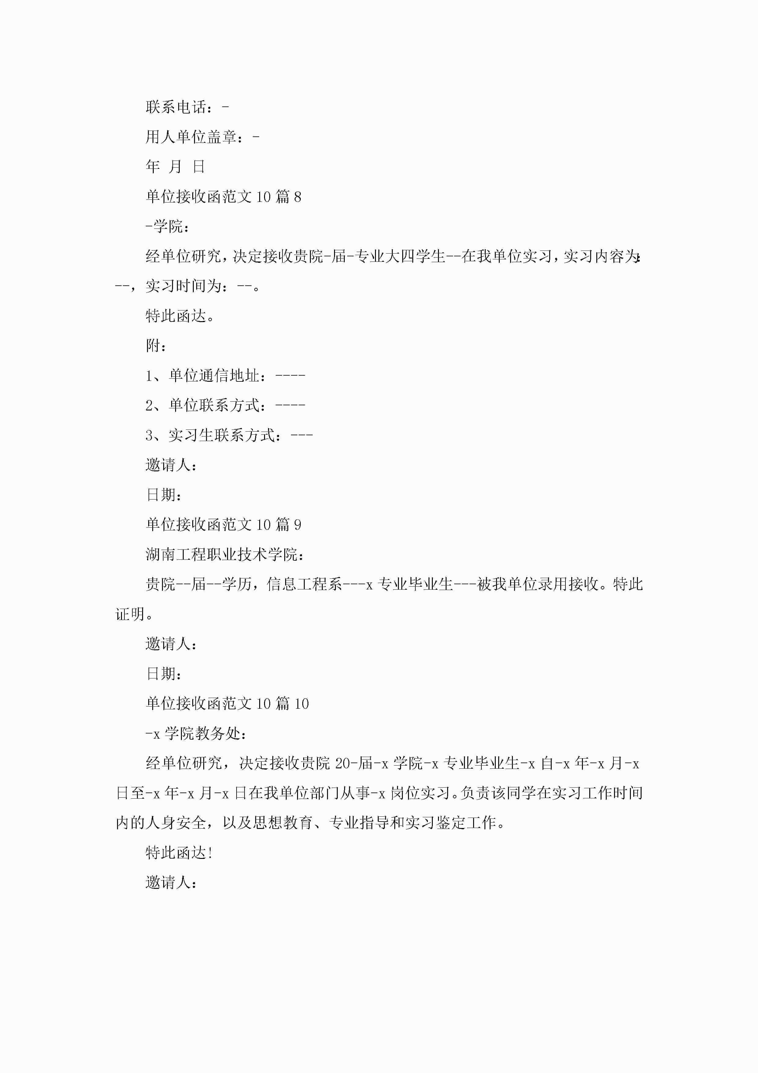 单位接收函范文大全10篇jugei3月22日 16:26发布关注196 单位接收函范文大全10篇此内容为付费资源,请付费后查看¥10.9 单篇文档限时特惠¥15个人会员开通企业会员开通立即下载无需登陆!可直接快捷下载单个模板付费资源© 版权声明THE ENDWord模板# 实用文档# 实用模板# 信函模板# 接收函 如有问题,可点击最底部“联系我们”联系客服 分享QQ空间微博QQ好友海报分享复制链接收藏