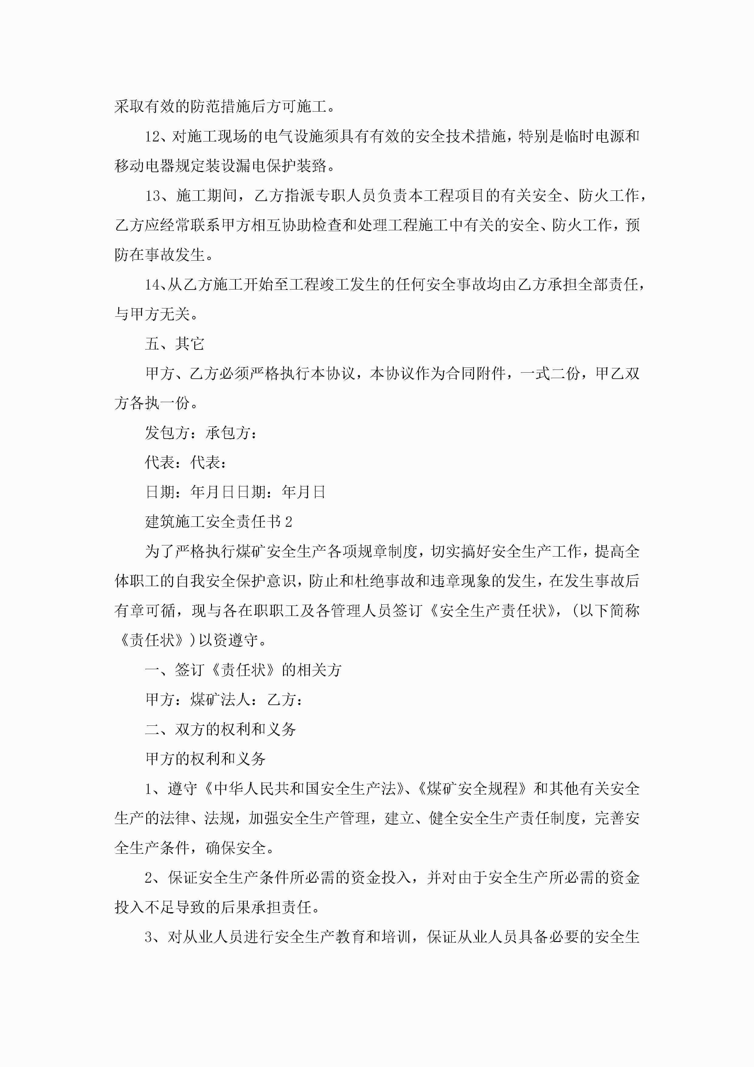 建筑施工安全责任书5篇jugei3月22日 16:26发布关注330 建筑施工安全责任书5篇此内容为付费资源,请付费后查看¥10.9 单篇文档限时特惠¥15个人会员开通企业会员开通立即下载无需登陆!可直接快捷下载单个模板付费资源© 版权声明THE ENDWord模板# 实用文档# 实用模板# 信函模板# 责任书 如有问题,可点击最底部“联系我们”联系客服 分享QQ空间微博QQ好友海报分享复制链接收藏