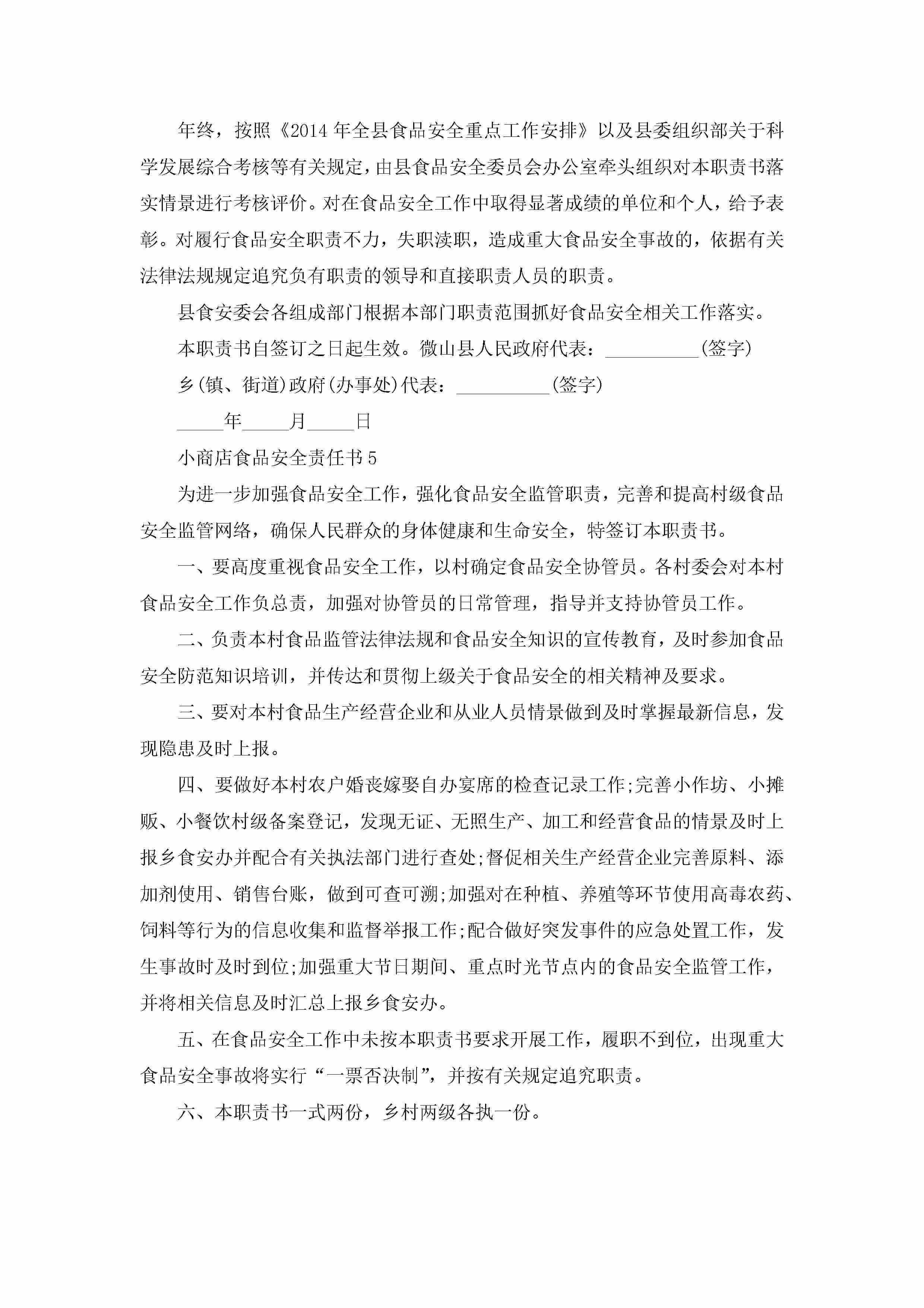 小商店食品安全责任书5篇jugei3月22日 16:26发布关注207 小商店食品安全责任书5篇此内容为付费资源,请付费后查看¥10.9 单篇文档限时特惠¥15个人会员开通企业会员开通立即下载无需登陆!可直接快捷下载单个模板付费资源© 版权声明THE ENDWord模板# 实用文档# 实用模板# 信函模板# 责任书 如有问题,可点击最底部“联系我们”联系客服 分享QQ空间微博QQ好友海报分享复制链接收藏
