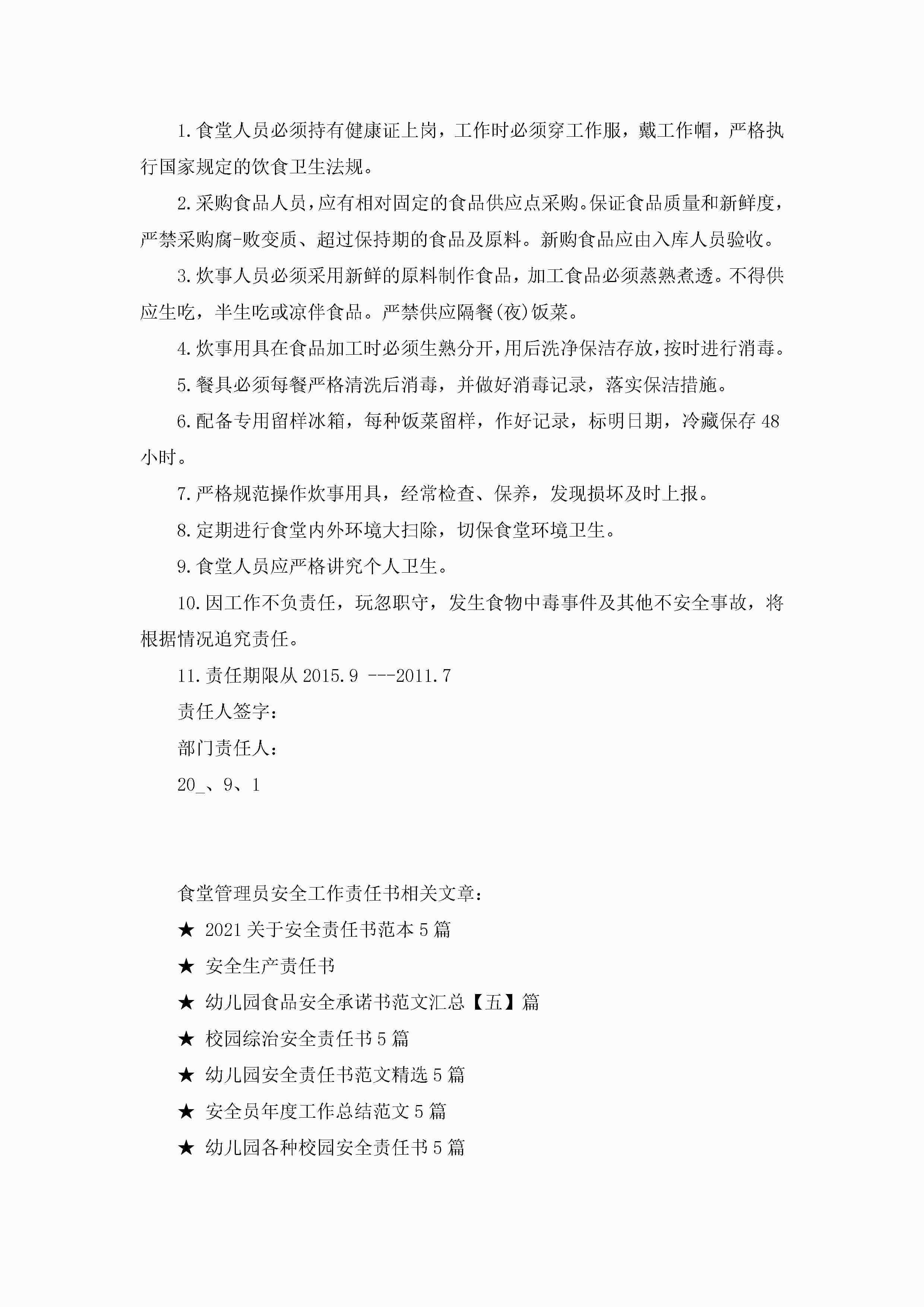 食堂管理员安全工作责任书5篇jugei3月22日 16:26发布关注199 食堂管理员安全工作责任书5篇此内容为付费资源,请付费后查看¥10.9 单篇文档限时特惠¥15个人会员开通企业会员开通立即下载无需登陆!可直接快捷下载单个模板付费资源© 版权声明THE ENDWord模板# 实用文档# 实用模板# 信函模板# 责任书 如有问题,可点击最底部“联系我们”联系客服 分享QQ空间微博QQ好友海报分享复制链接收藏