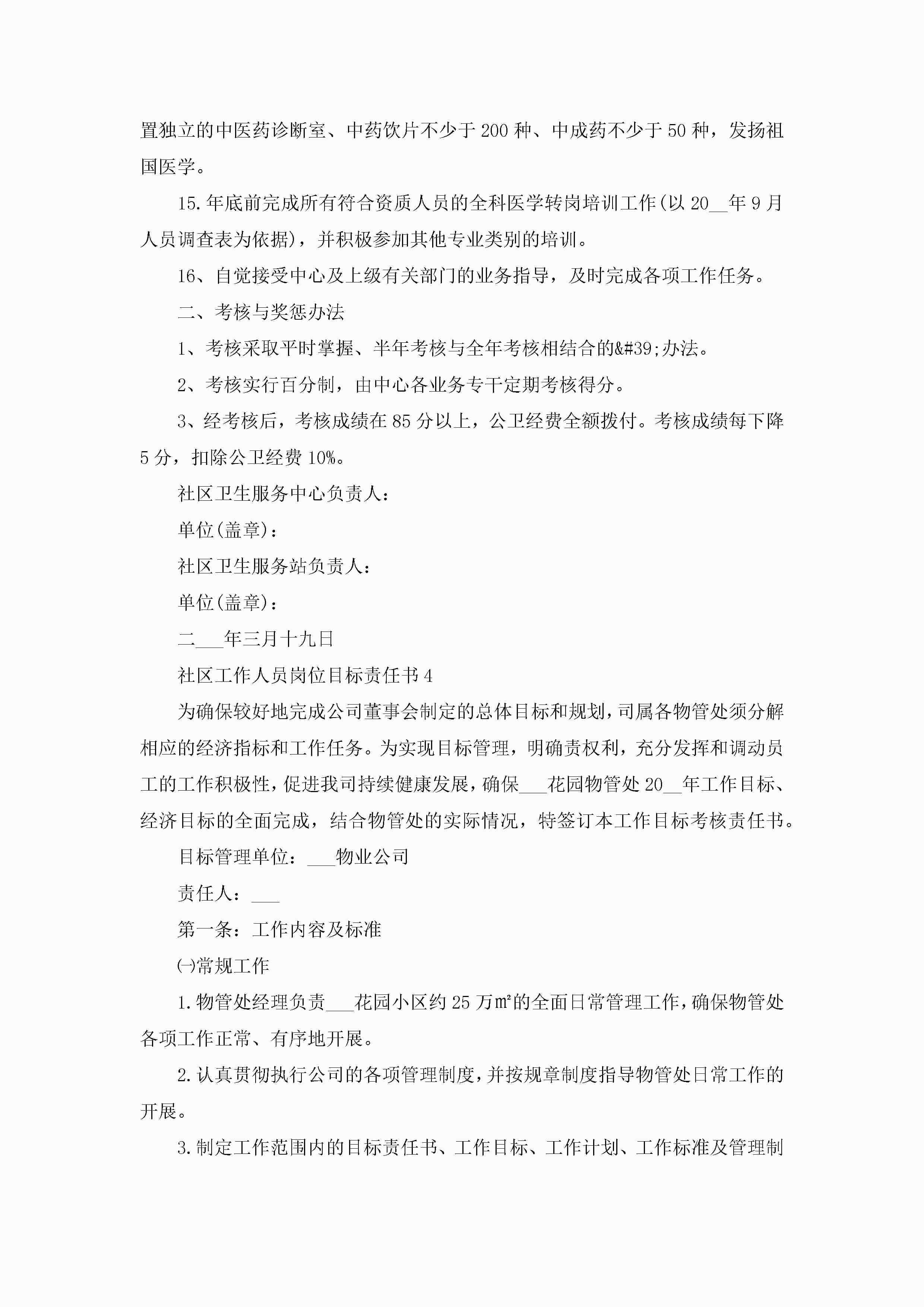 社区工作人员岗位目标责任书5篇jugei3月22日 16:26发布关注203 社区工作人员岗位目标责任书5篇此内容为付费资源,请付费后查看¥10.9 单篇文档限时特惠¥15个人会员开通企业会员开通立即下载无需登陆!可直接快捷下载单个模板付费资源© 版权声明THE ENDWord模板# 实用文档# 实用模板# 信函模板# 责任书 如有问题,可点击最底部“联系我们”联系客服 分享QQ空间微博QQ好友海报分享复制链接收藏