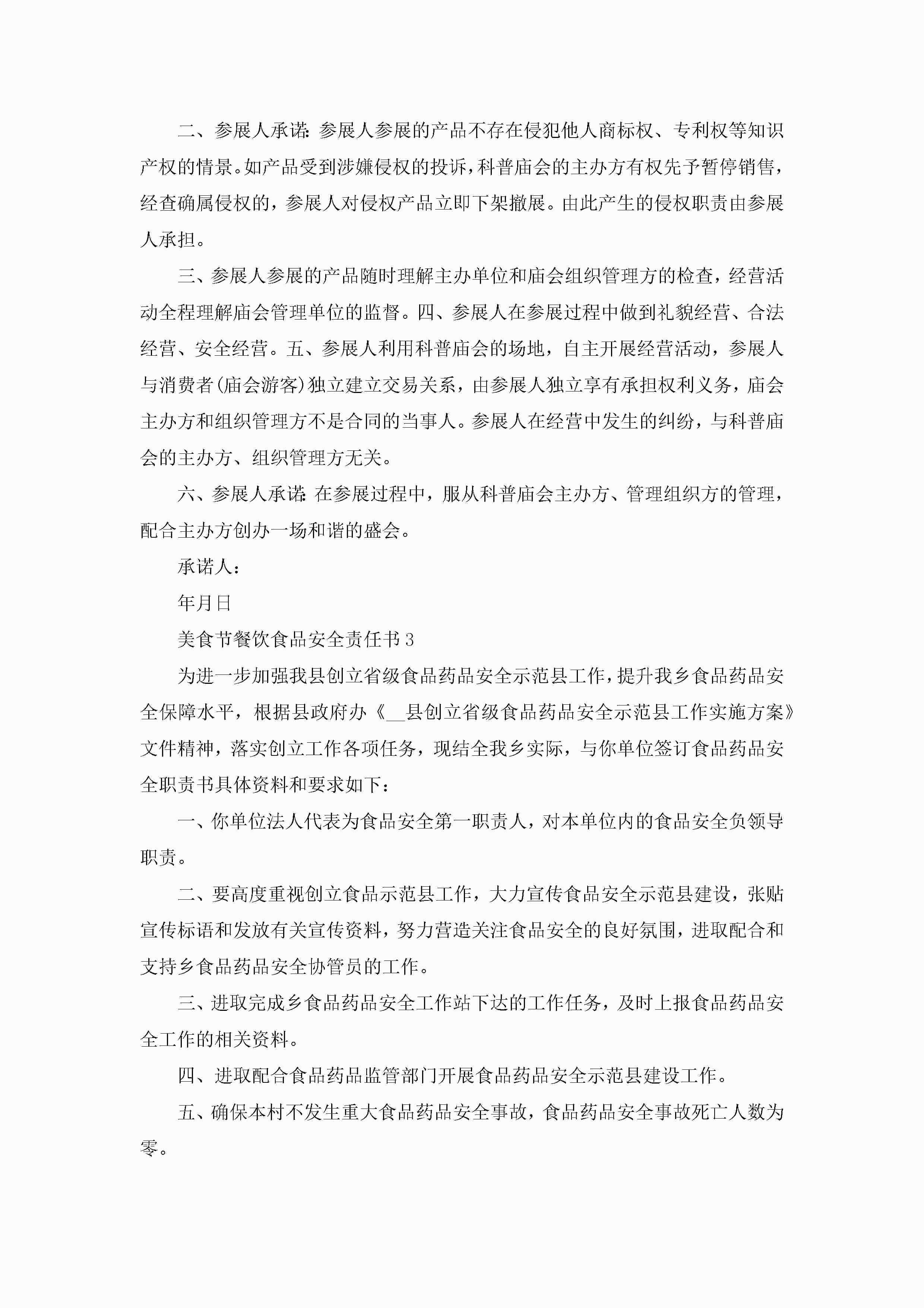 美食节餐饮食品安全责任书5篇jugei3月22日 16:26发布关注235 美食节餐饮食品安全责任书5篇此内容为付费资源,请付费后查看¥10.9 单篇文档限时特惠¥15个人会员开通企业会员开通立即下载无需登陆!可直接快捷下载单个模板付费资源© 版权声明THE ENDWord模板# 实用文档# 实用模板# 信函模板# 责任书 如有问题,可点击最底部“联系我们”联系客服 分享QQ空间微博QQ好友海报分享复制链接收藏