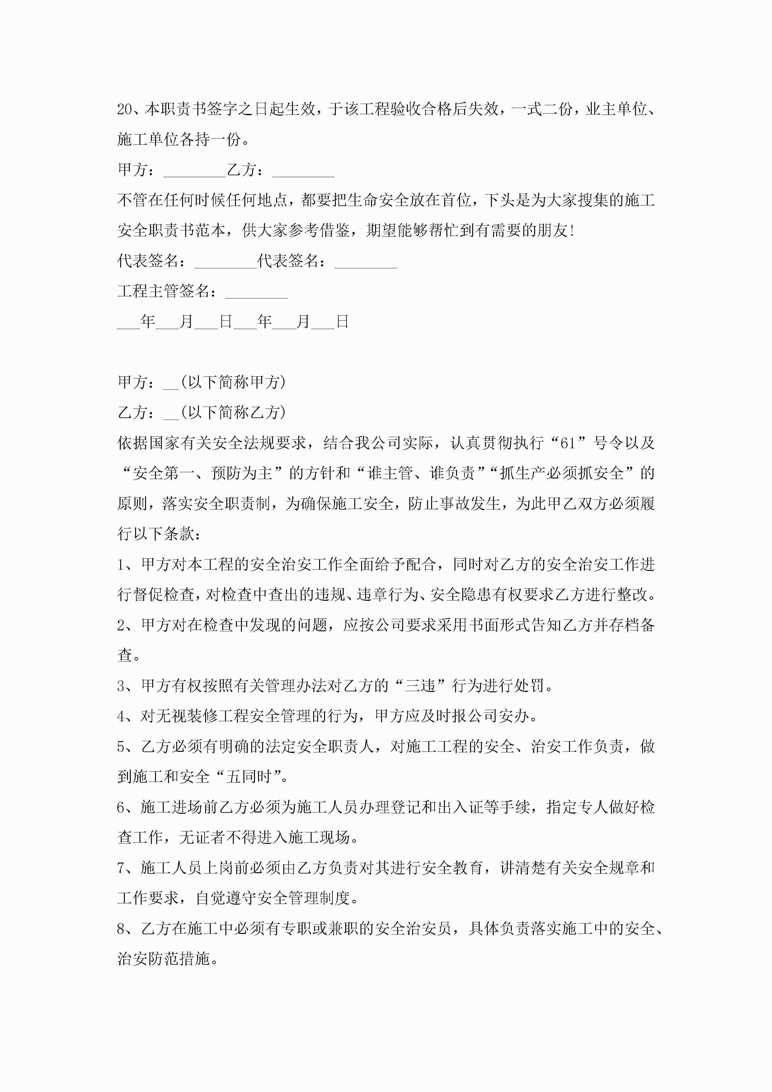 建筑施工安全管理责任书5篇jugei3月22日 16:26发布关注204 建筑施工安全管理责任书5篇此内容为付费资源,请付费后查看¥10.9 单篇文档限时特惠¥15个人会员开通企业会员开通立即下载无需登陆!可直接快捷下载单个模板付费资源© 版权声明THE ENDWord模板# 实用文档# 实用模板# 信函模板# 责任书 如有问题,可点击最底部“联系我们”联系客服 分享QQ空间微博QQ好友海报分享复制链接收藏