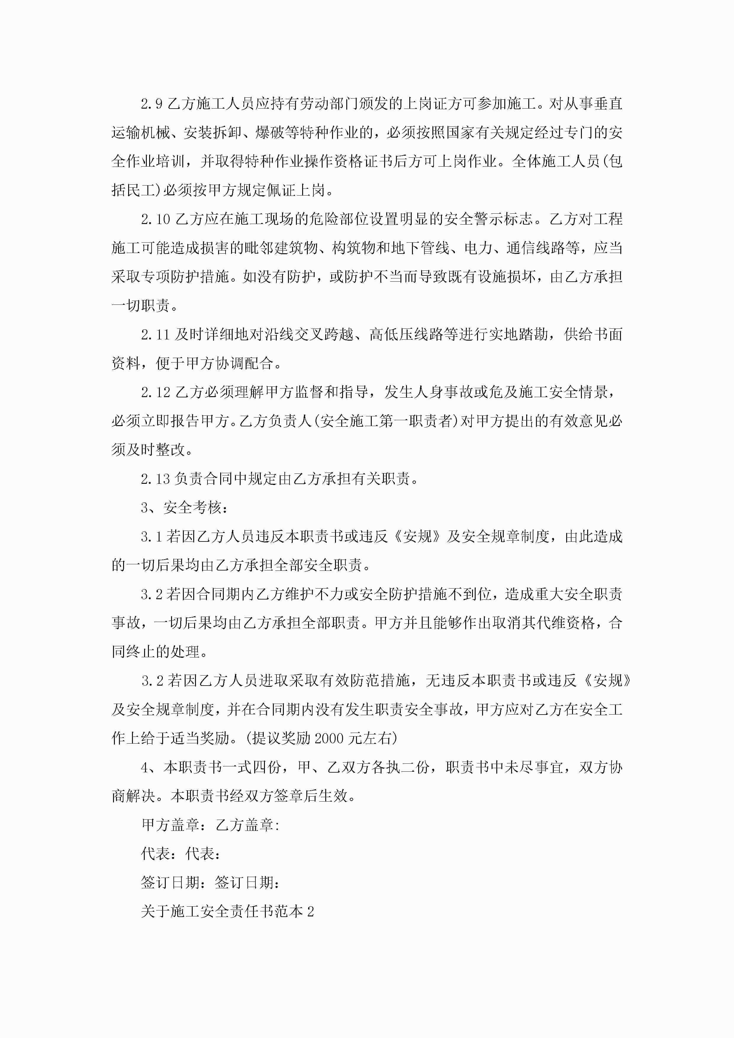 关于施工安全责任书范本5篇jugei3月22日 16:26发布关注299 关于施工安全责任书范本5篇此内容为付费资源,请付费后查看¥10.9 单篇文档限时特惠¥15个人会员开通企业会员开通立即下载无需登陆!可直接快捷下载单个模板付费资源© 版权声明THE ENDWord模板# 实用文档# 实用模板# 信函模板# 责任书 如有问题,可点击最底部“联系我们”联系客服 分享QQ空间微博QQ好友海报分享复制链接收藏