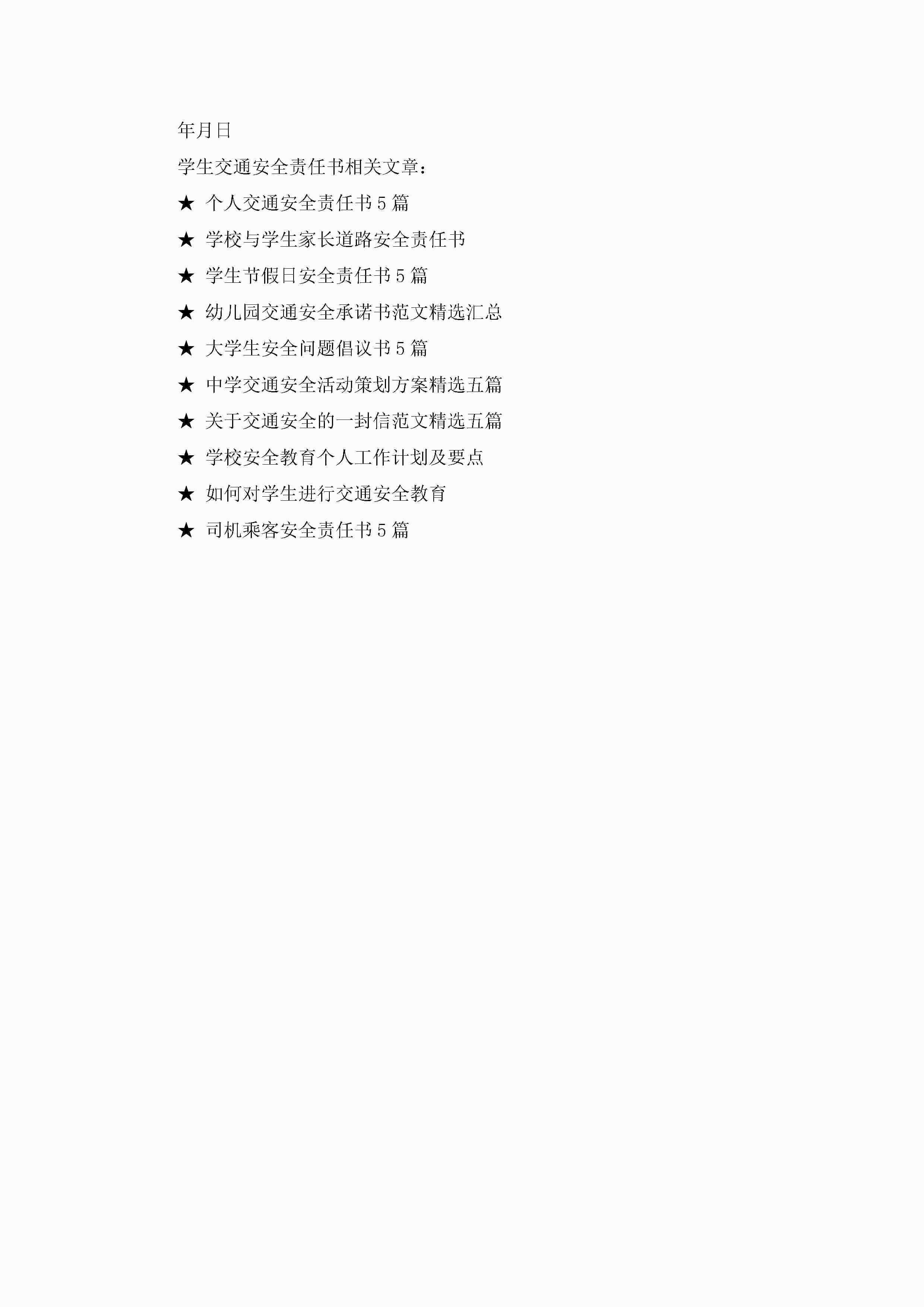 学生交通安全责任书5篇jugei3月22日 16:26发布关注247 学生交通安全责任书5篇此内容为付费资源,请付费后查看¥10.9 单篇文档限时特惠¥15个人会员开通企业会员开通立即下载无需登陆!可直接快捷下载单个模板付费资源© 版权声明THE ENDWord模板# 实用文档# 实用模板# 信函模板# 责任书 如有问题,可点击最底部“联系我们”联系客服 分享QQ空间微博QQ好友海报分享复制链接收藏