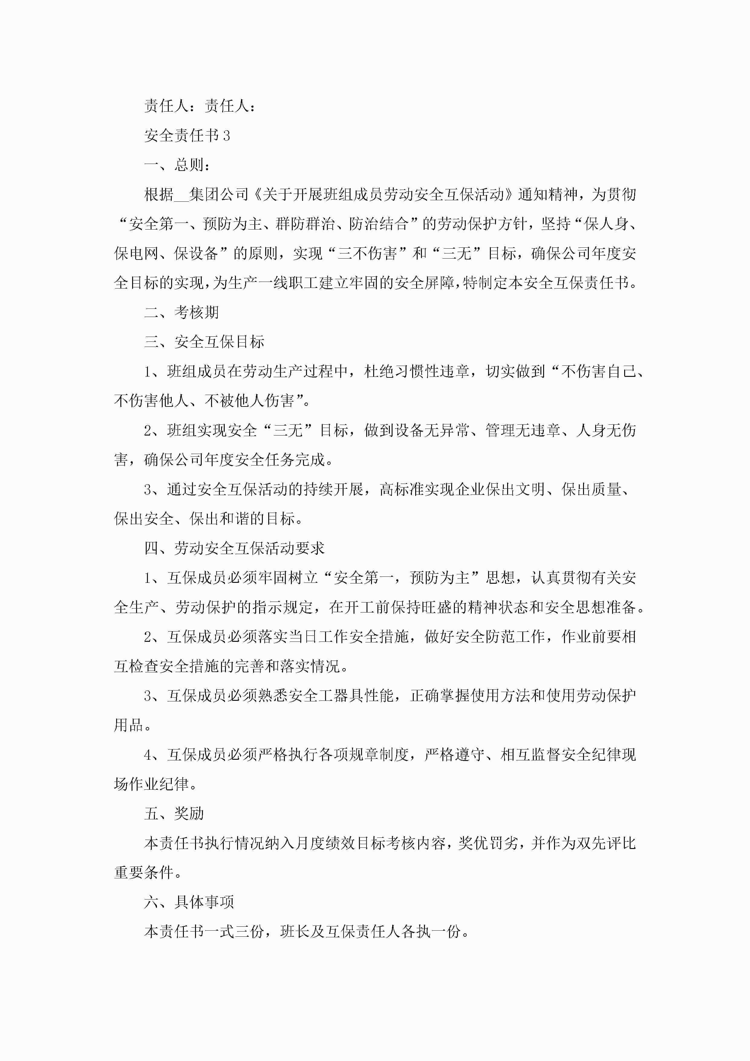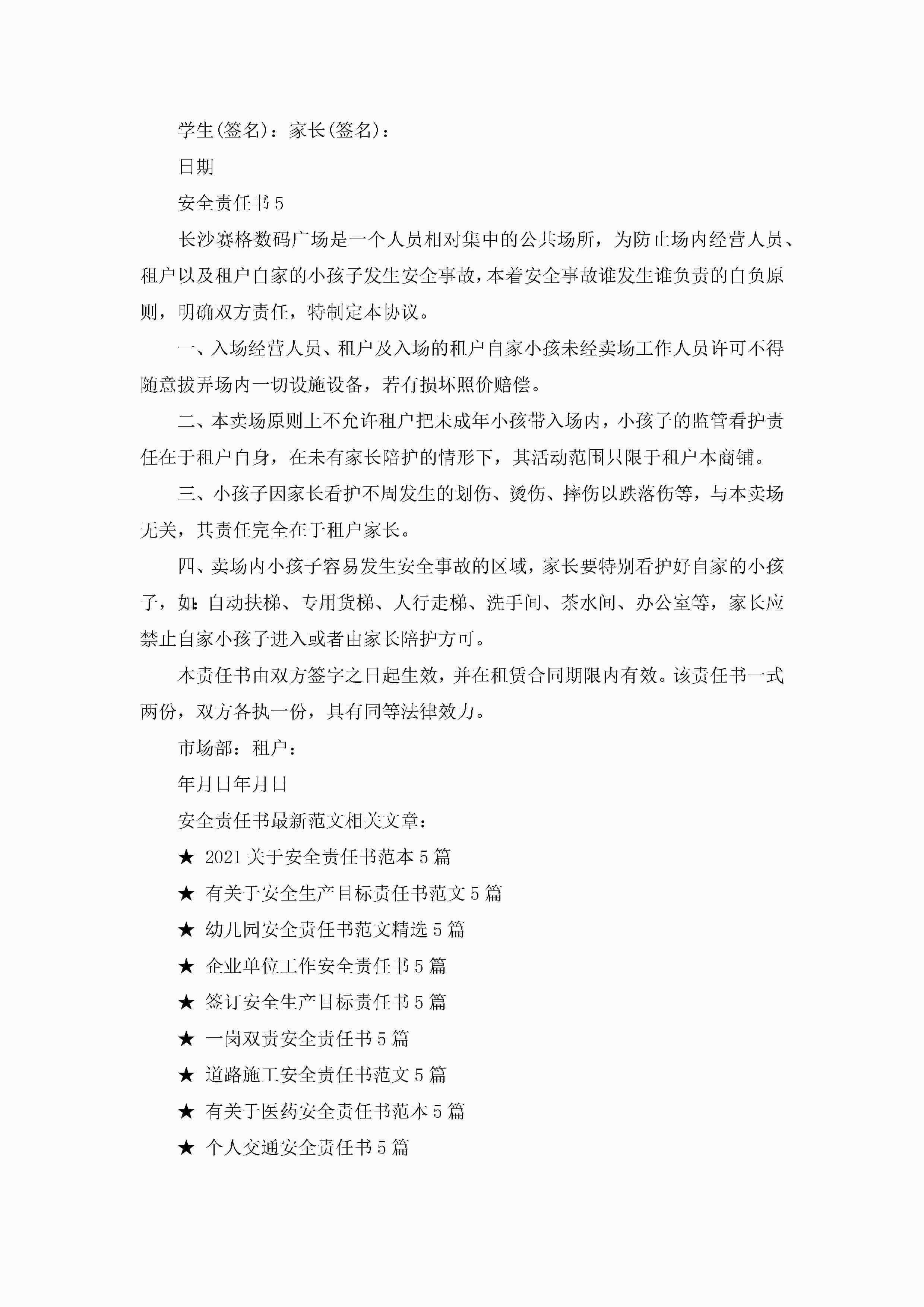 安全责任书最新范文5篇jugei3月22日 16:26发布关注292 安全责任书最新范文5篇此内容为付费资源,请付费后查看¥10.9 单篇文档限时特惠¥15个人会员开通企业会员开通立即下载无需登陆!可直接快捷下载单个模板付费资源© 版权声明THE ENDWord模板# 实用文档# 实用模板# 信函模板# 责任书 如有问题,可点击最底部“联系我们”联系客服 分享QQ空间微博QQ好友海报分享复制链接收藏