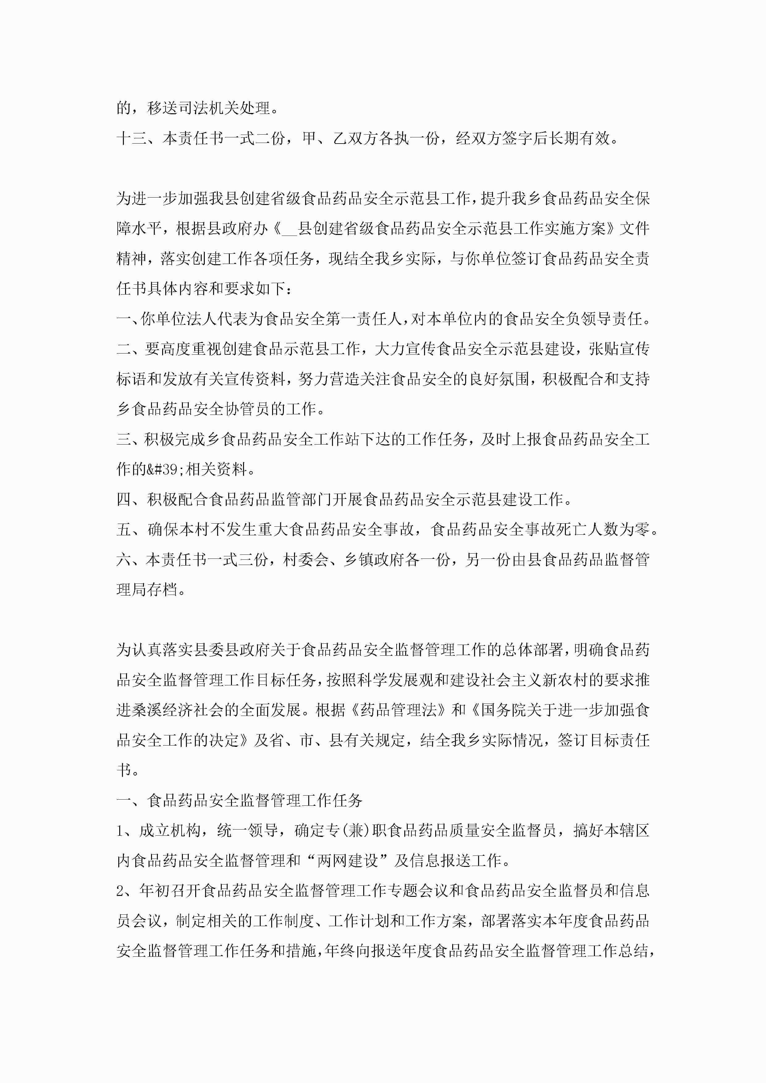 食品安全责任书范本5篇jugei3月22日 16:26发布关注212 食品安全责任书范本5篇此内容为付费资源,请付费后查看¥10.9 单篇文档限时特惠¥15个人会员开通企业会员开通立即下载无需登陆!可直接快捷下载单个模板付费资源© 版权声明THE ENDWord模板# 实用文档# 实用模板# 信函模板# 责任书 如有问题,可点击最底部“联系我们”联系客服 分享QQ空间微博QQ好友海报分享复制链接收藏
