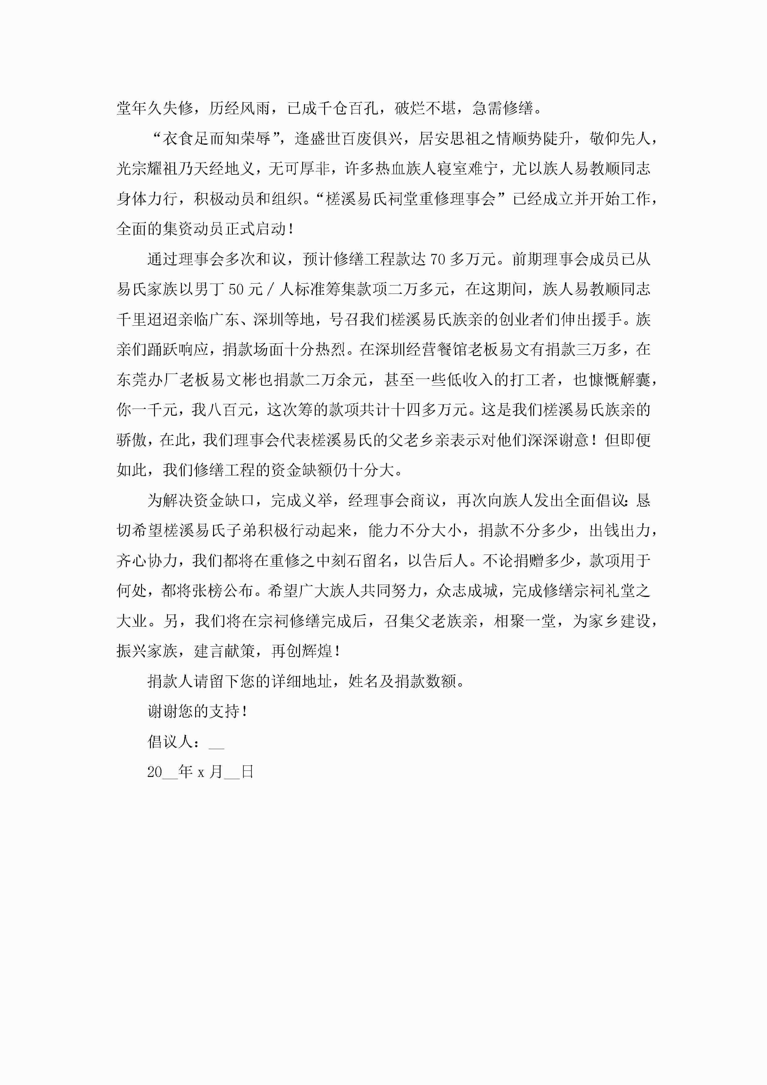 祠堂修建募捐倡议书范本【通用8篇】jugei3月22日 16:27发布关注386 祠堂修建募捐倡议书范本【通用8篇】此内容为付费资源,请付费后查看¥10.9 单篇文档限时特惠¥15个人会员开通企业会员开通立即下载无需登陆!可直接快捷下载单个模板付费资源© 版权声明THE ENDWord模板# 实用文档# 实用模板# 信函模板# 倡议书 如有问题,可点击最底部“联系我们”联系客服 分享QQ空间微博QQ好友海报分享复制链接收藏
