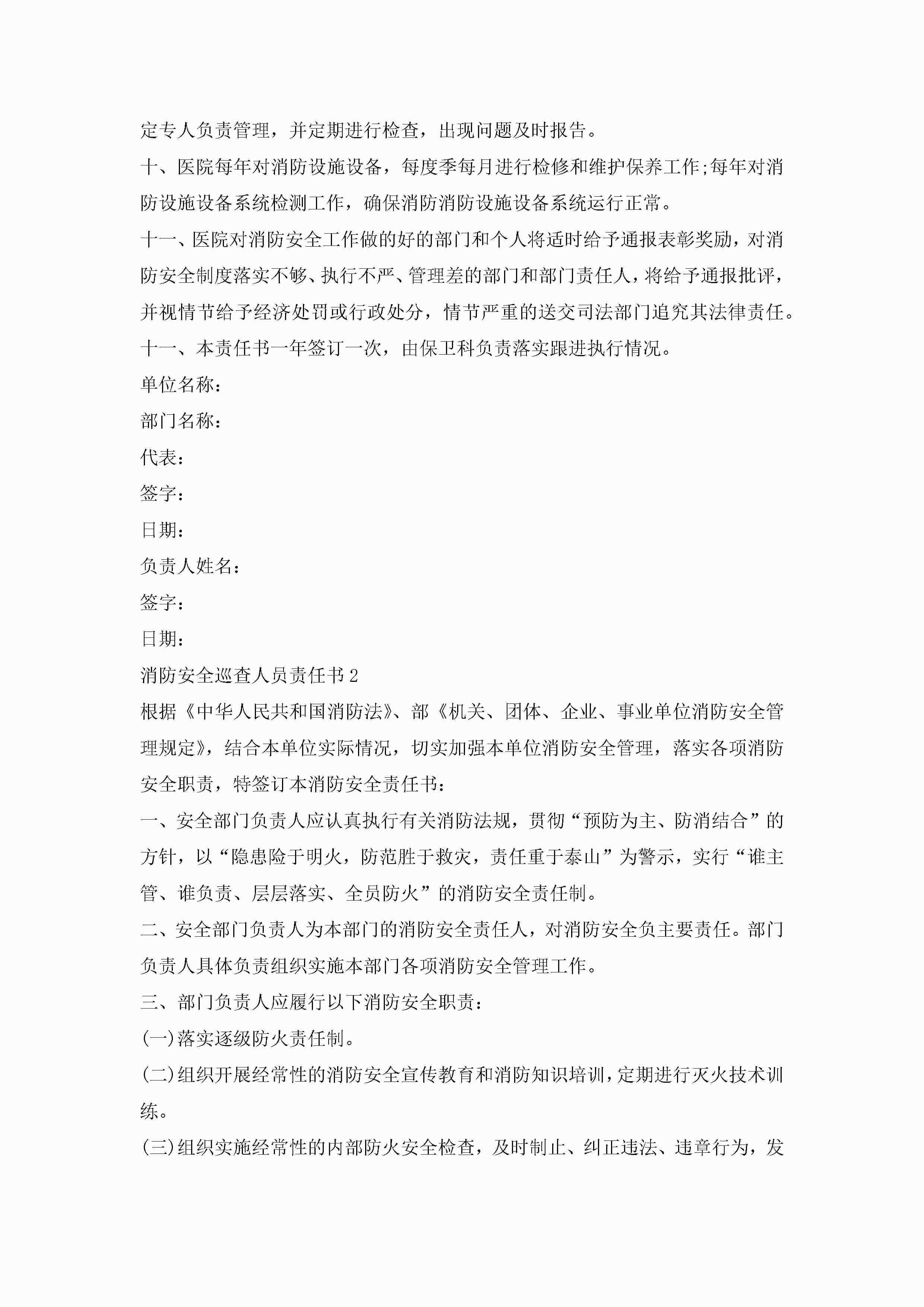 关于消防安全巡查人员责任书5篇jugei3月22日 16:27发布关注235 关于消防安全巡查人员责任书5篇此内容为付费资源,请付费后查看¥10.9 单篇文档限时特惠¥15个人会员开通企业会员开通立即下载无需登陆!可直接快捷下载单个模板付费资源© 版权声明THE ENDWord模板# 实用文档# 实用模板# 信函模板# 责任书 如有问题,可点击最底部“联系我们”联系客服 分享QQ空间微博QQ好友海报分享复制链接收藏