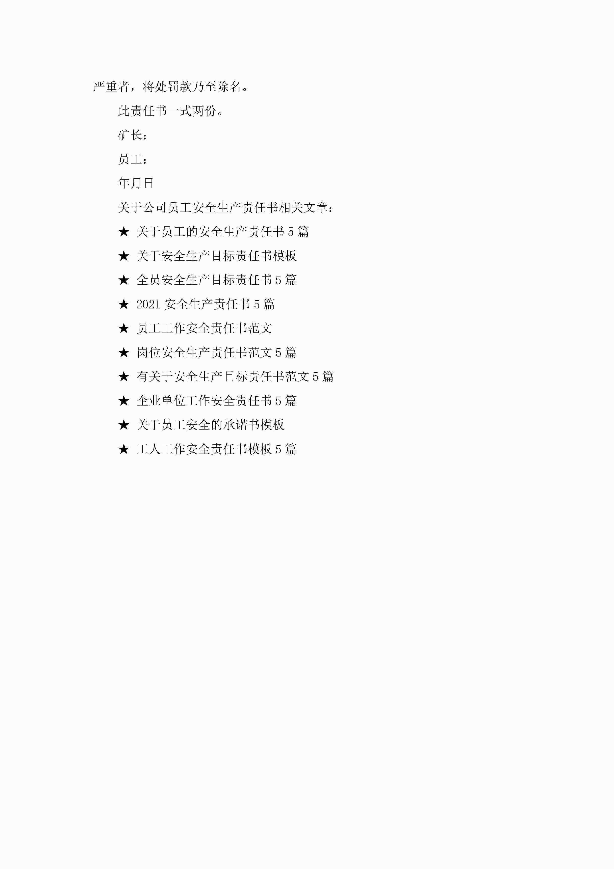 关于公司员工安全生产责任书5篇jugei3月22日 16:27发布关注239 关于公司员工安全生产责任书5篇此内容为付费资源,请付费后查看¥10.9 单篇文档限时特惠¥15个人会员开通企业会员开通立即下载无需登陆!可直接快捷下载单个模板付费资源© 版权声明THE ENDWord模板# 实用文档# 实用模板# 信函模板# 责任书 如有问题,可点击最底部“联系我们”联系客服 分享QQ空间微博QQ好友海报分享复制链接收藏