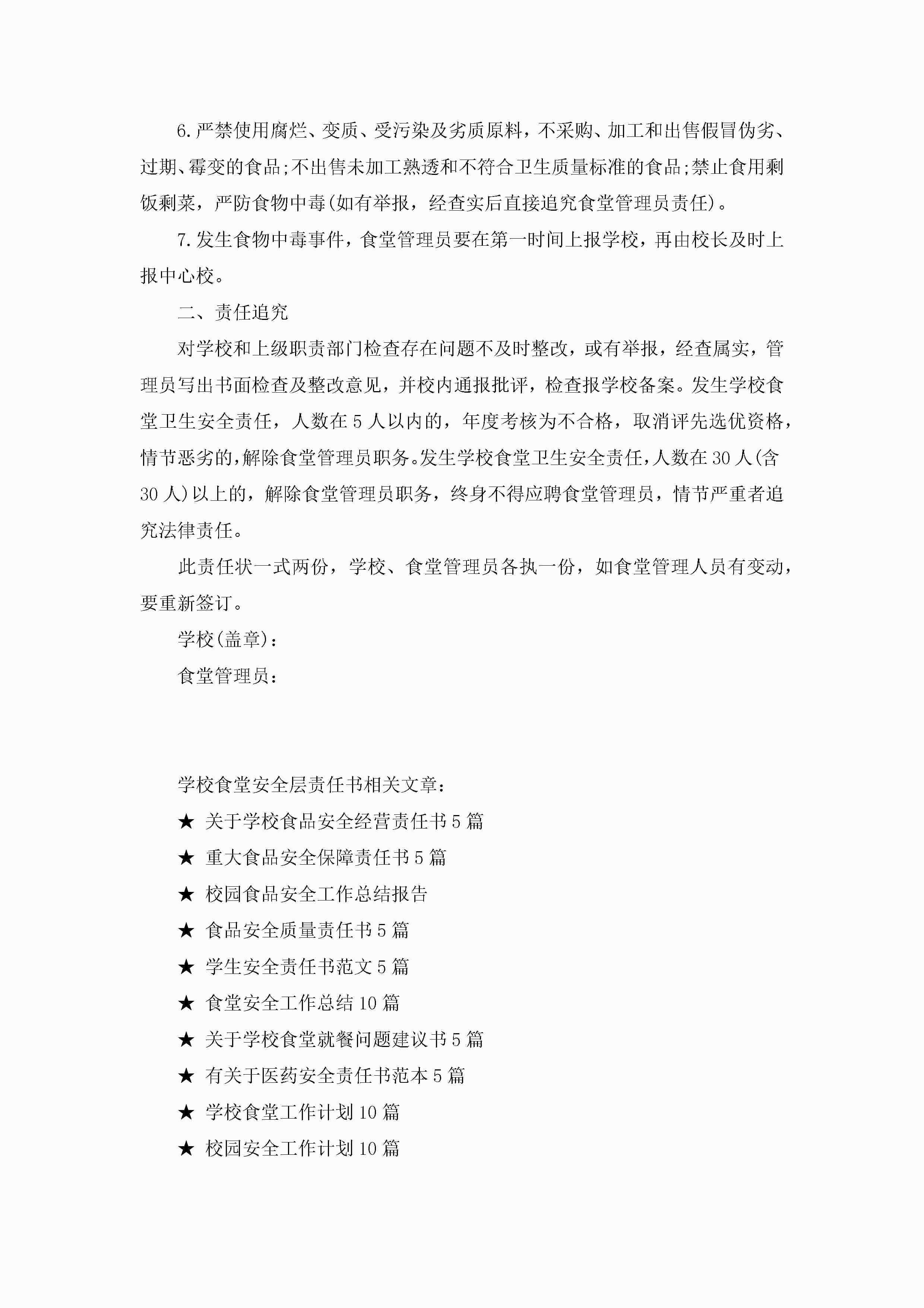 最新学校食堂安全层责任书5篇jugei3月22日 16:27发布关注197 最新学校食堂安全层责任书5篇此内容为付费资源,请付费后查看¥10.9 单篇文档限时特惠¥15个人会员开通企业会员开通立即下载无需登陆!可直接快捷下载单个模板付费资源© 版权声明THE ENDWord模板# 实用文档# 实用模板# 信函模板# 责任书 如有问题,可点击最底部“联系我们”联系客服 分享QQ空间微博QQ好友海报分享复制链接收藏