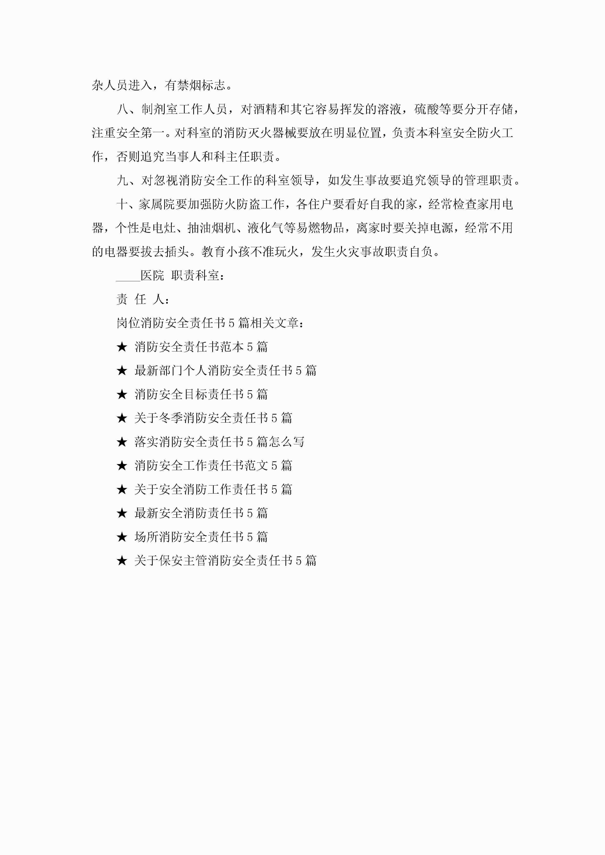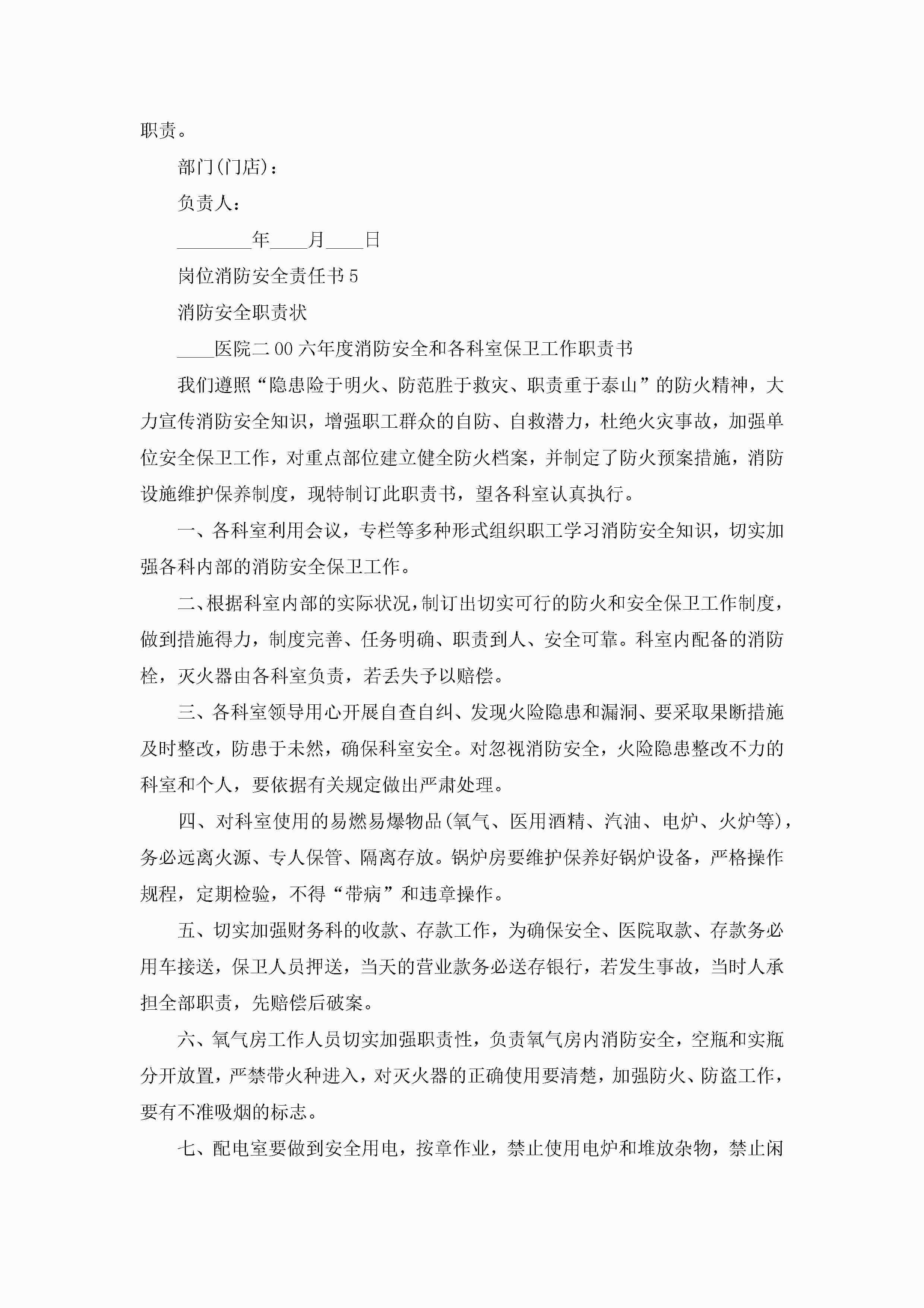 关于岗位消防安全生产责任书5篇jugei3月22日 16:27发布关注249 关于岗位消防安全生产责任书5篇此内容为付费资源,请付费后查看¥10.9 单篇文档限时特惠¥15个人会员开通企业会员开通立即下载无需登陆!可直接快捷下载单个模板付费资源© 版权声明THE ENDWord模板# 实用文档# 实用模板# 信函模板# 责任书 如有问题,可点击最底部“联系我们”联系客服 分享QQ空间微博QQ好友海报分享复制链接收藏