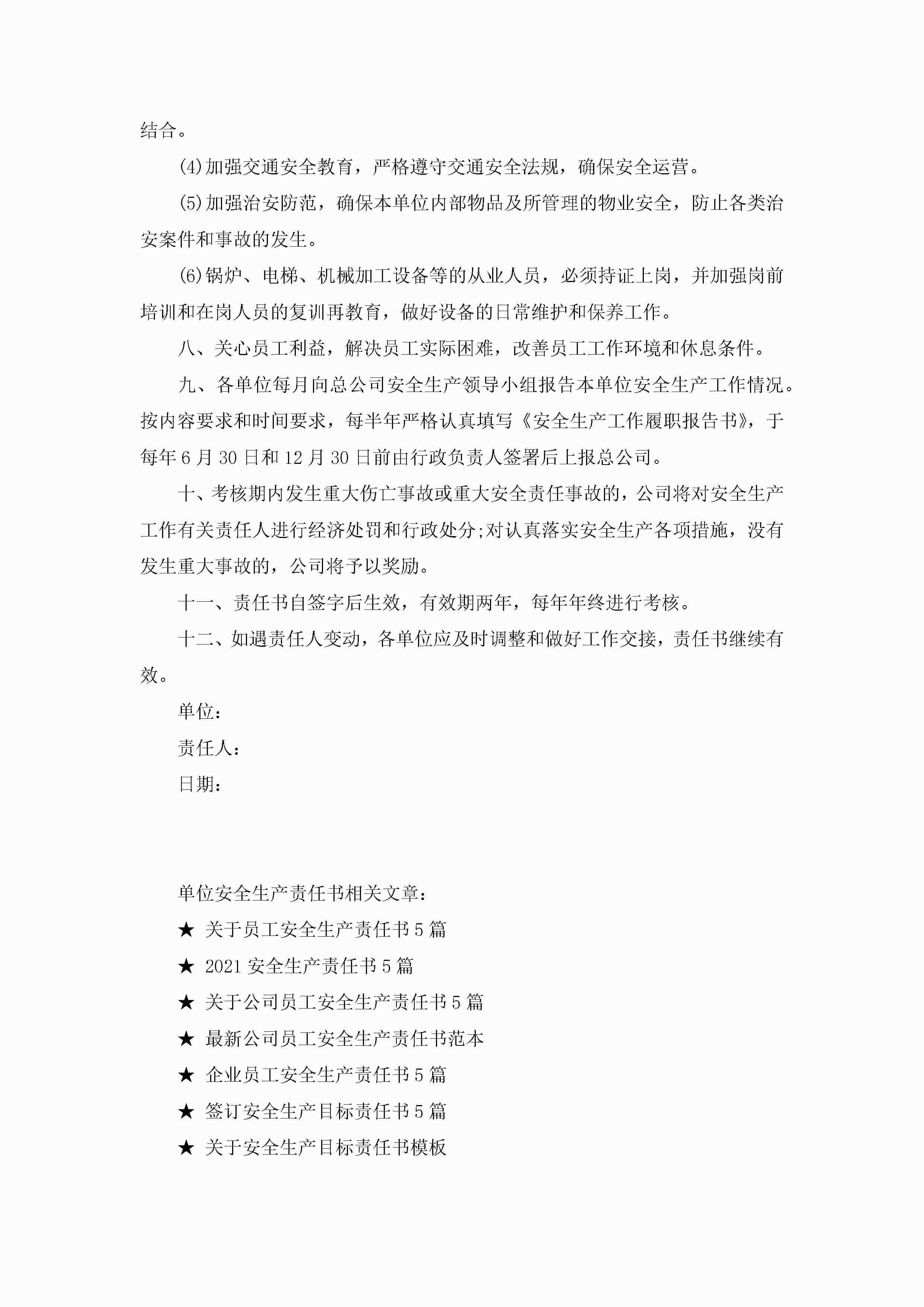 单位安全生产责任书5篇jugei3月22日 16:27发布关注196 单位安全生产责任书5篇此内容为付费资源,请付费后查看¥10.9 单篇文档限时特惠¥15个人会员开通企业会员开通立即下载无需登陆!可直接快捷下载单个模板付费资源© 版权声明THE ENDWord模板# 实用文档# 实用模板# 信函模板# 责任书 如有问题,可点击最底部“联系我们”联系客服 分享QQ空间微博QQ好友海报分享复制链接收藏