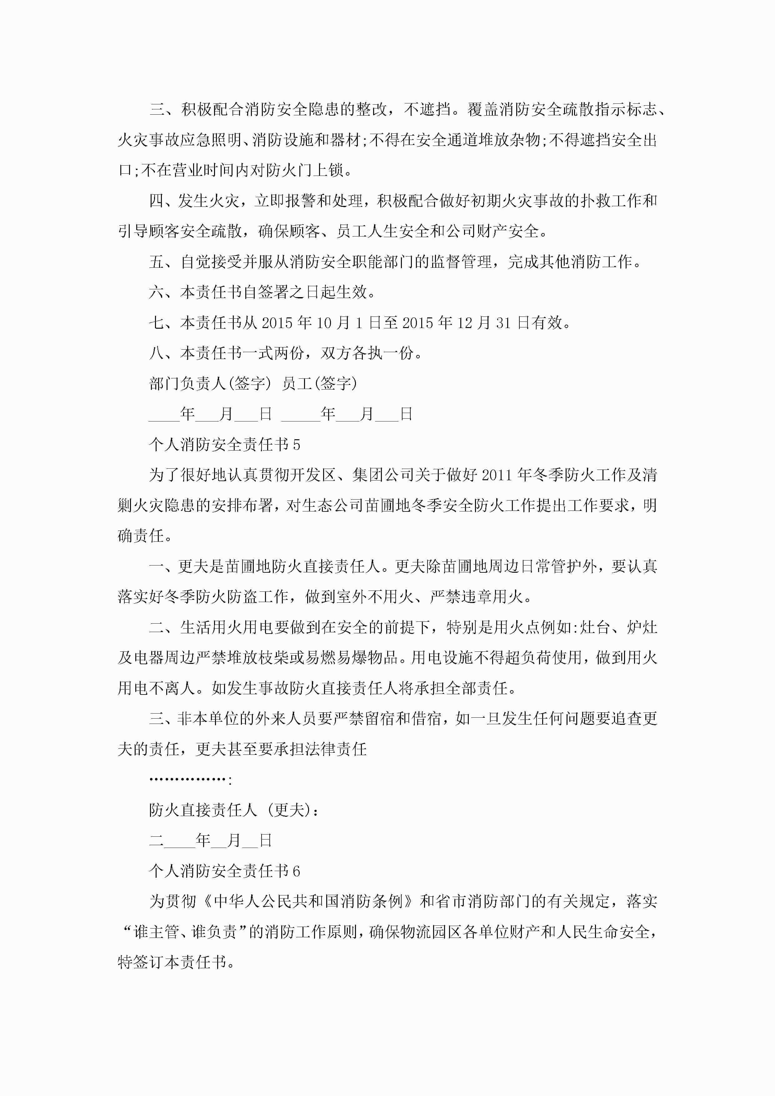 关于个人消防安全责任书10篇jugei3月22日 16:27发布关注201 关于个人消防安全责任书10篇此内容为付费资源,请付费后查看¥10.9 单篇文档限时特惠¥15个人会员开通企业会员开通立即下载无需登陆!可直接快捷下载单个模板付费资源© 版权声明THE ENDWord模板# 实用文档# 实用模板# 信函模板# 责任书 如有问题,可点击最底部“联系我们”联系客服 分享QQ空间微博QQ好友海报分享复制链接收藏
