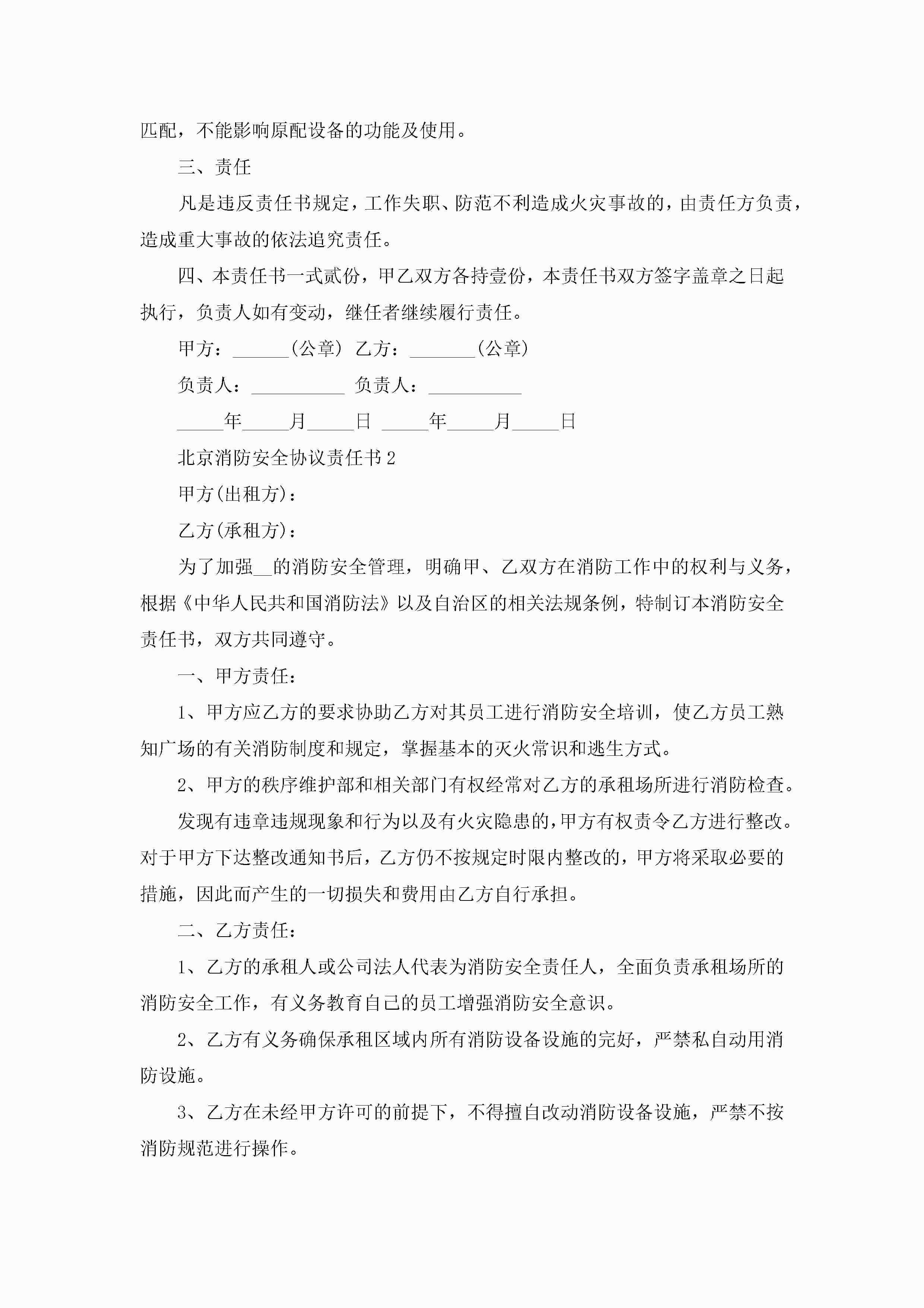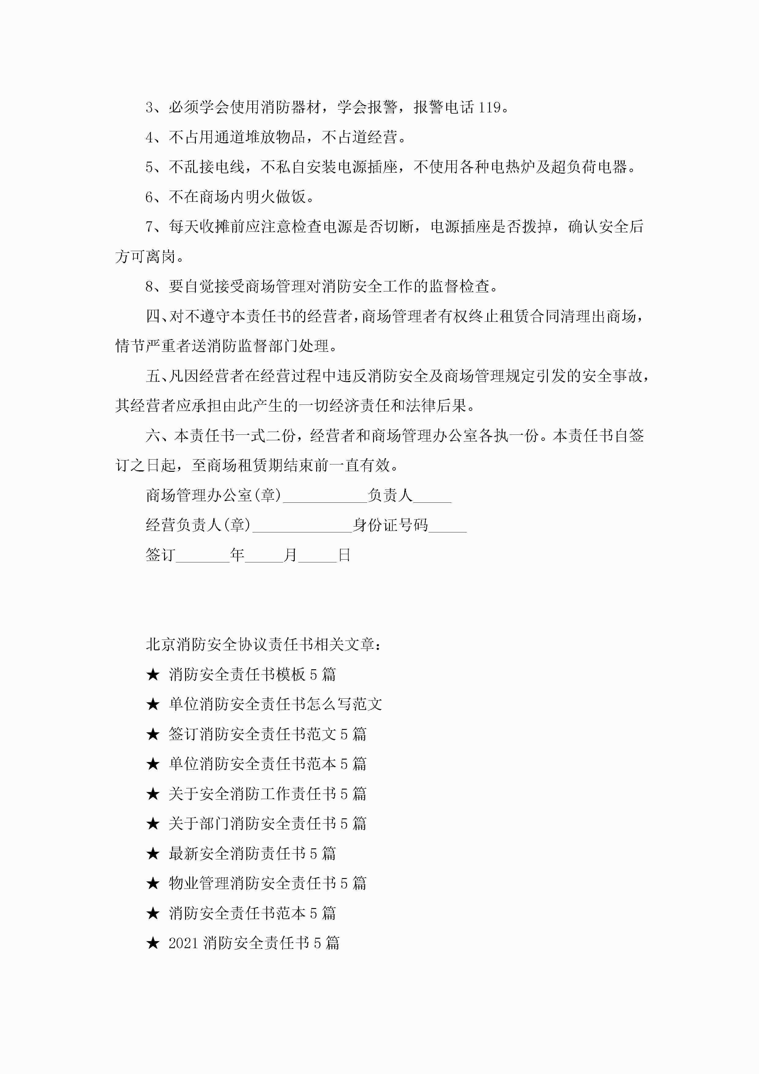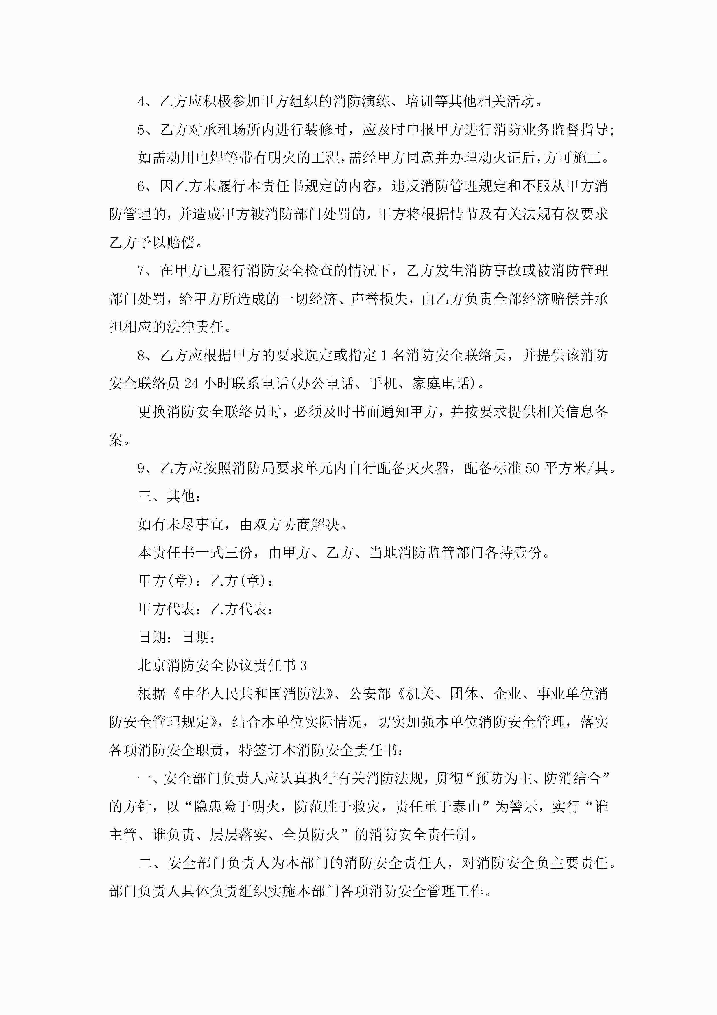 北京消防安全协议责任书5篇jugei3月22日 16:27发布关注240 北京消防安全协议责任书5篇此内容为付费资源,请付费后查看¥10.9 单篇文档限时特惠¥15个人会员开通企业会员开通立即下载无需登陆!可直接快捷下载单个模板付费资源© 版权声明THE ENDWord模板# 实用文档# 实用模板# 信函模板# 责任书 如有问题,可点击最底部“联系我们”联系客服 分享QQ空间微博QQ好友海报分享复制链接收藏