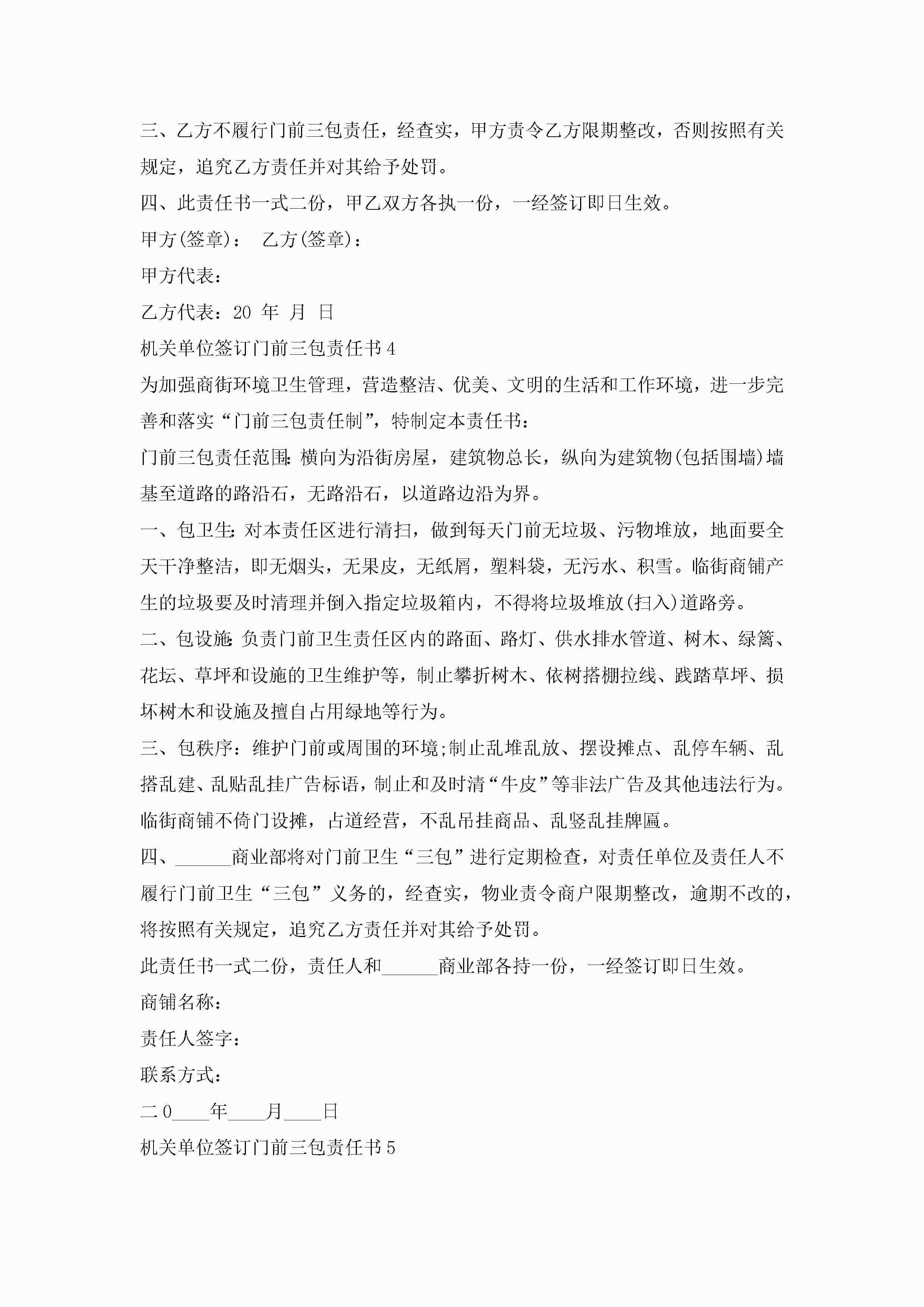 关于机关单位签订门前三包责任书6篇jugei3月22日 16:27发布关注197 关于机关单位签订门前三包责任书6篇此内容为付费资源,请付费后查看¥10.9 单篇文档限时特惠¥15个人会员开通企业会员开通立即下载无需登陆!可直接快捷下载单个模板付费资源© 版权声明THE ENDWord模板# 实用文档# 实用模板# 信函模板# 责任书 如有问题,可点击最底部“联系我们”联系客服 分享QQ空间微博QQ好友海报分享复制链接收藏