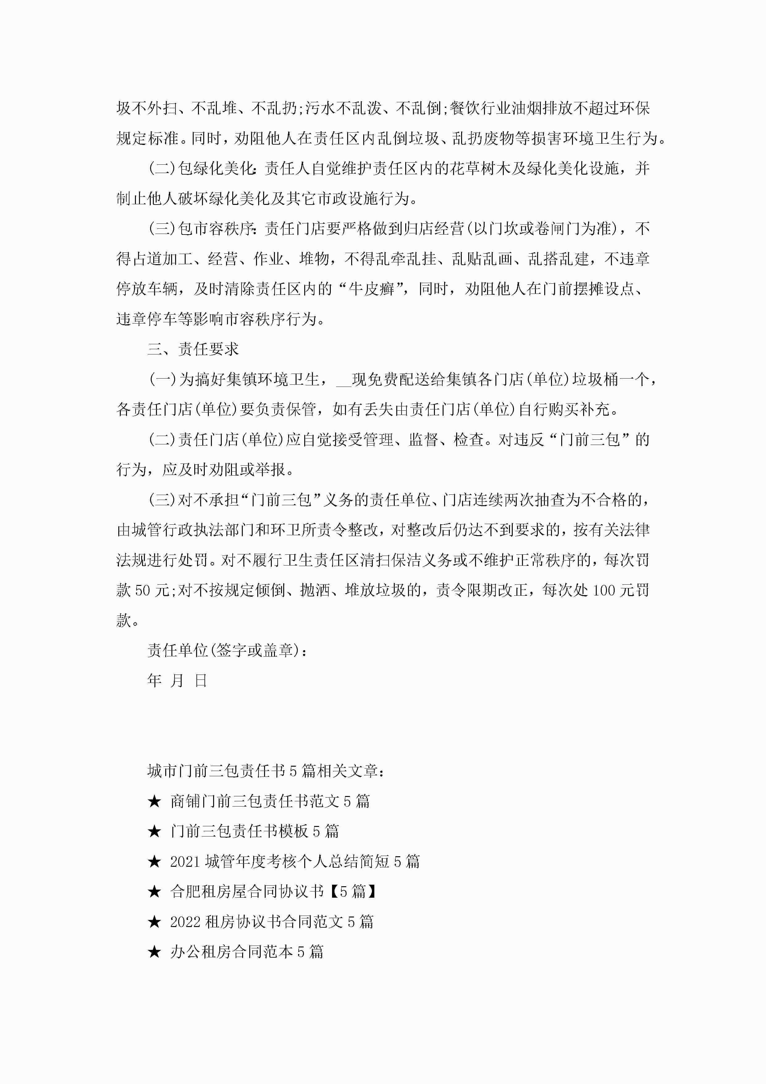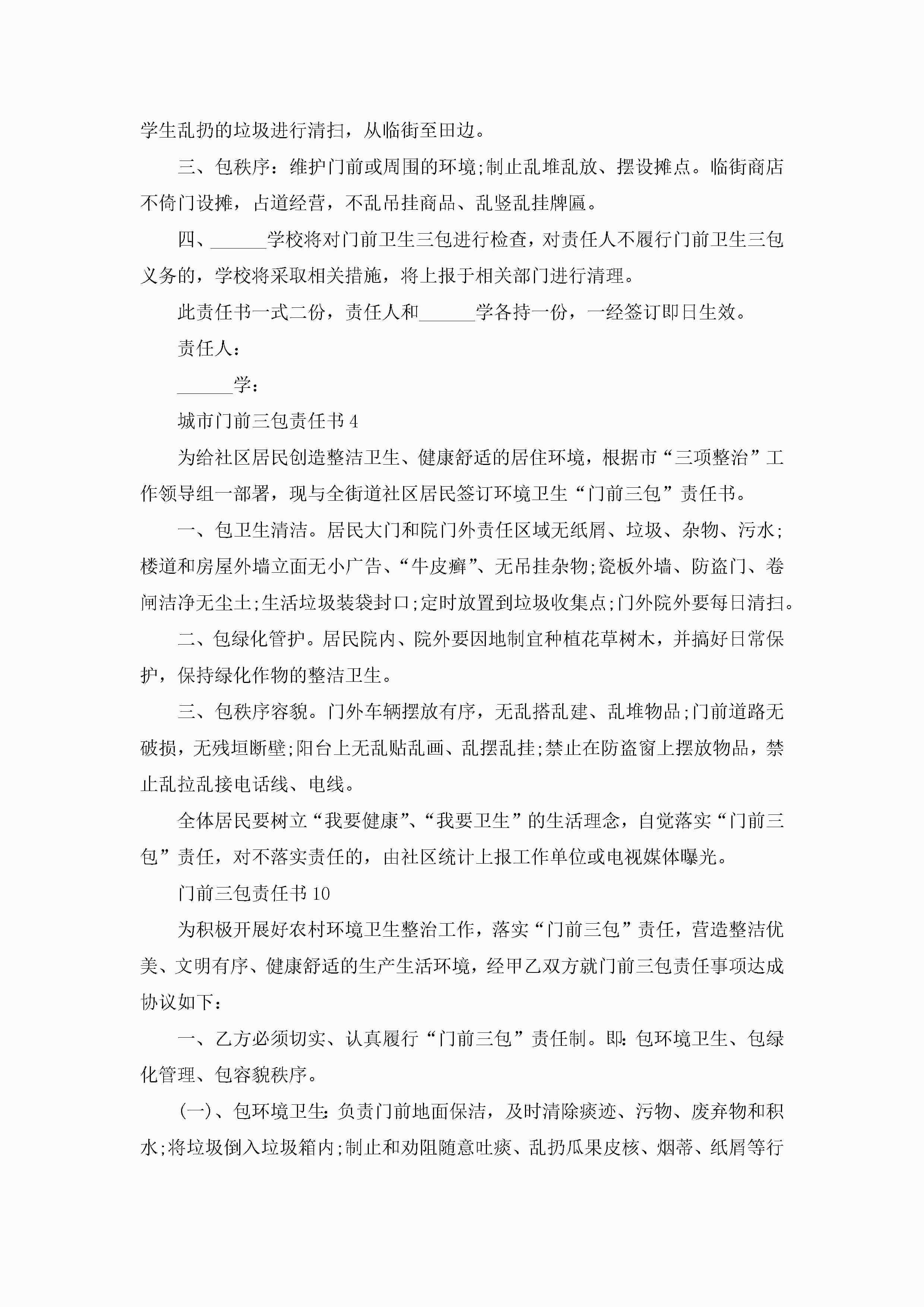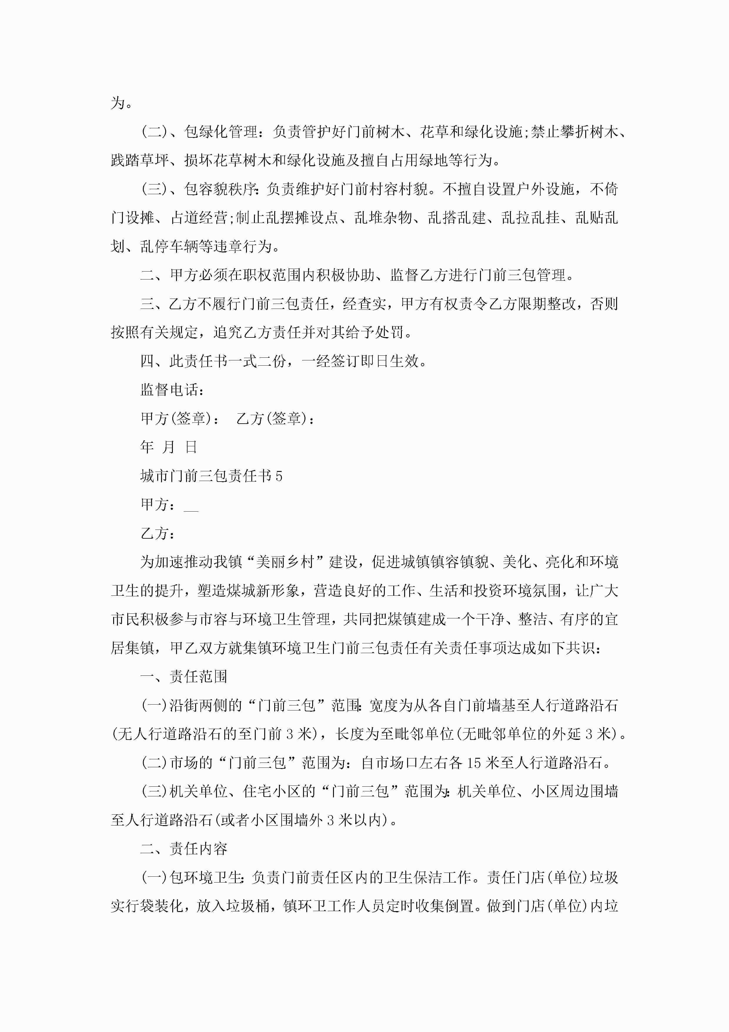最新城市门前三包责任书5篇jugei3月22日 16:27发布关注220 最新城市门前三包责任书5篇此内容为付费资源,请付费后查看¥10.9 单篇文档限时特惠¥15个人会员开通企业会员开通立即下载无需登陆!可直接快捷下载单个模板付费资源© 版权声明THE ENDWord模板# 实用文档# 实用模板# 信函模板# 责任书 如有问题,可点击最底部“联系我们”联系客服 分享QQ空间微博QQ好友海报分享复制链接收藏