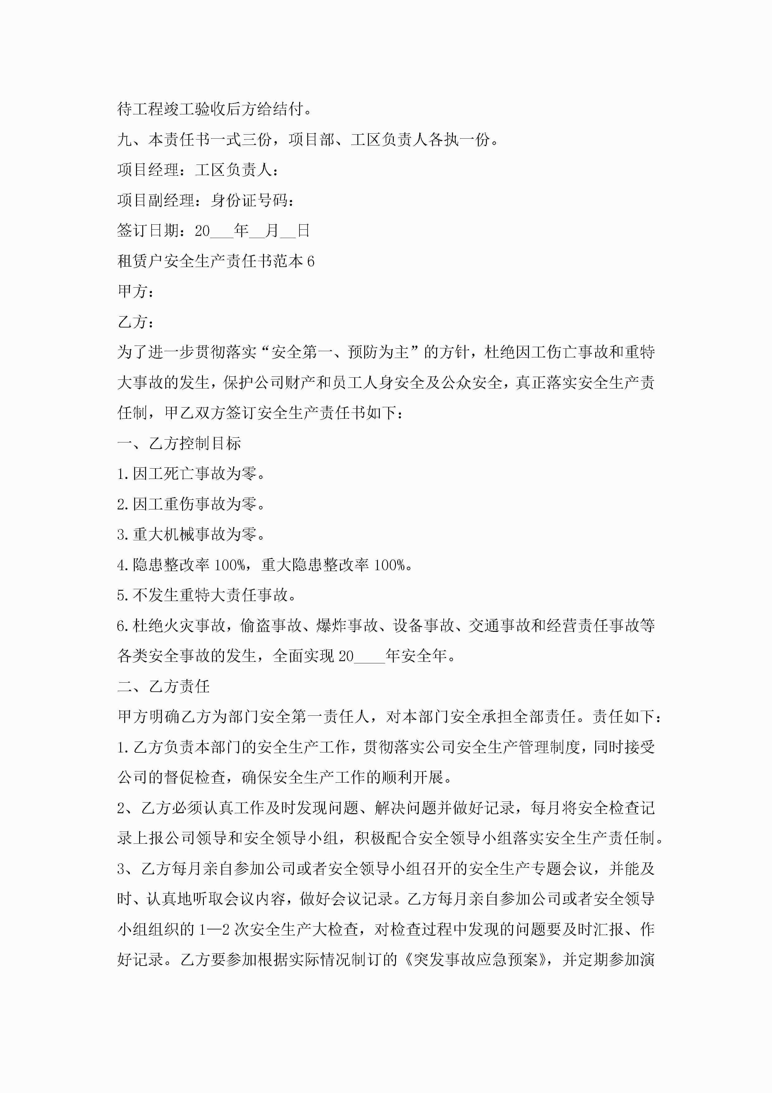 关于租赁户安全生产责任书范本6篇jugei3月22日 16:27发布关注240 关于租赁户安全生产责任书范本6篇此内容为付费资源,请付费后查看¥10.9 单篇文档限时特惠¥15个人会员开通企业会员开通立即下载无需登陆!可直接快捷下载单个模板付费资源© 版权声明THE ENDWord模板# 实用文档# 实用模板# 信函模板# 责任书 如有问题,可点击最底部“联系我们”联系客服 分享QQ空间微博QQ好友海报分享复制链接收藏