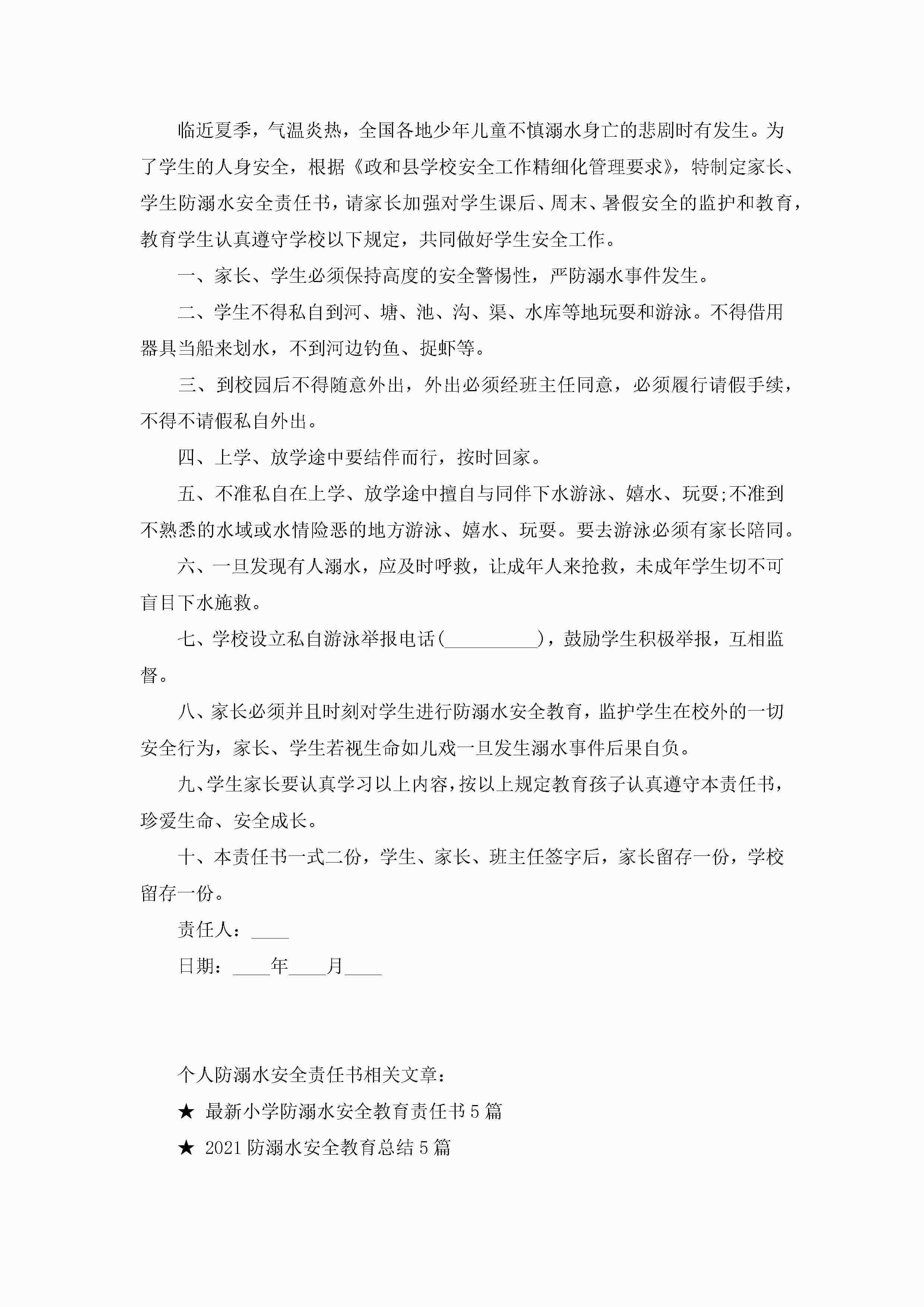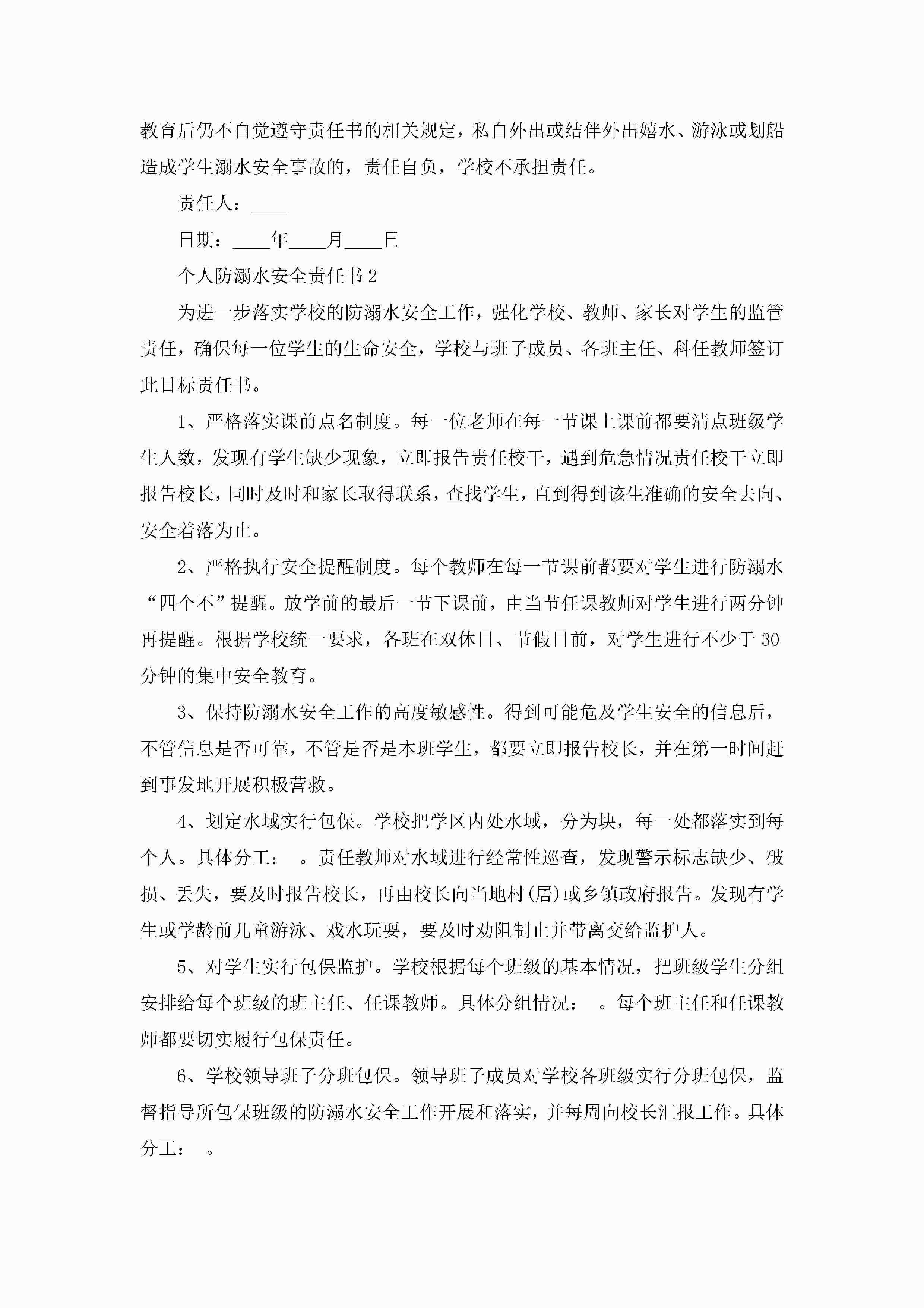 关于个人防溺水安全责任书5篇jugei3月22日 16:27发布关注238 关于个人防溺水安全责任书5篇此内容为付费资源,请付费后查看¥10.9 单篇文档限时特惠¥15个人会员开通企业会员开通立即下载无需登陆!可直接快捷下载单个模板付费资源© 版权声明THE ENDWord模板# 实用文档# 实用模板# 信函模板# 责任书 如有问题,可点击最底部“联系我们”联系客服 分享QQ空间微博QQ好友海报分享复制链接收藏