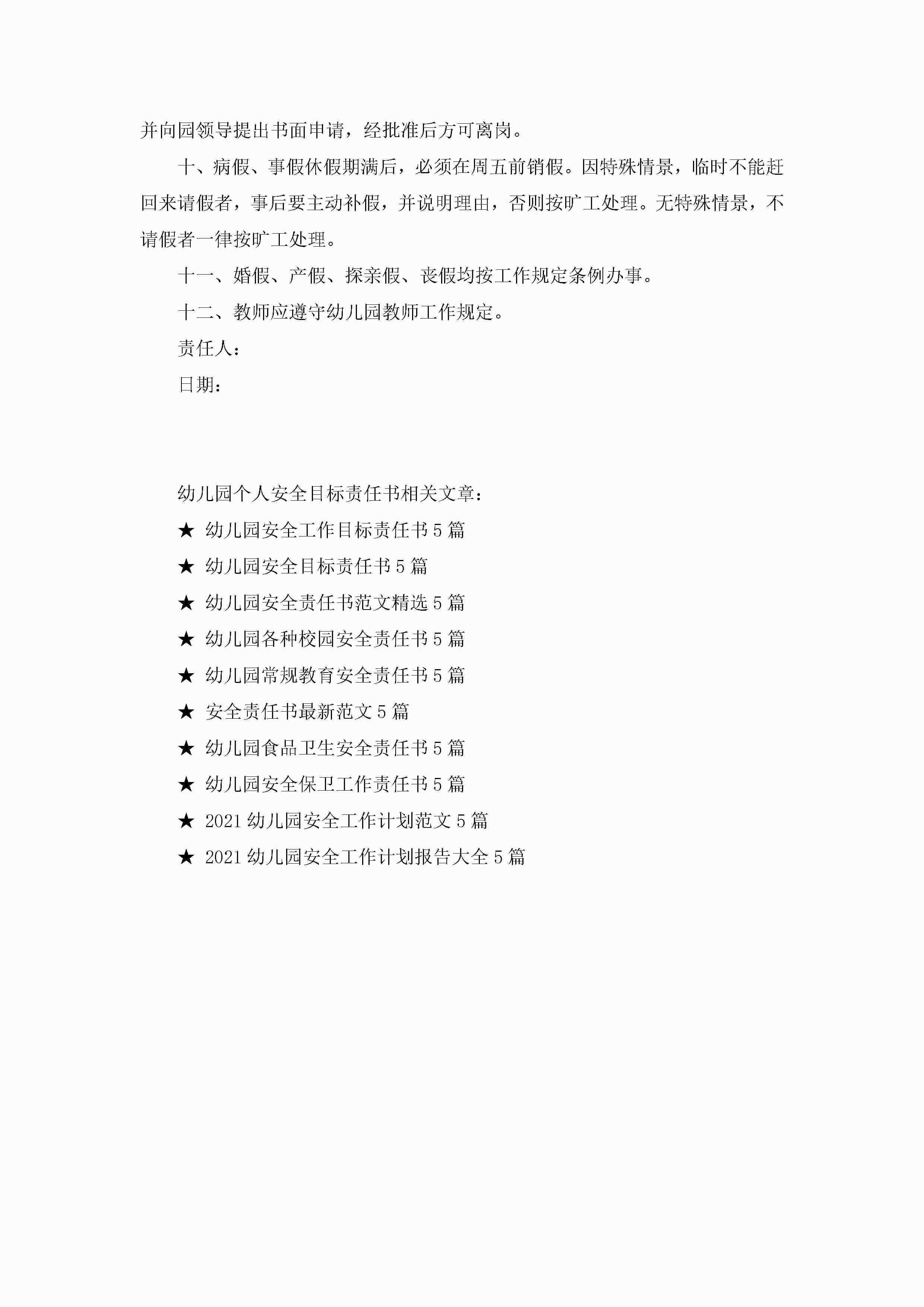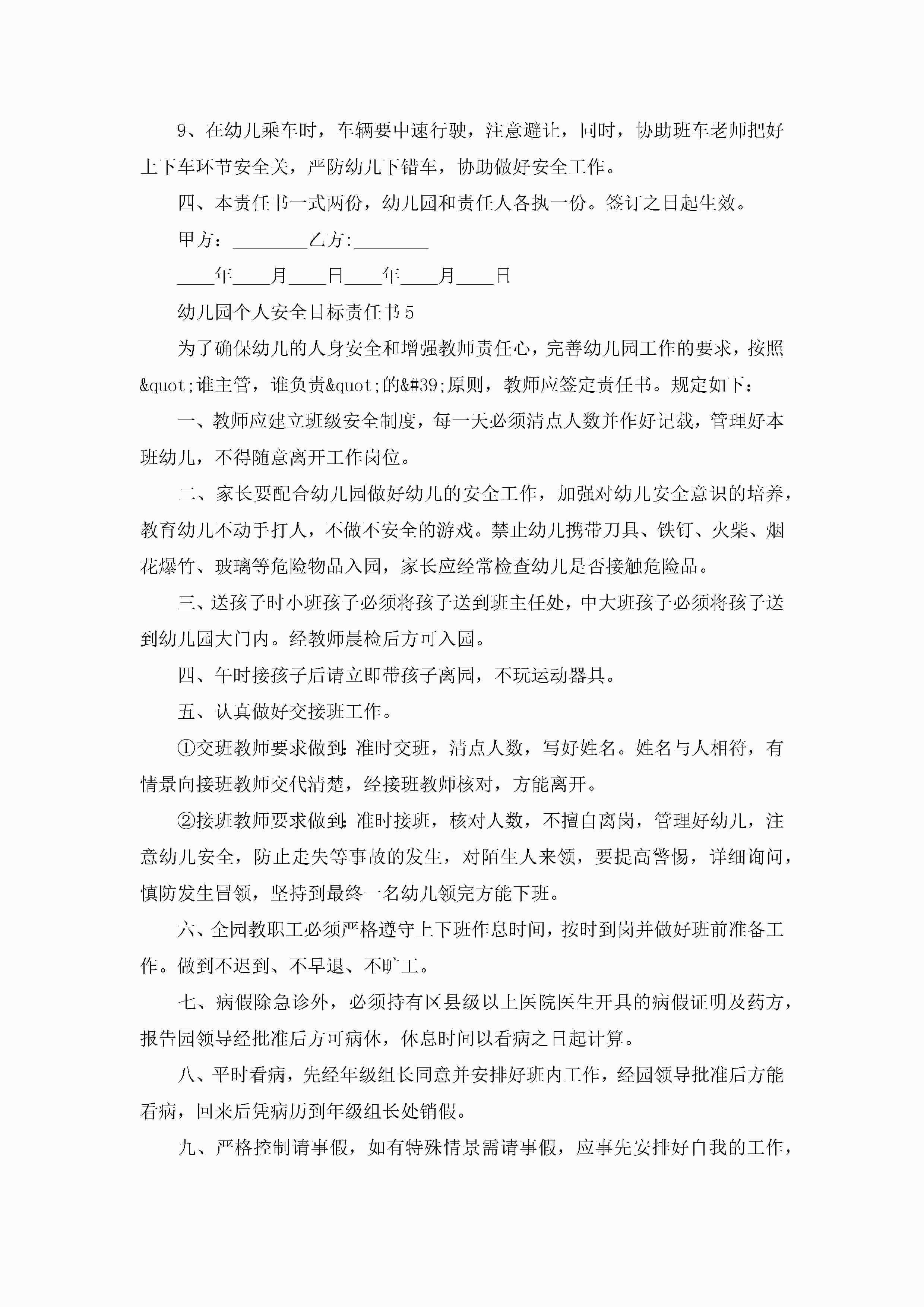 幼儿园个人安全目标责任书5篇jugei3月22日 16:27发布关注291 幼儿园个人安全目标责任书5篇此内容为付费资源,请付费后查看¥10.9 单篇文档限时特惠¥15个人会员开通企业会员开通立即下载无需登陆!可直接快捷下载单个模板付费资源© 版权声明THE ENDWord模板# 实用文档# 实用模板# 信函模板# 责任书 如有问题,可点击最底部“联系我们”联系客服 分享QQ空间微博QQ好友海报分享复制链接收藏