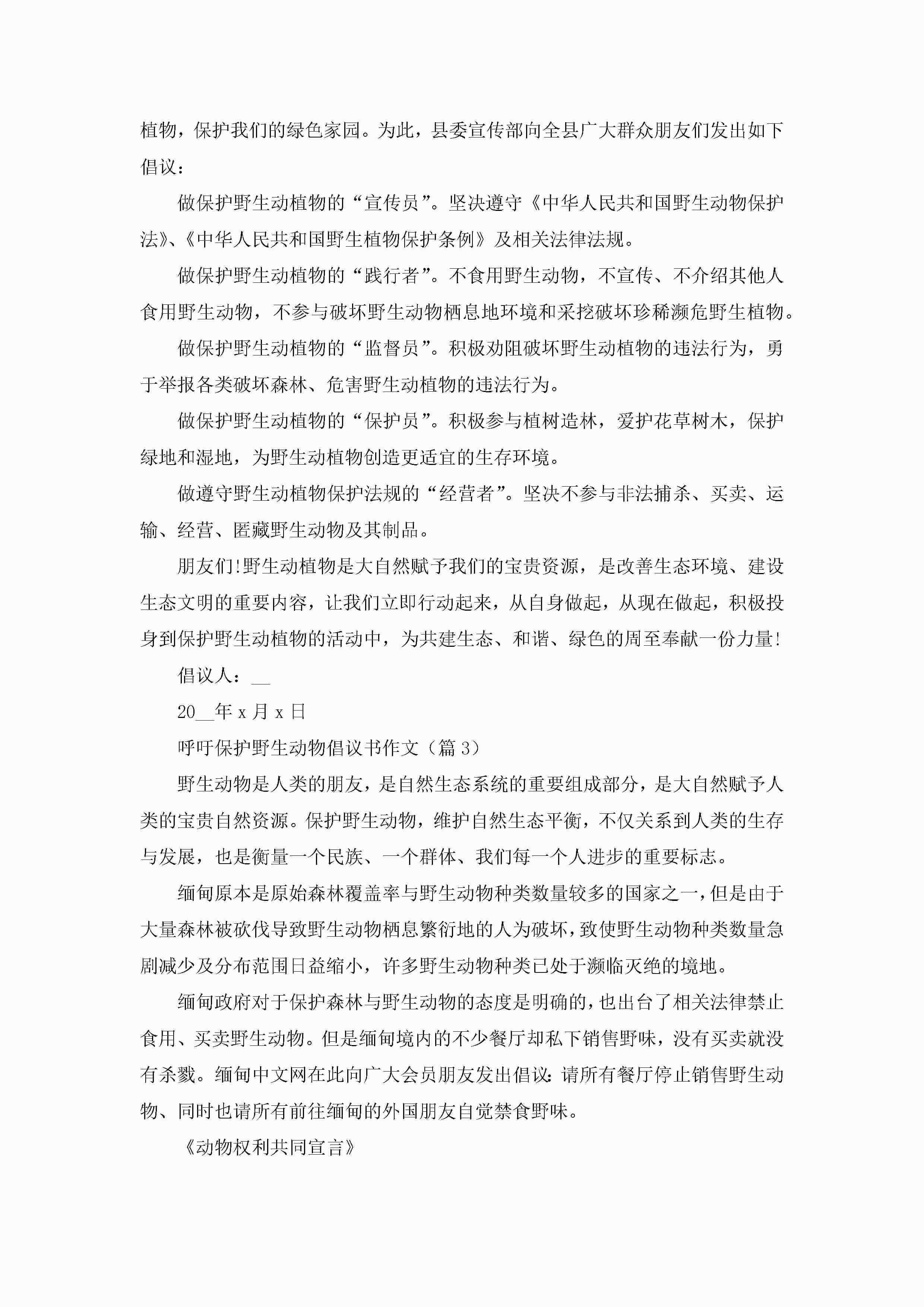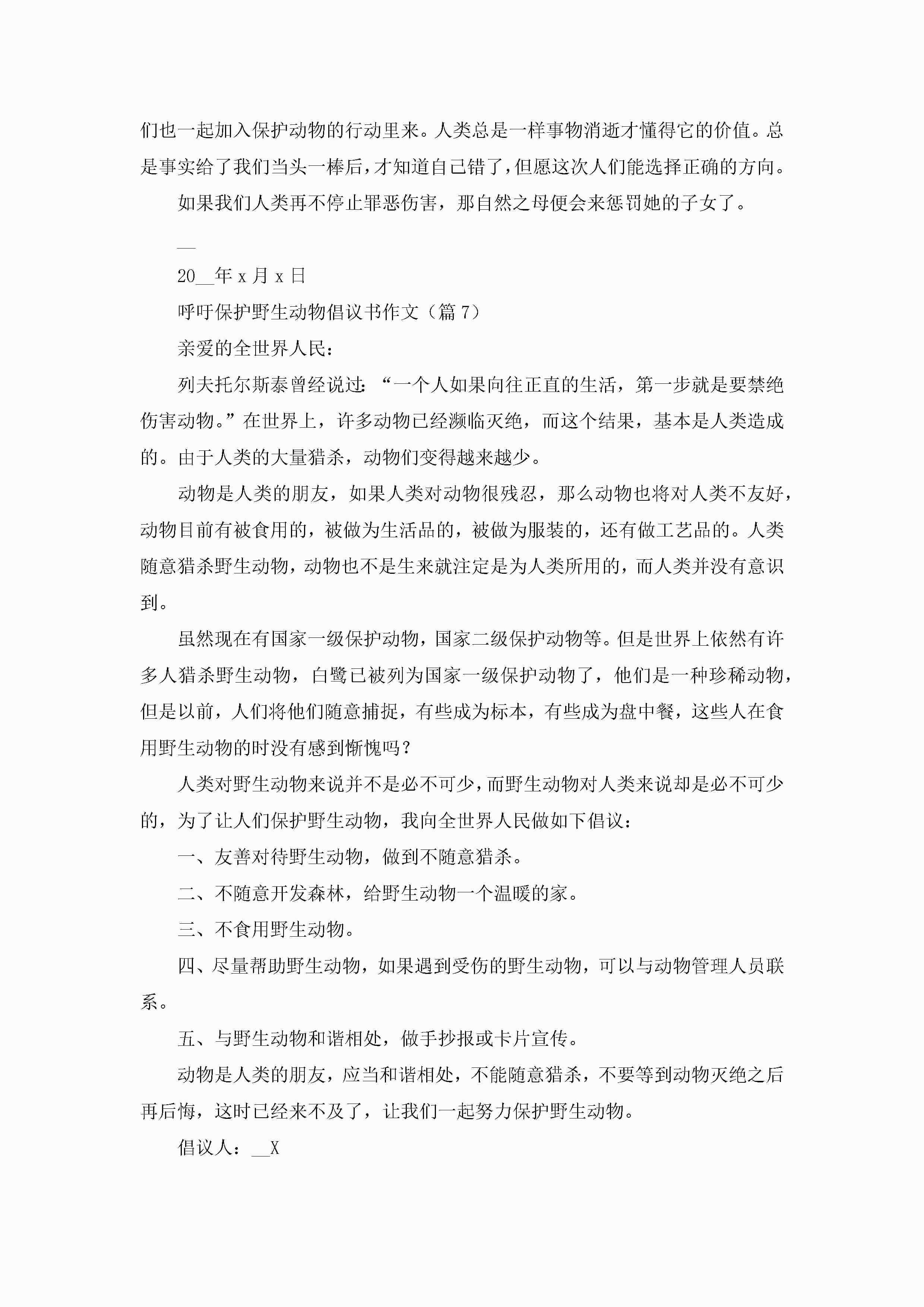 呼吁保护野生动物倡议书作文(精选7篇)jugei3月22日 16:27发布关注189 呼吁保护野生动物倡议书作文(精选7篇)此内容为付费资源,请付费后查看¥10.9 单篇文档限时特惠¥15个人会员开通企业会员开通立即下载无需登陆!可直接快捷下载单个模板付费资源© 版权声明THE ENDWord模板# 实用文档# 实用模板# 信函模板# 倡议书 如有问题,可点击最底部“联系我们”联系客服 分享QQ空间微博QQ好友海报分享复制链接收藏