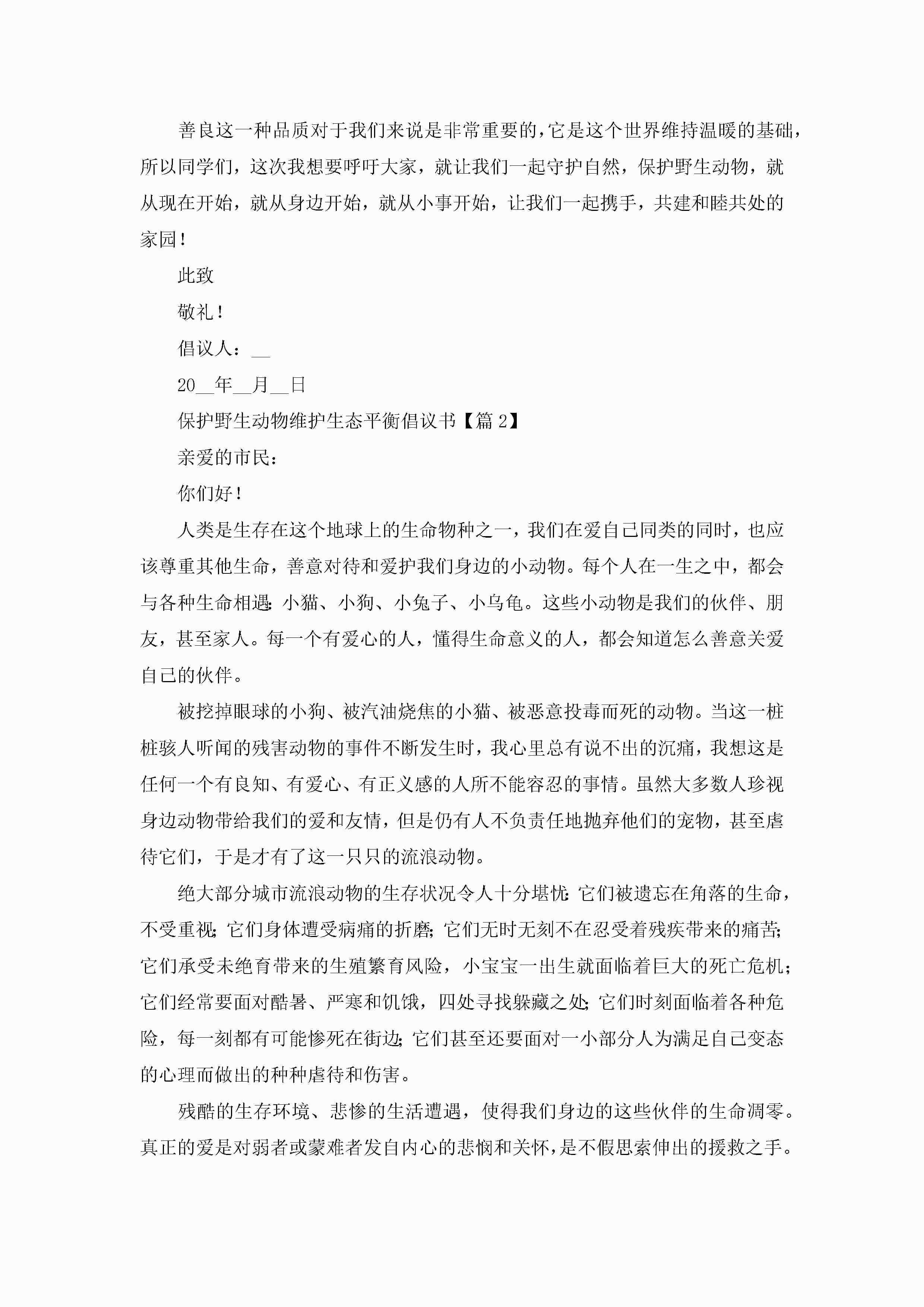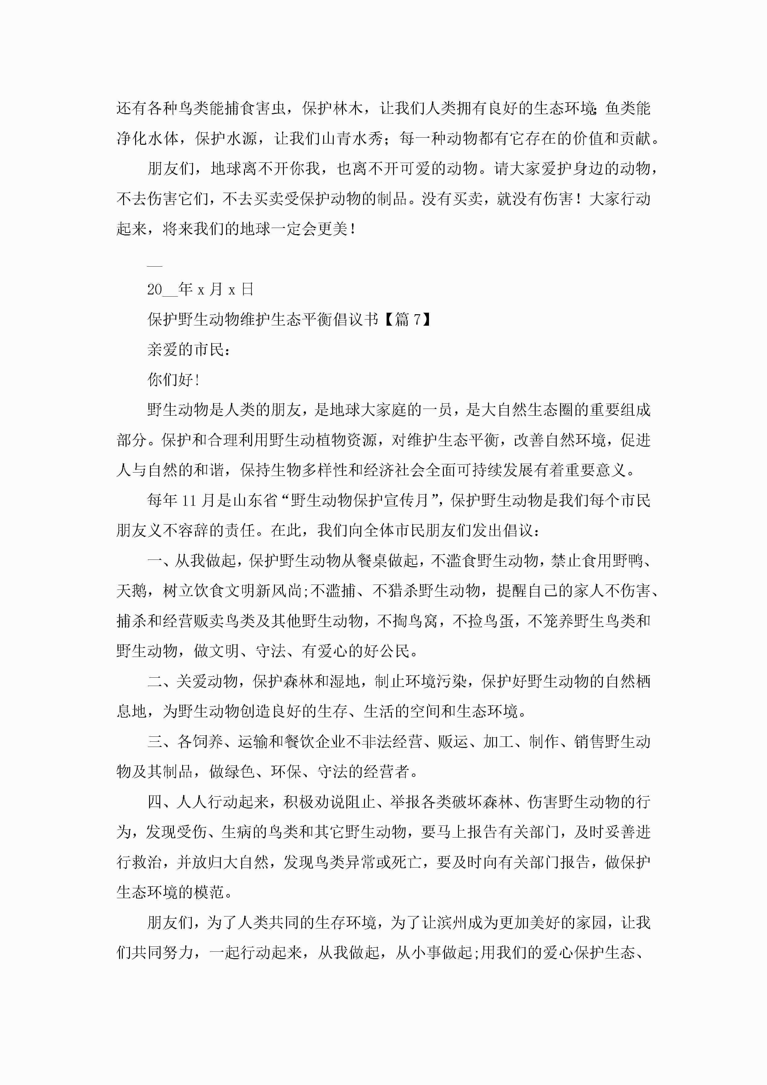 保护野生动物维护生态平衡倡议书(精选7篇)jugei3月22日 16:27发布关注193 保护野生动物维护生态平衡倡议书(精选7篇)此内容为付费资源,请付费后查看¥10.9 单篇文档限时特惠¥15个人会员开通企业会员开通立即下载无需登陆!可直接快捷下载单个模板付费资源© 版权声明THE ENDWord模板# 实用文档# 实用模板# 信函模板# 倡议书 如有问题,可点击最底部“联系我们”联系客服 分享QQ空间微博QQ好友海报分享复制链接收藏